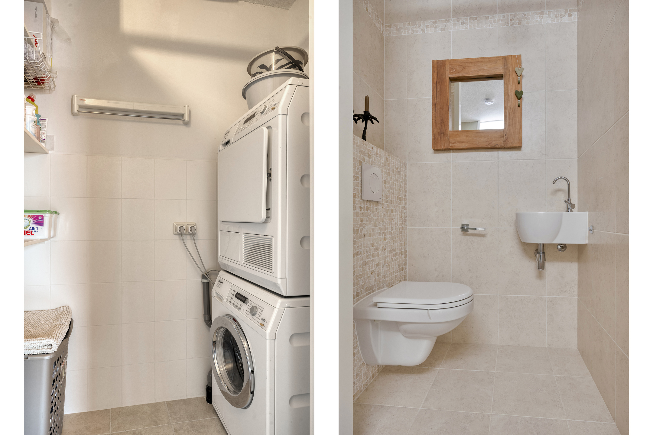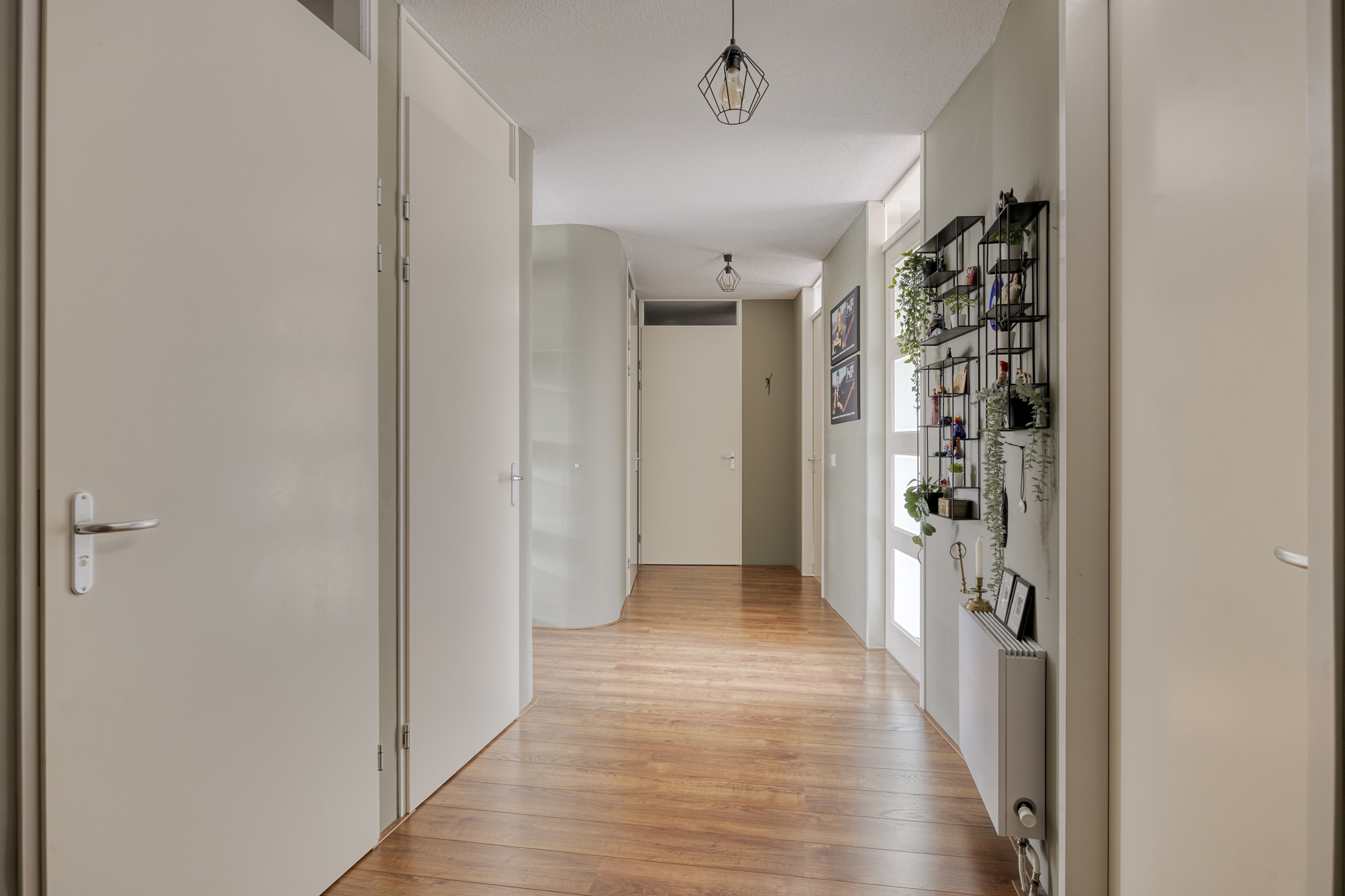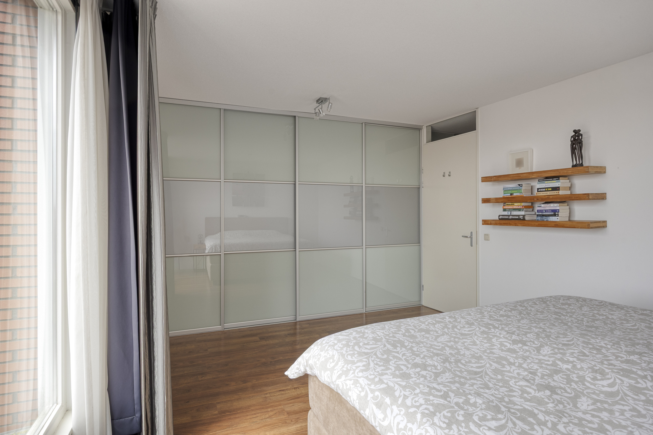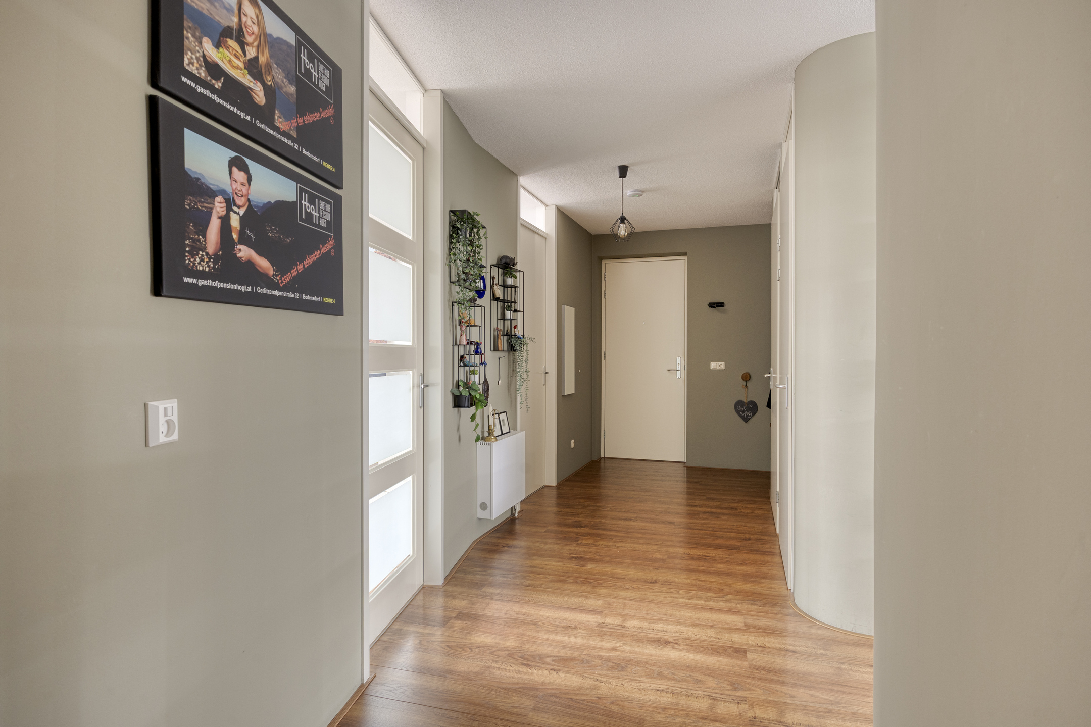 Entree, ruime hal, geheel betegeld toilet met wandcloset en fonteintje, berging met opstelling c.v.-ketel, kast met aansluitingen wasapparatuur, geheel betegelde luxe badkamer voorzien van dubbel wastafelmeubel, wandcloset, inloopdouche en ligbad, drie slaapkamers waarvan een zeer ruime hoofdslaapkamer met een grote vaste schuifkastenwand.