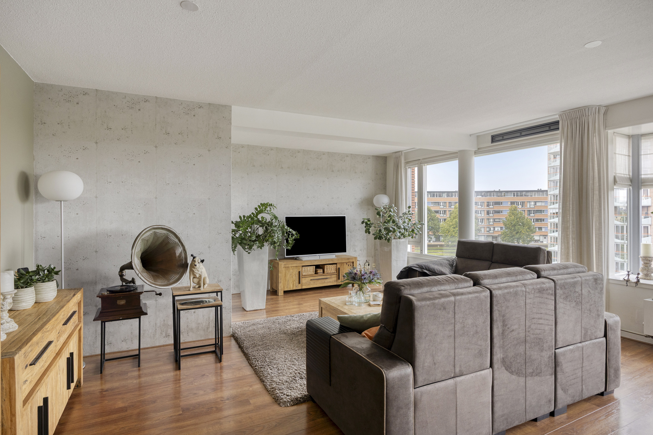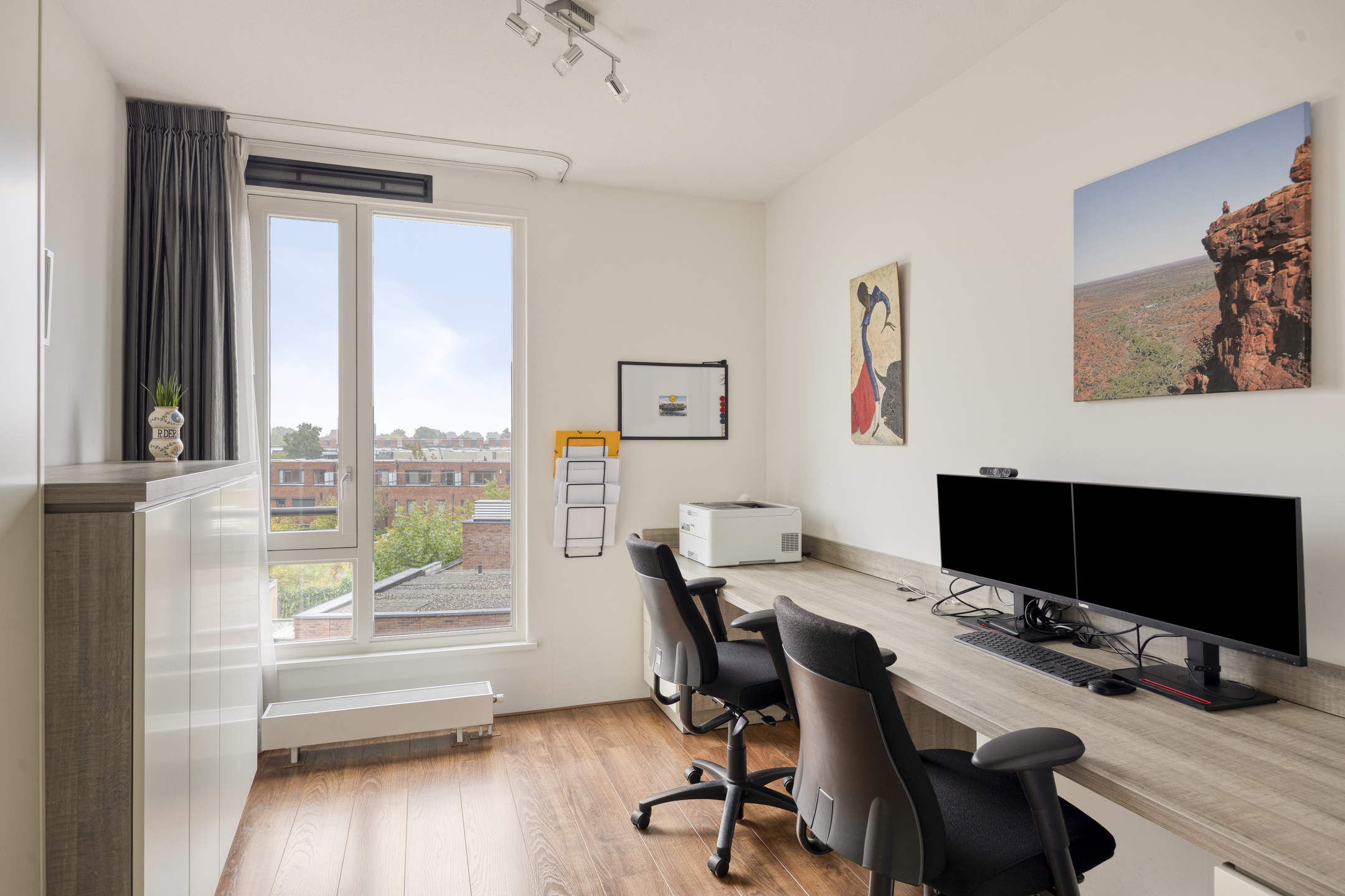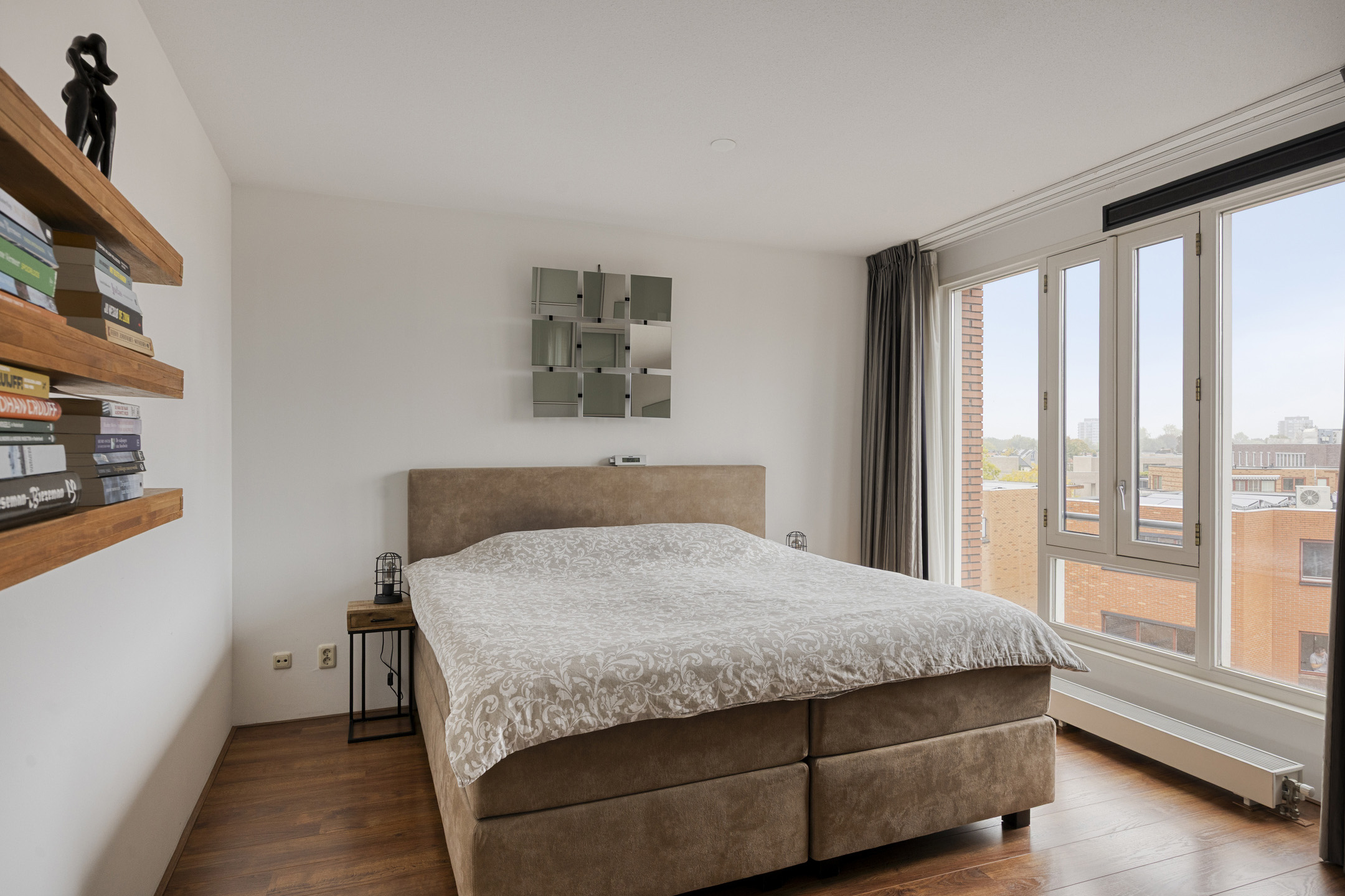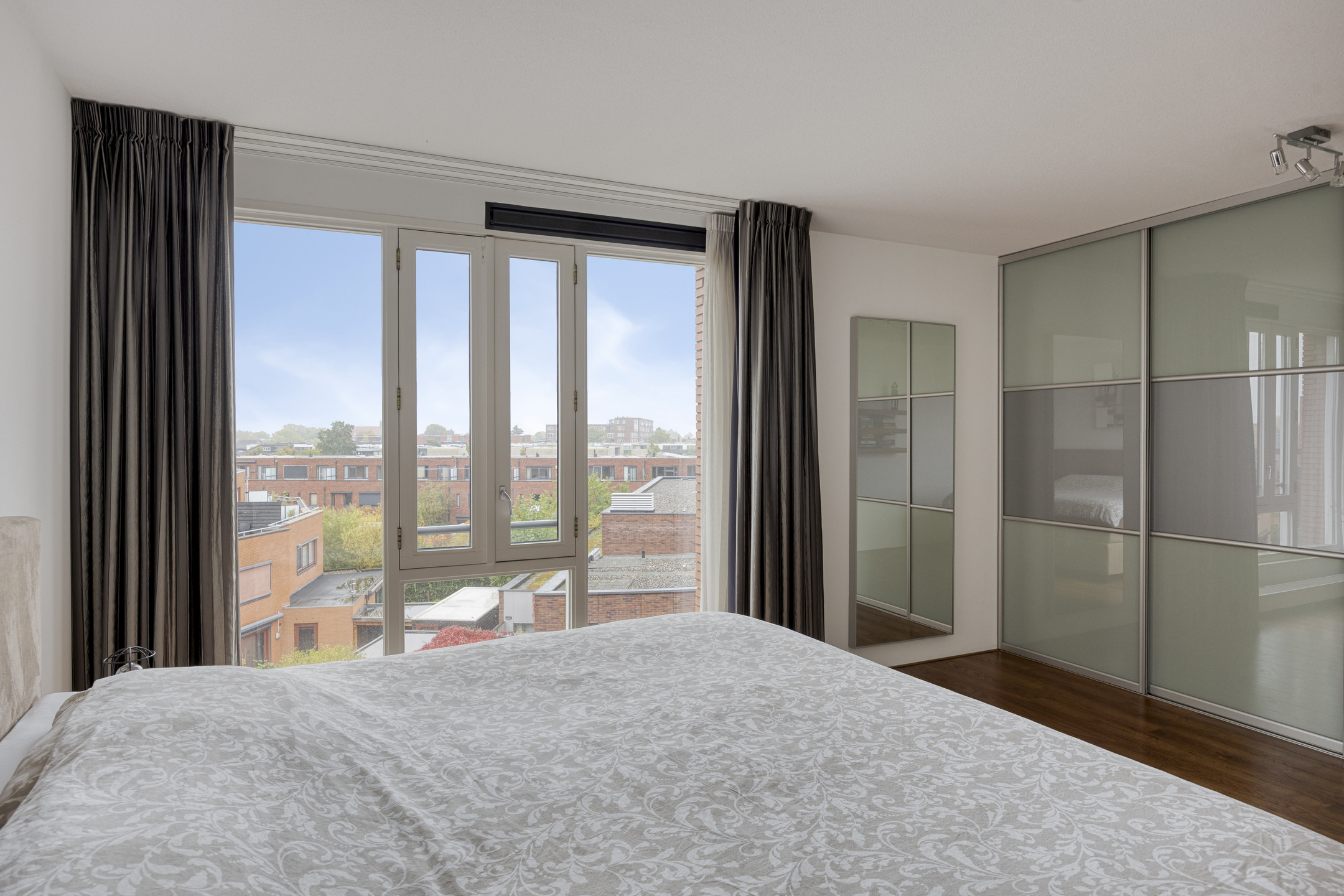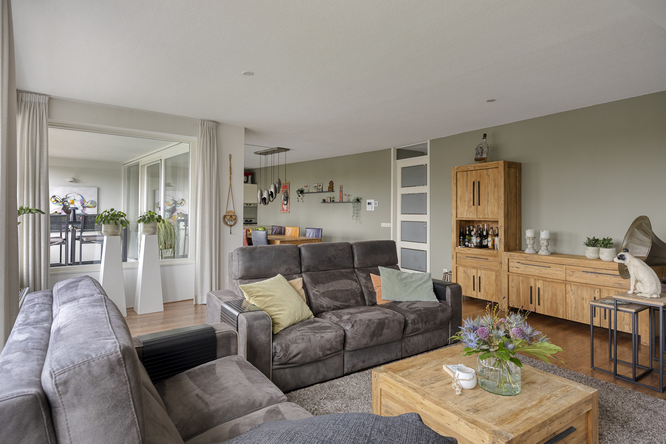 De royale woonkamer met erker heeft veel lichtinval en een schitterend uitzicht over het centrum van Apeldoorn en het Apeldoorns kanaal. Open keuken met eiland welke is voorzien van inbouw vaatwasser (2024), quooker, kookplaat inclusief downdraft afzuiging (2025) en een koel-/vriescombinatie (2025). Schuifpui naar ruim en zonnig inpandig balkon gelegen op het ZuidWesten met fraai uitzicht.