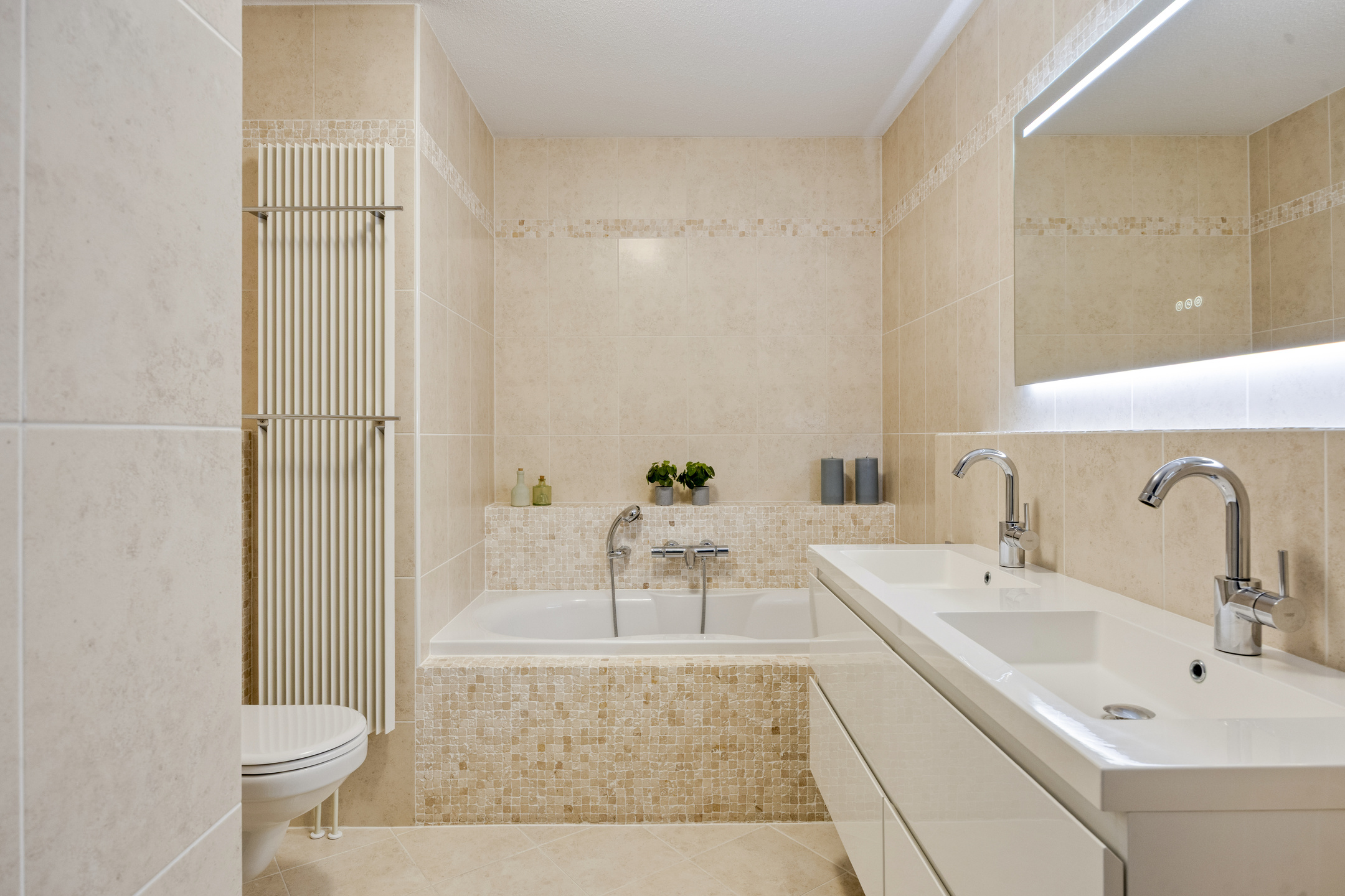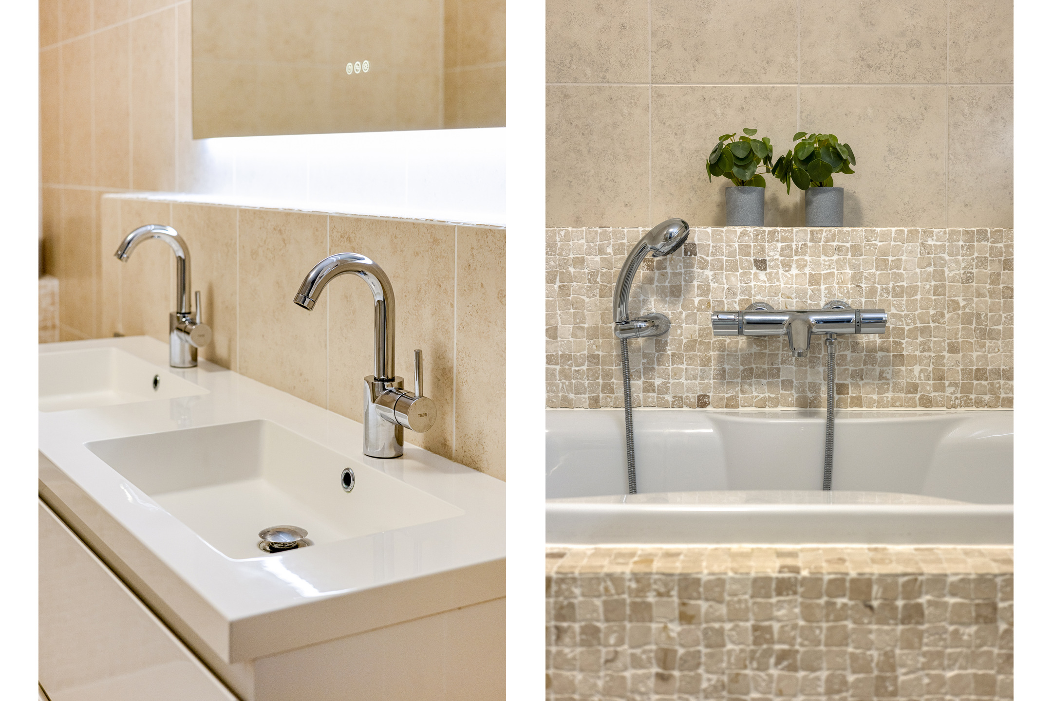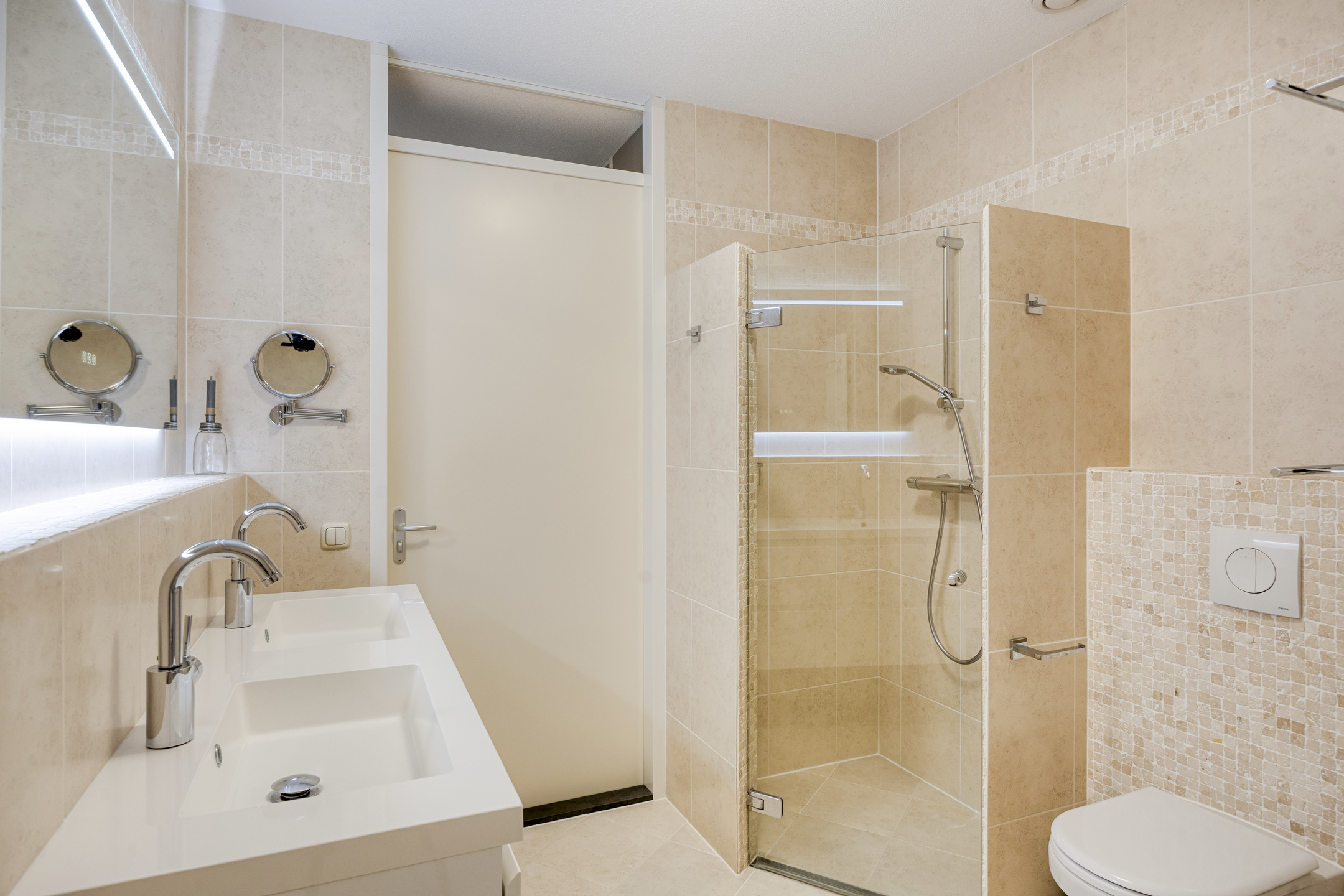 - Badkamervoorzieningen Ligbad, Toilet, Dubbele wastafel, Inloopdouche