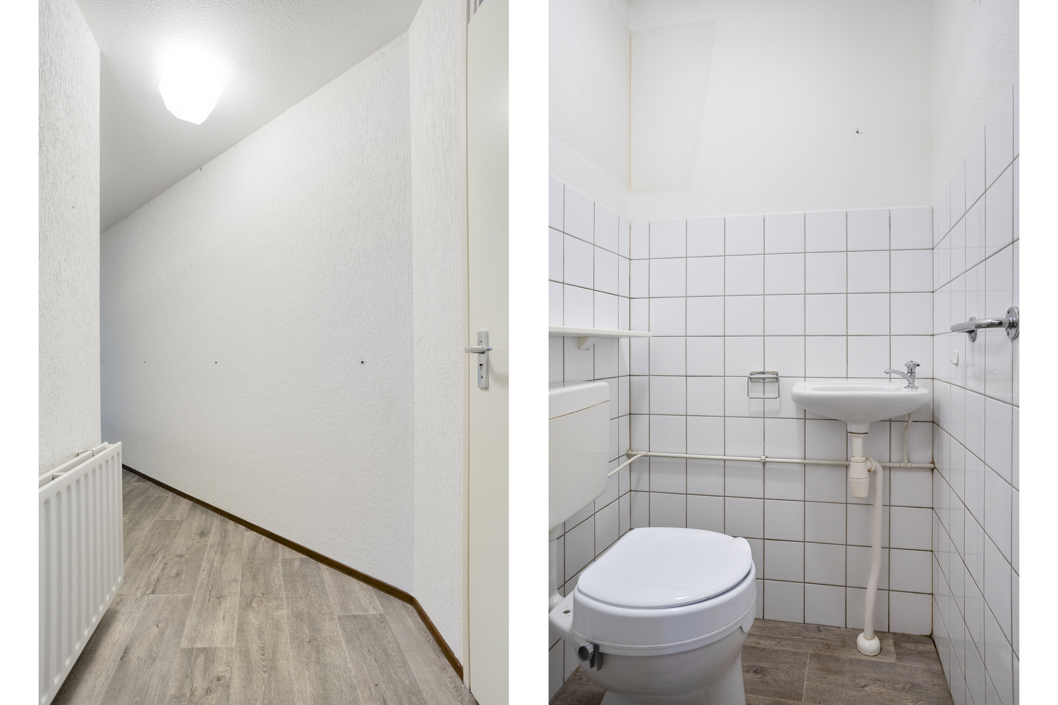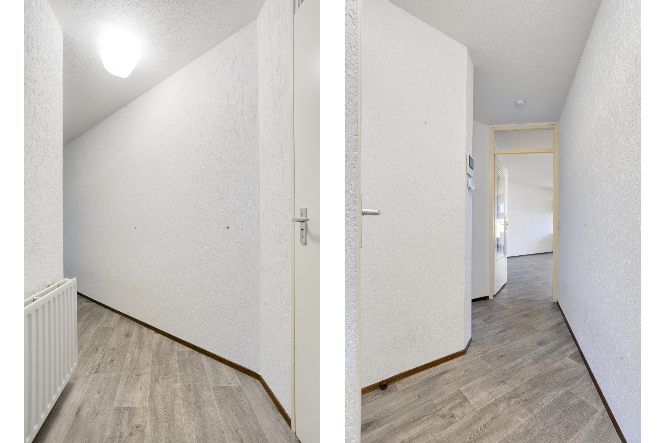 Indeling: Entree/hal met meterkast, berging met c.v.-ruimte, toilet met fonteintje, slaapkamer direct aansluitend aan de badkamer die is voorzien van een wastafelmeubel, inloopdouche en ligbad, lichte woonkamer met dakterras, slaap-/werkkamer, open keuken voorzien van inductiekookplaat, afzuiging, vaatwasser, magnetron en oven, bijkeuken voorzien van aansluiting wasapparatuur.