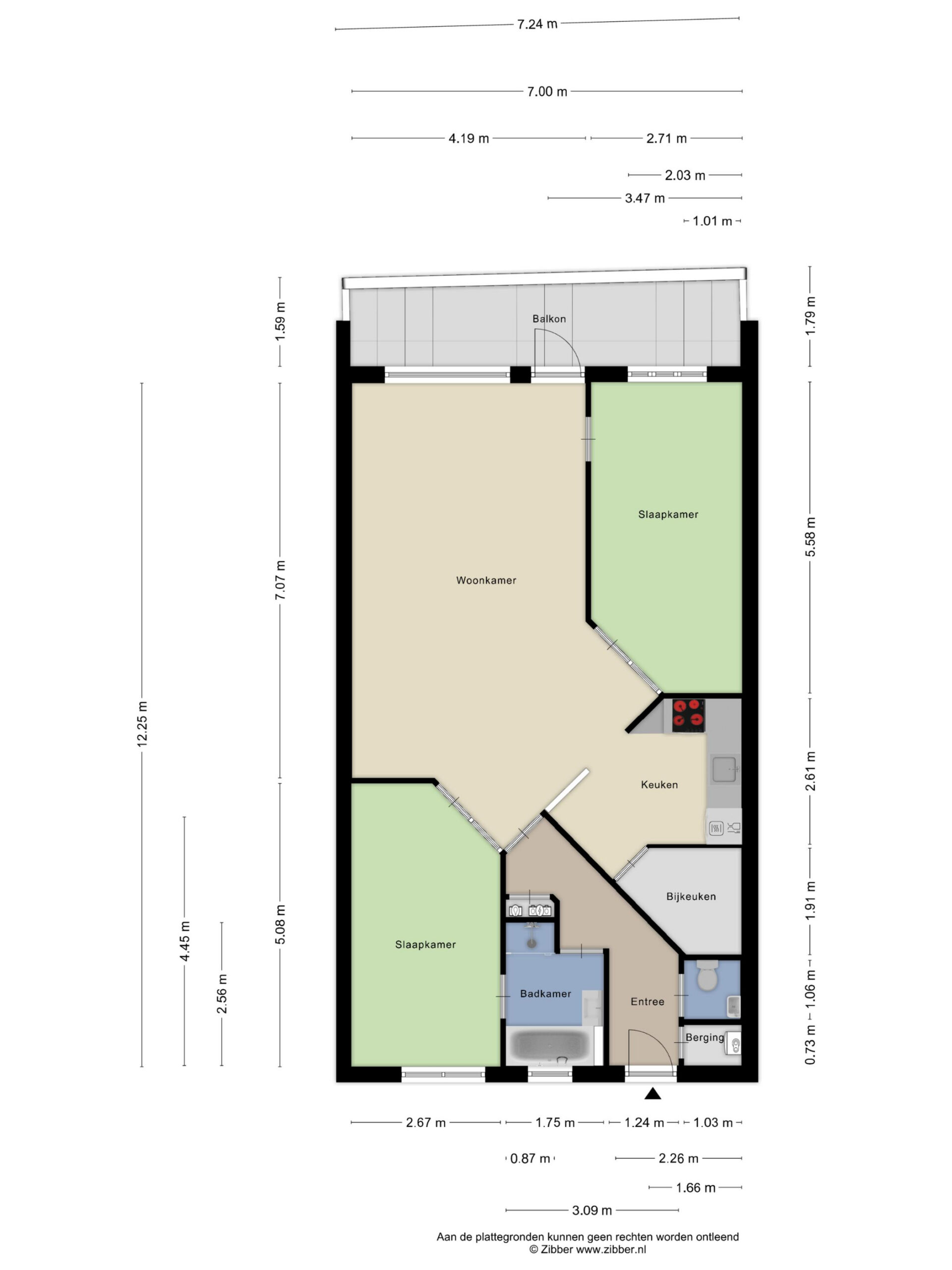 Indeling- Totaal kamers 3 kamers (2 slaapkamers)