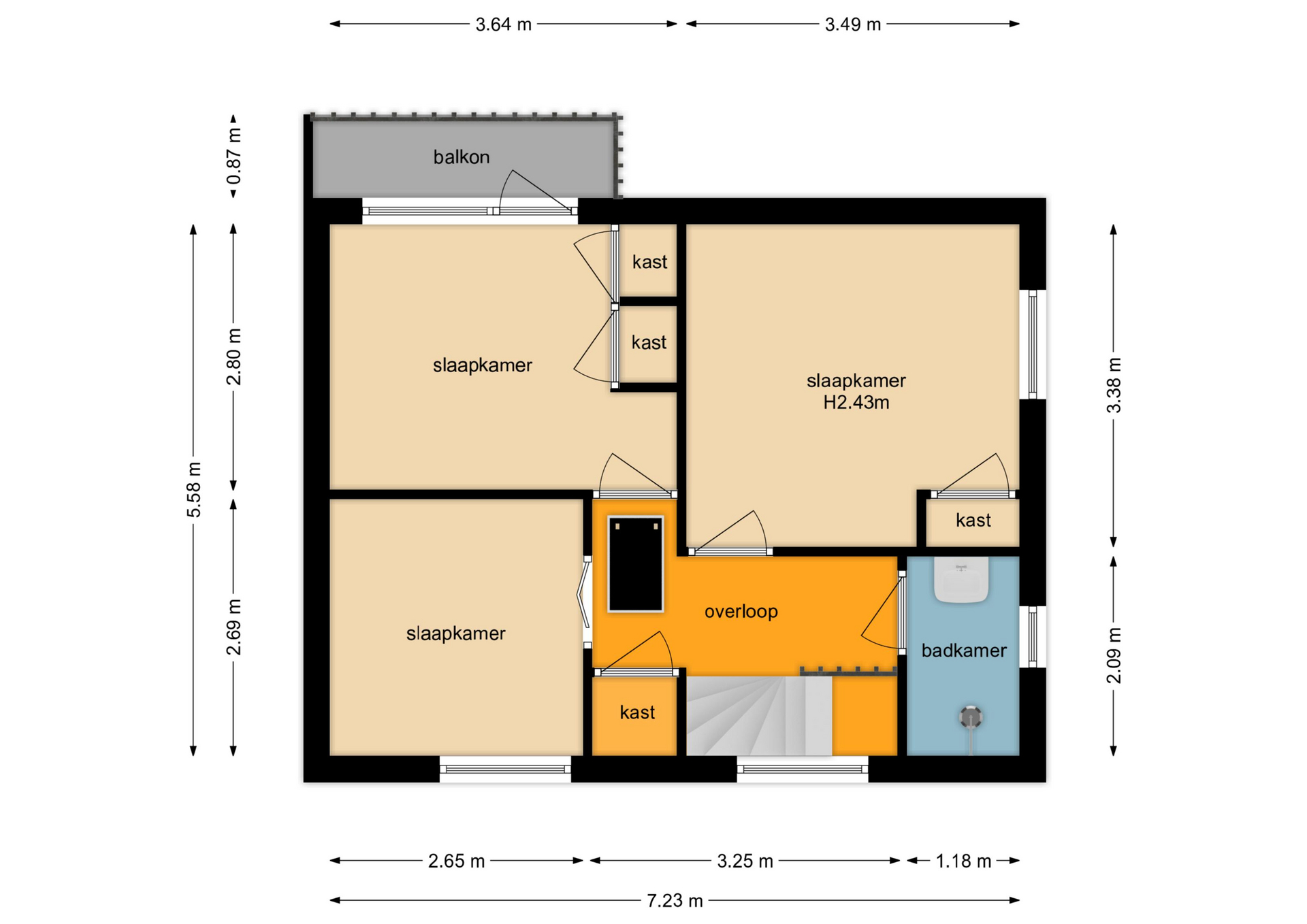 – Overige inpandige ruimte 13 m² (zolder)