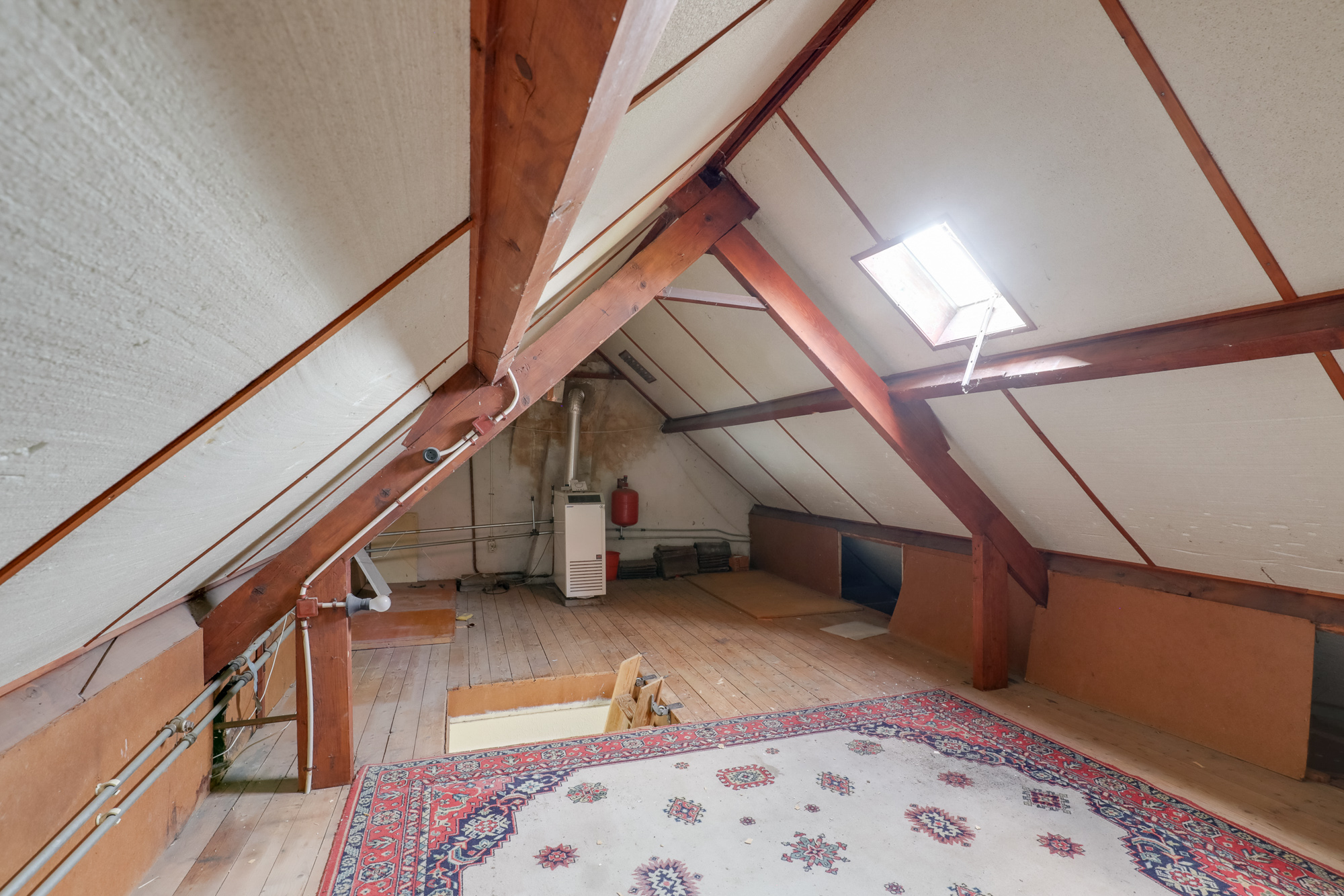 Via een vlizo trap bereik je de bergzolder met stahoogte en potentie voor een extra slaapkamer. Ook de oude VR ketel staat hier opgesteld.