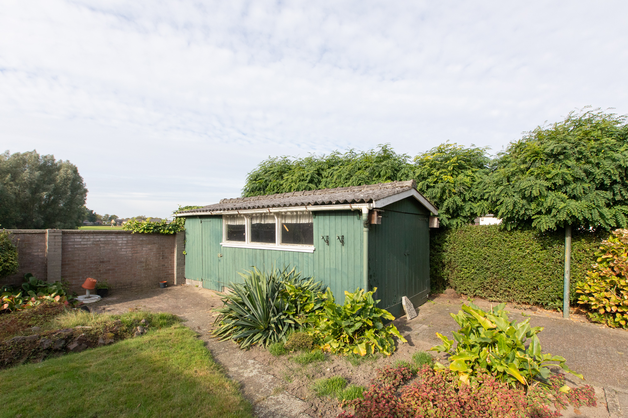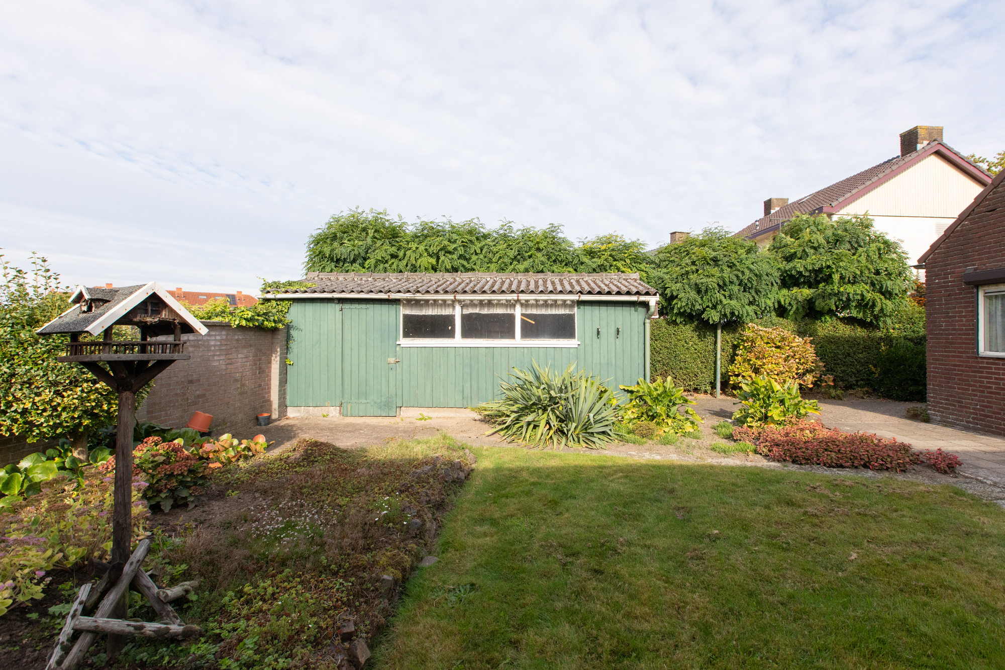 De houten garage doet momenteel vooral dienst als stalling.