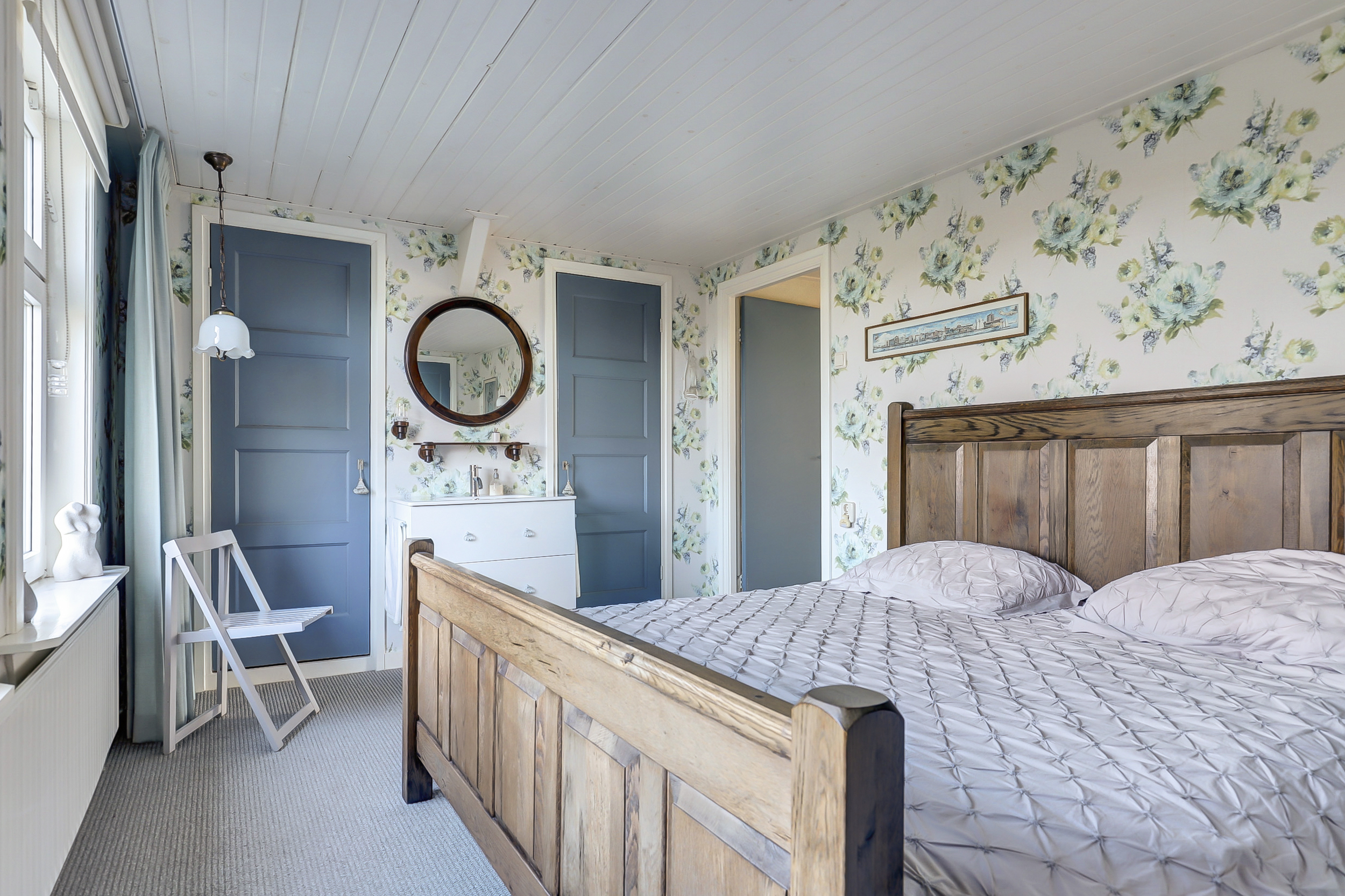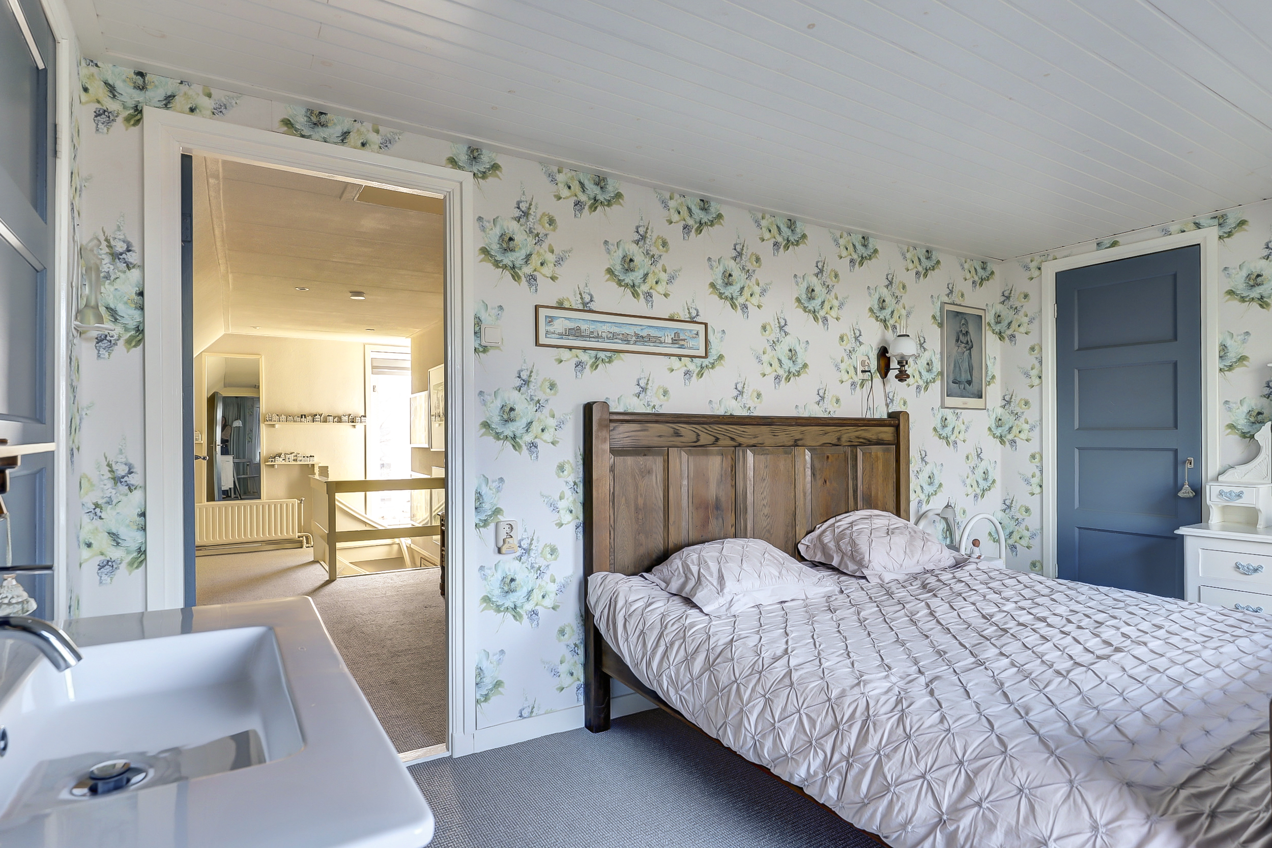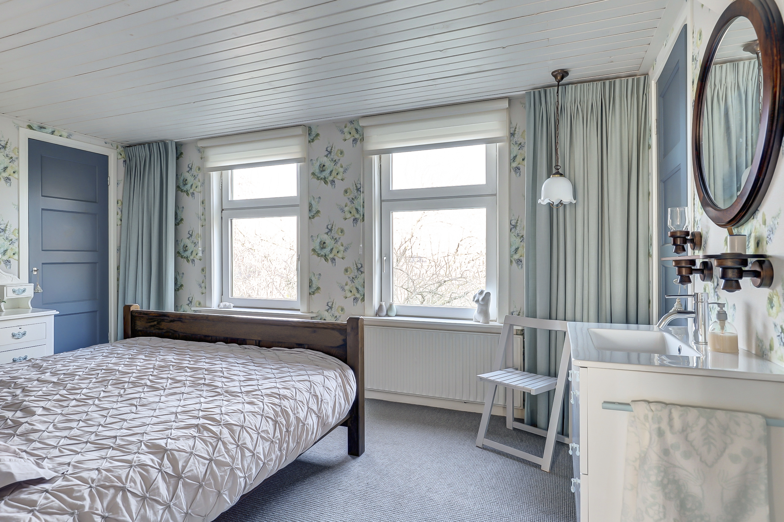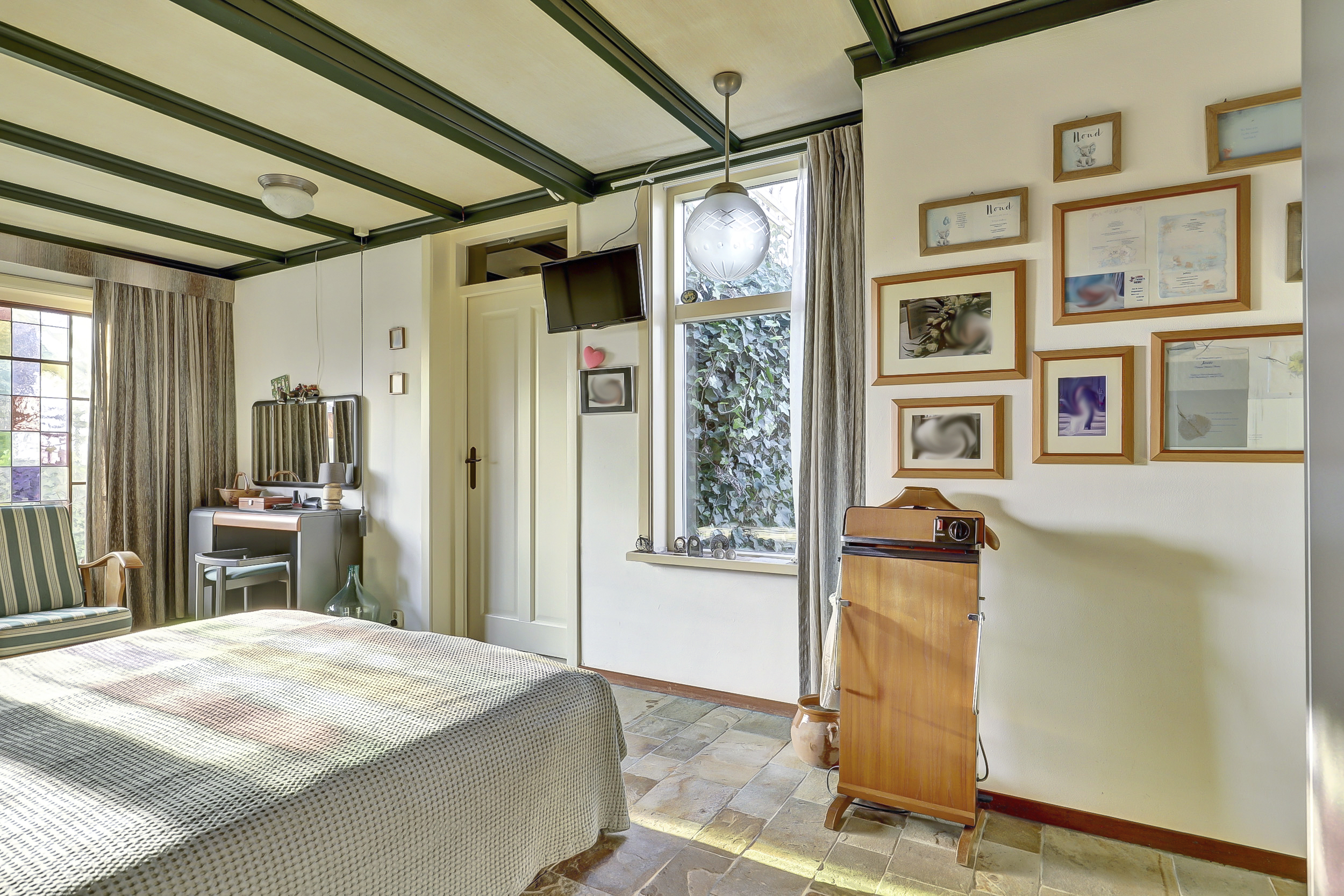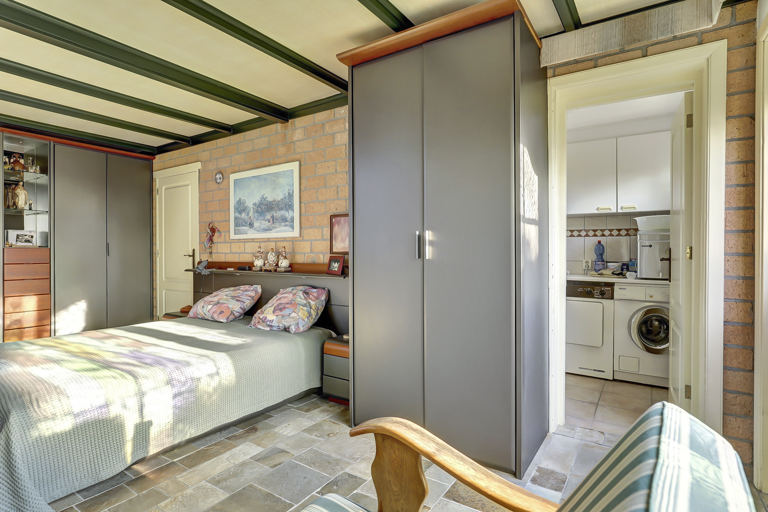 De slaapkamer op de begane grond is ruim, voorzien van vloerverwarming, een inloopkast en een deur naar de tuin. Ook is vanuit deze kamer de witgoedruimte bereikbaar.