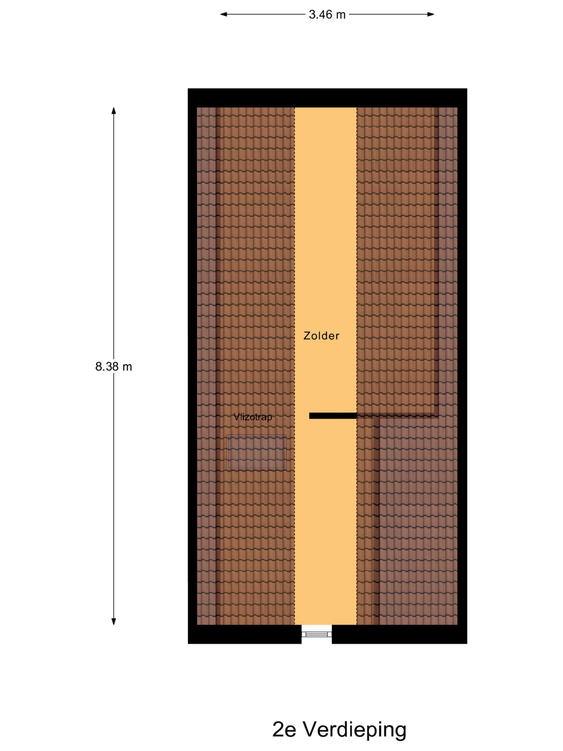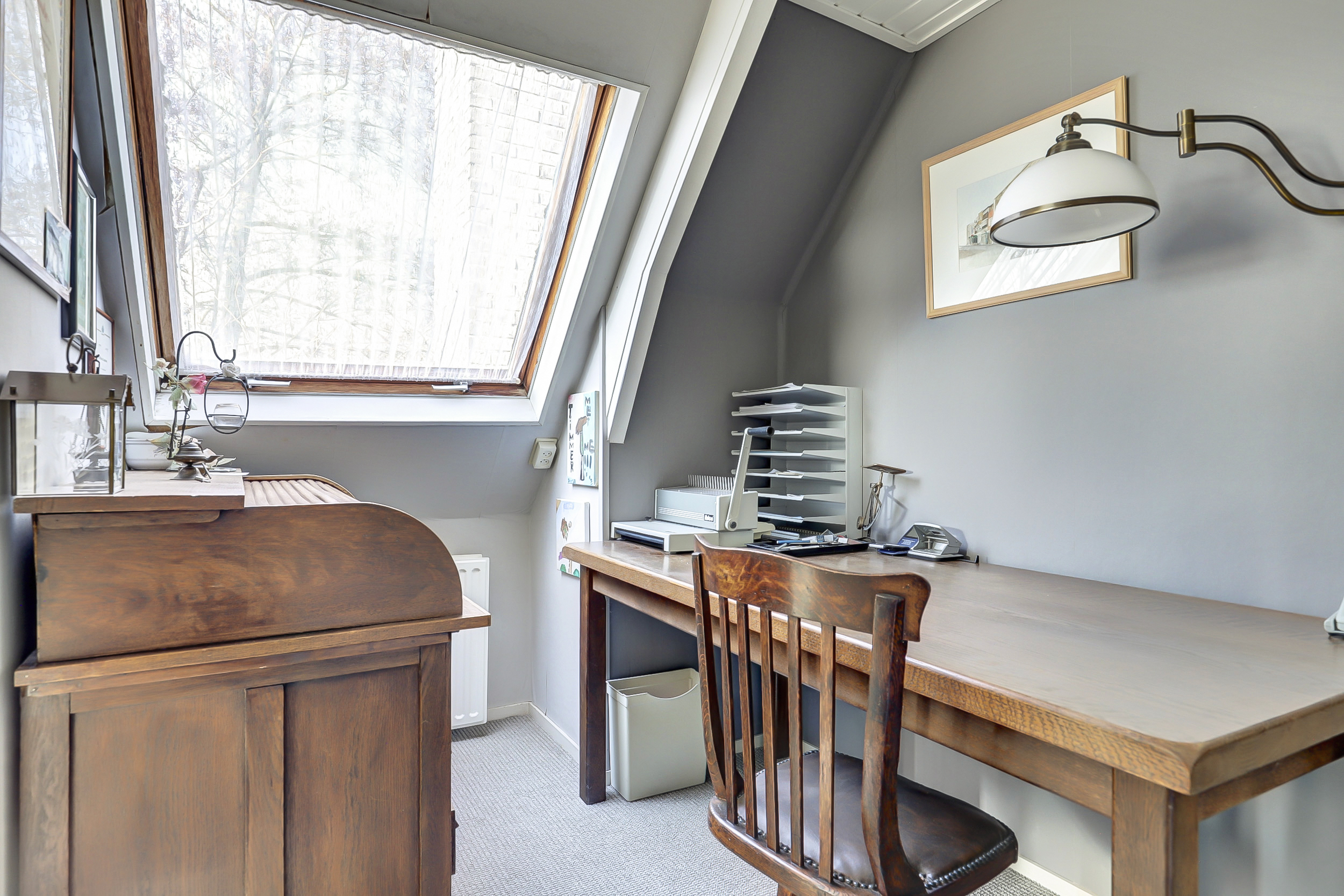 Ruime bergzolder bereikbaar via vlizotrap, met veel opbergcapaciteit.