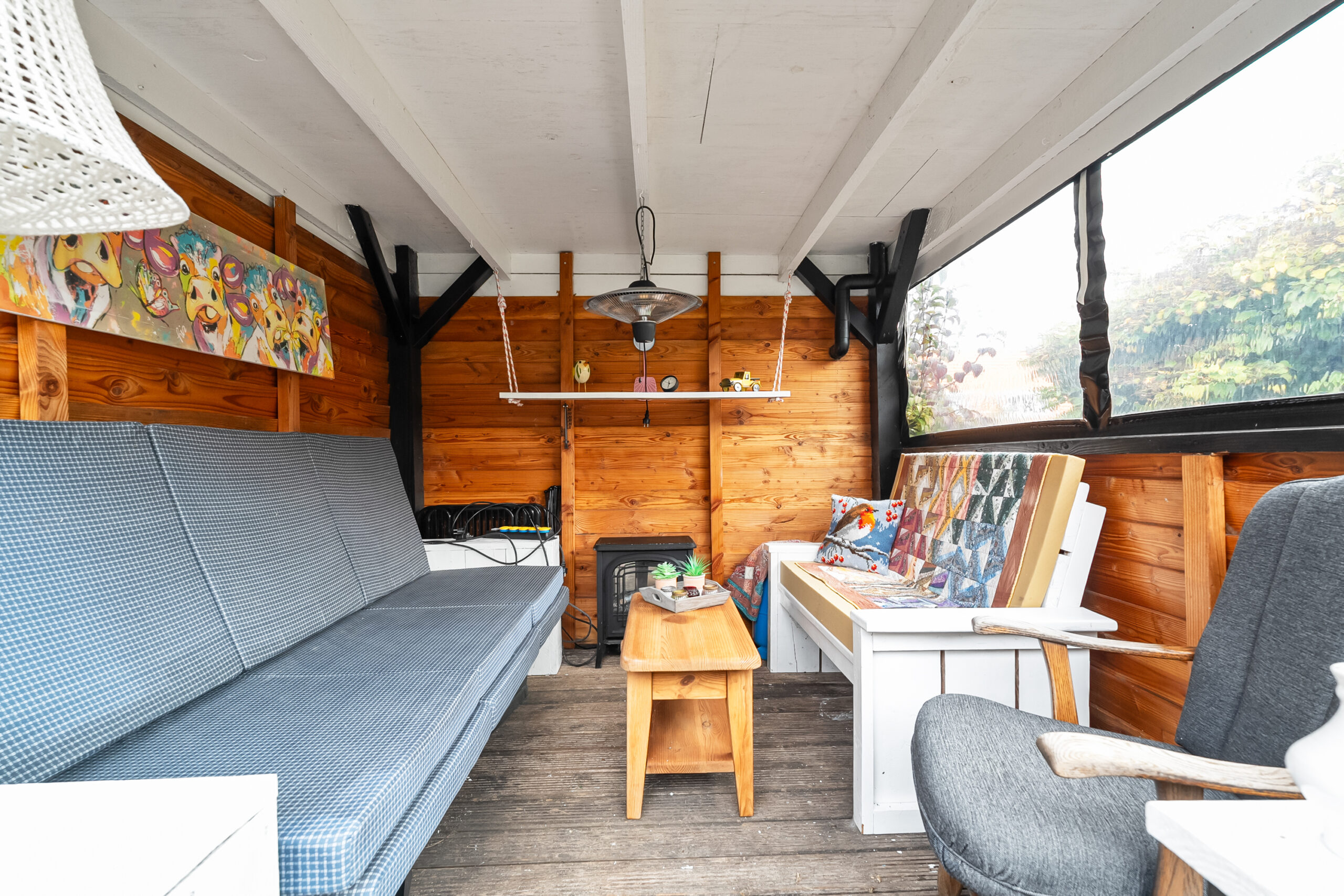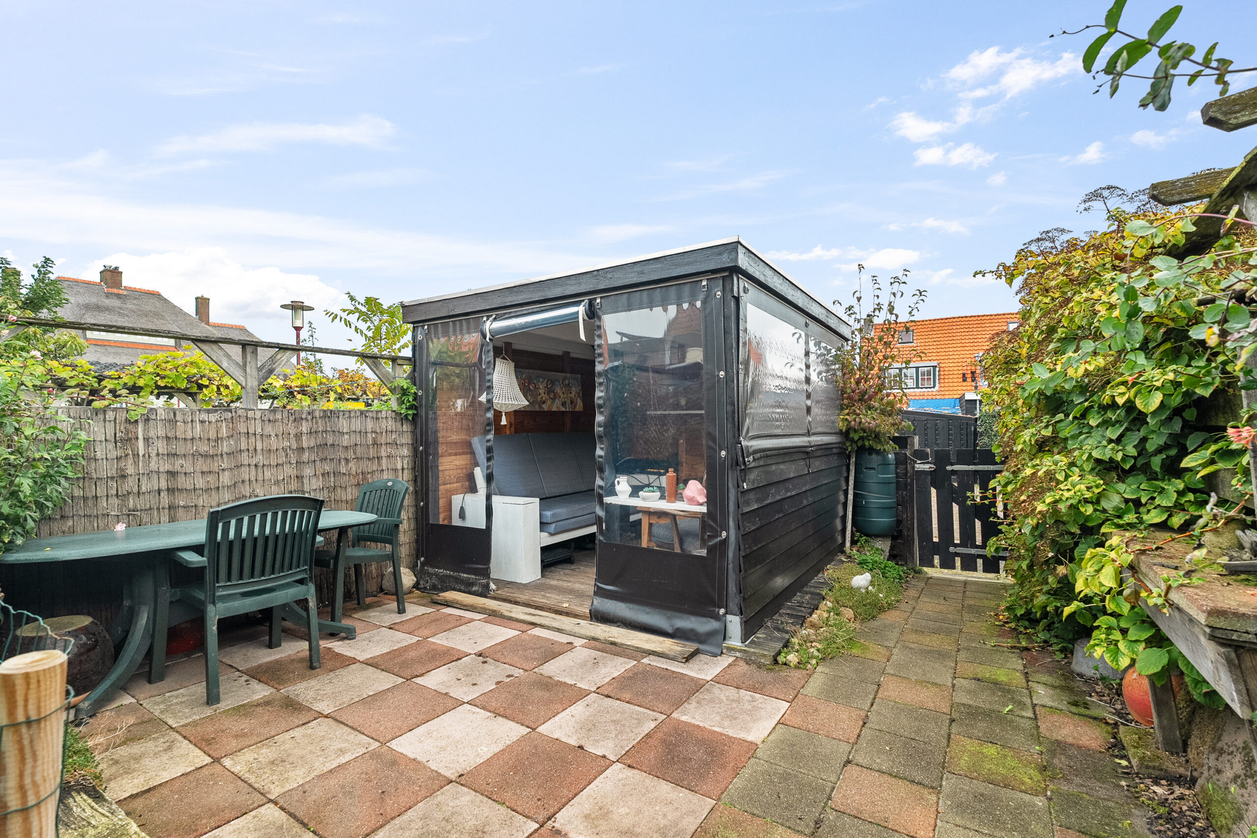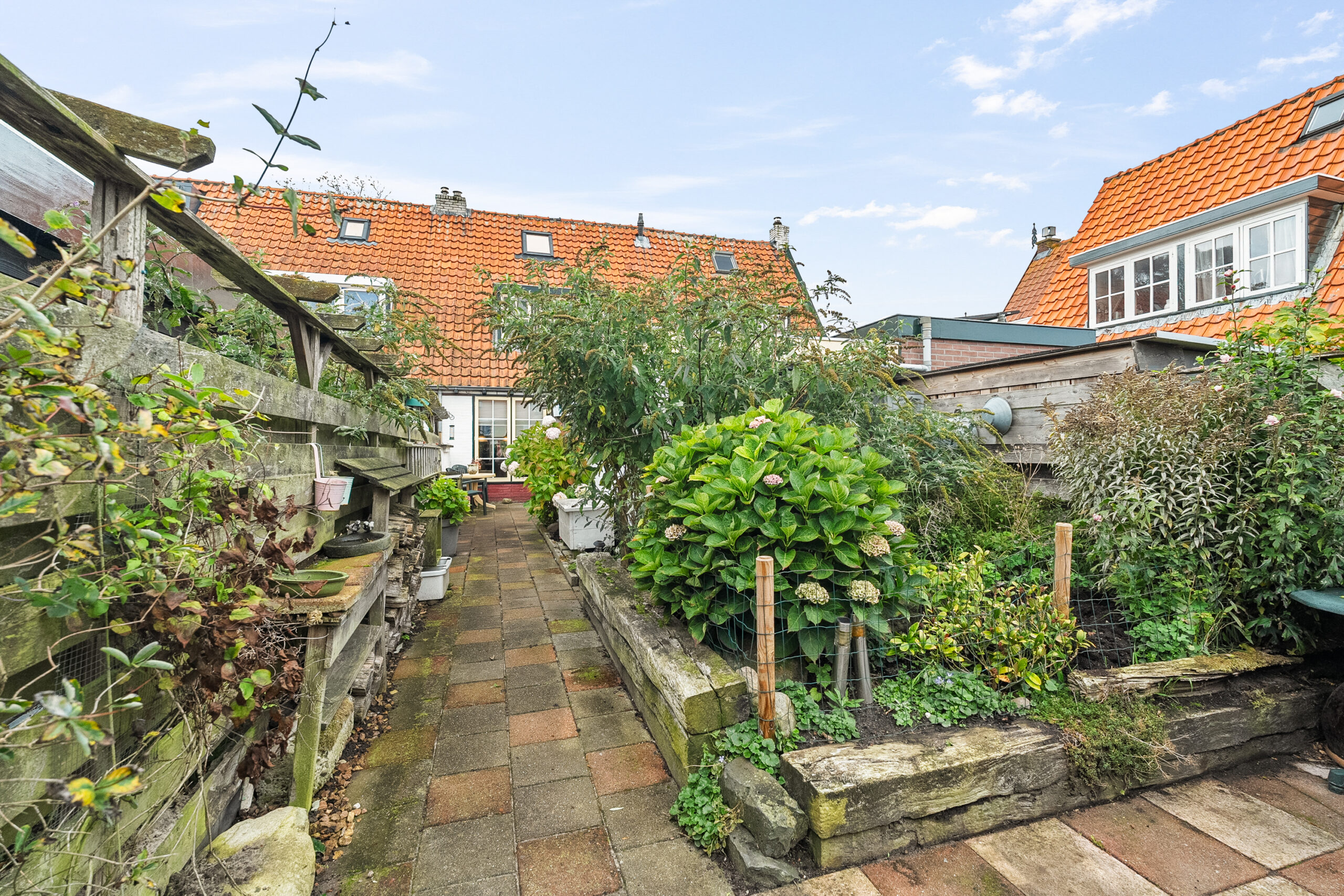 Diepe en vrij gelegen achtertuin zonder directe achter. Door de ligging en diepte komt er veel zon, maar ook altijd een plek in de schaduw. De tuin heeft schuttingen, beplanting, een terras en houten overkapping.