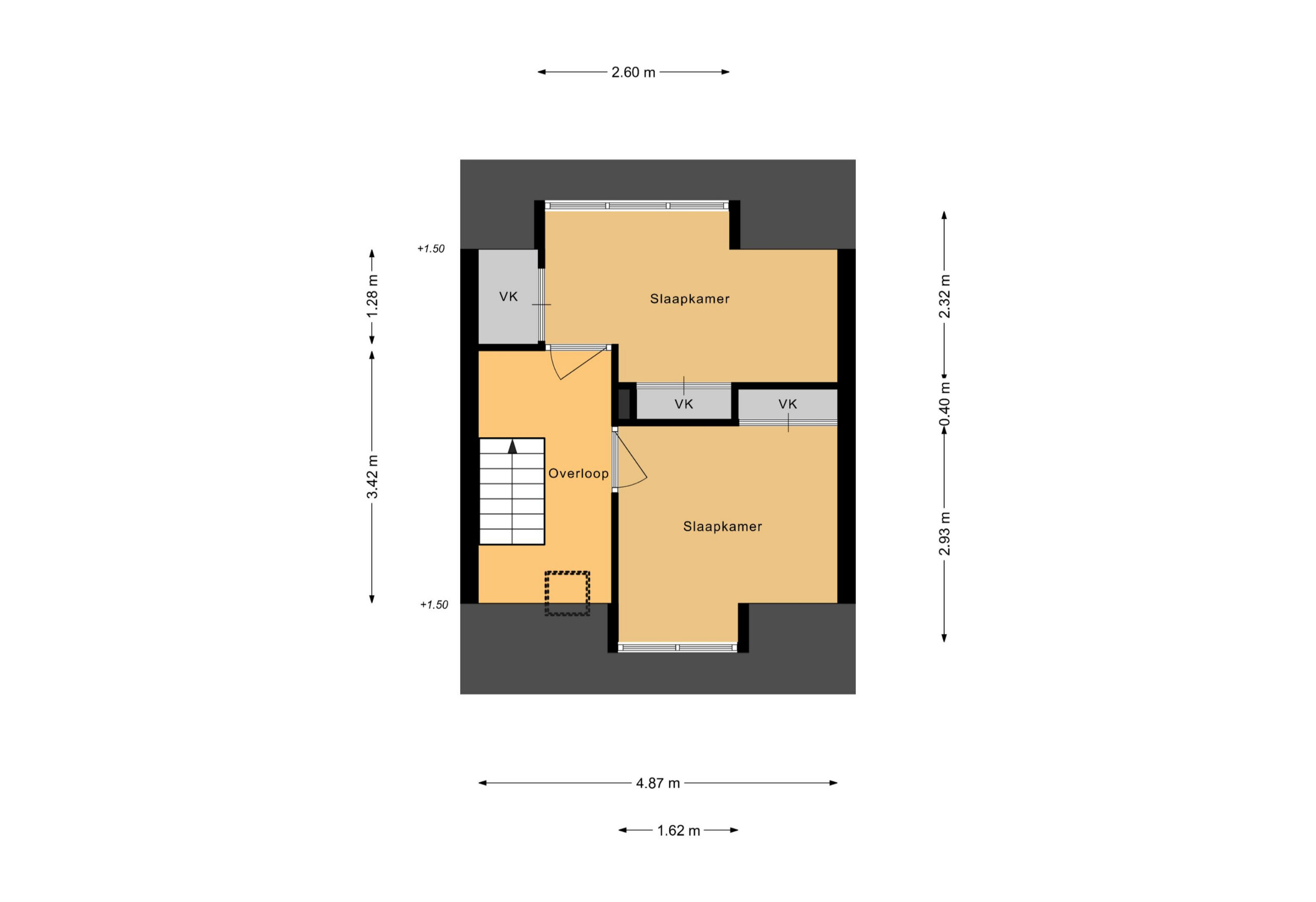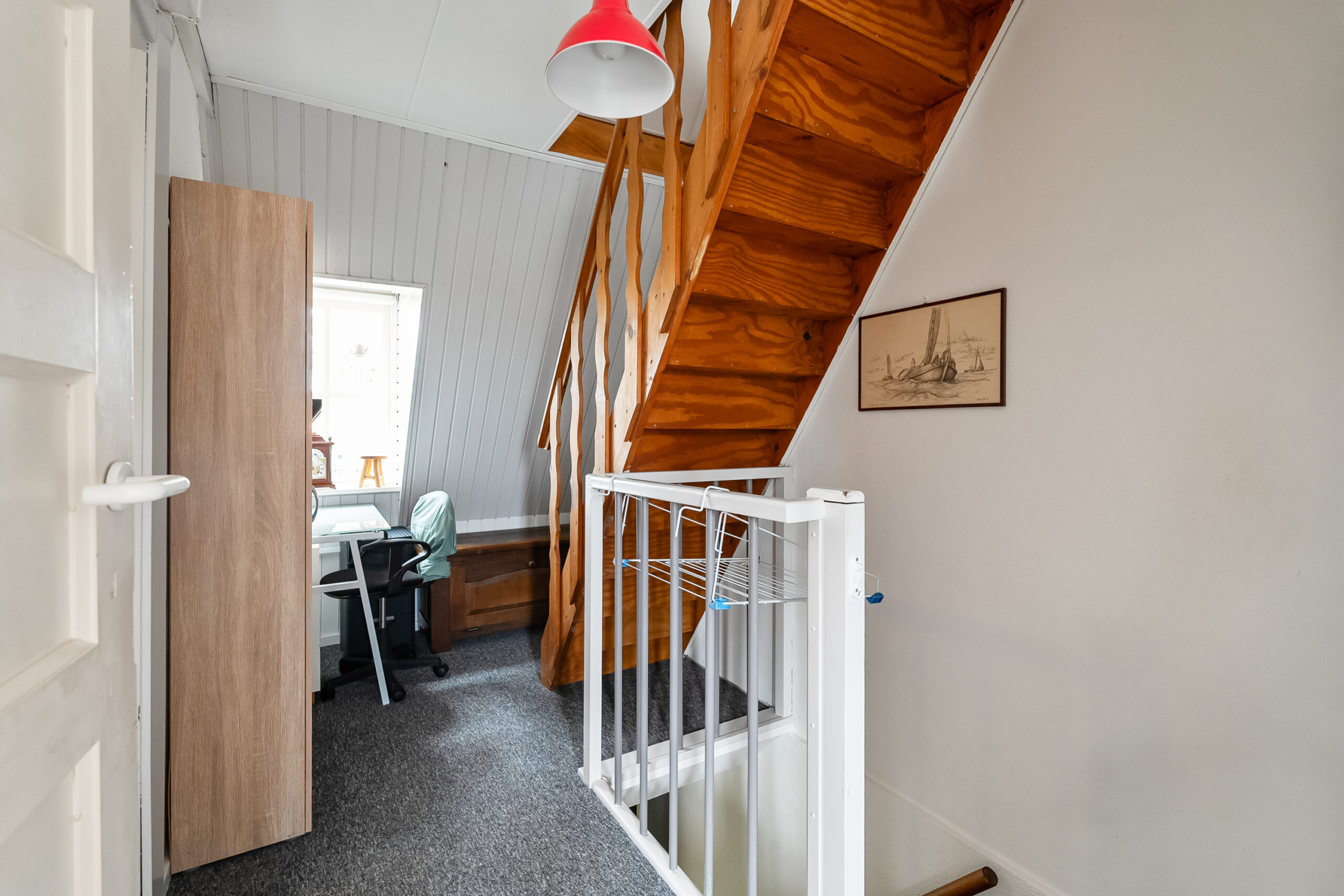 U komt boven op de ruime overloop met vaste trap naar de zolder. Op de eerst verdieping zijn twee ruime slaapkamers met dakkapel en inbouwkasten.