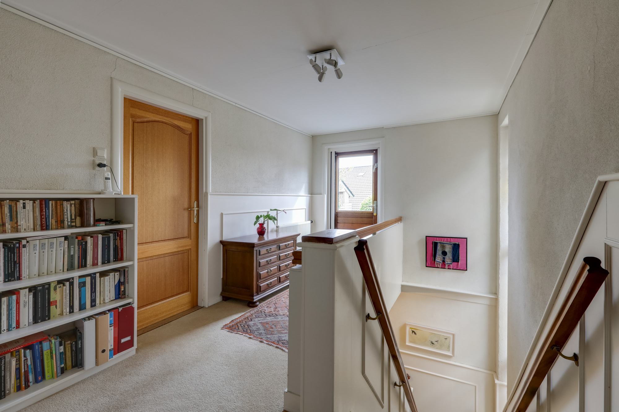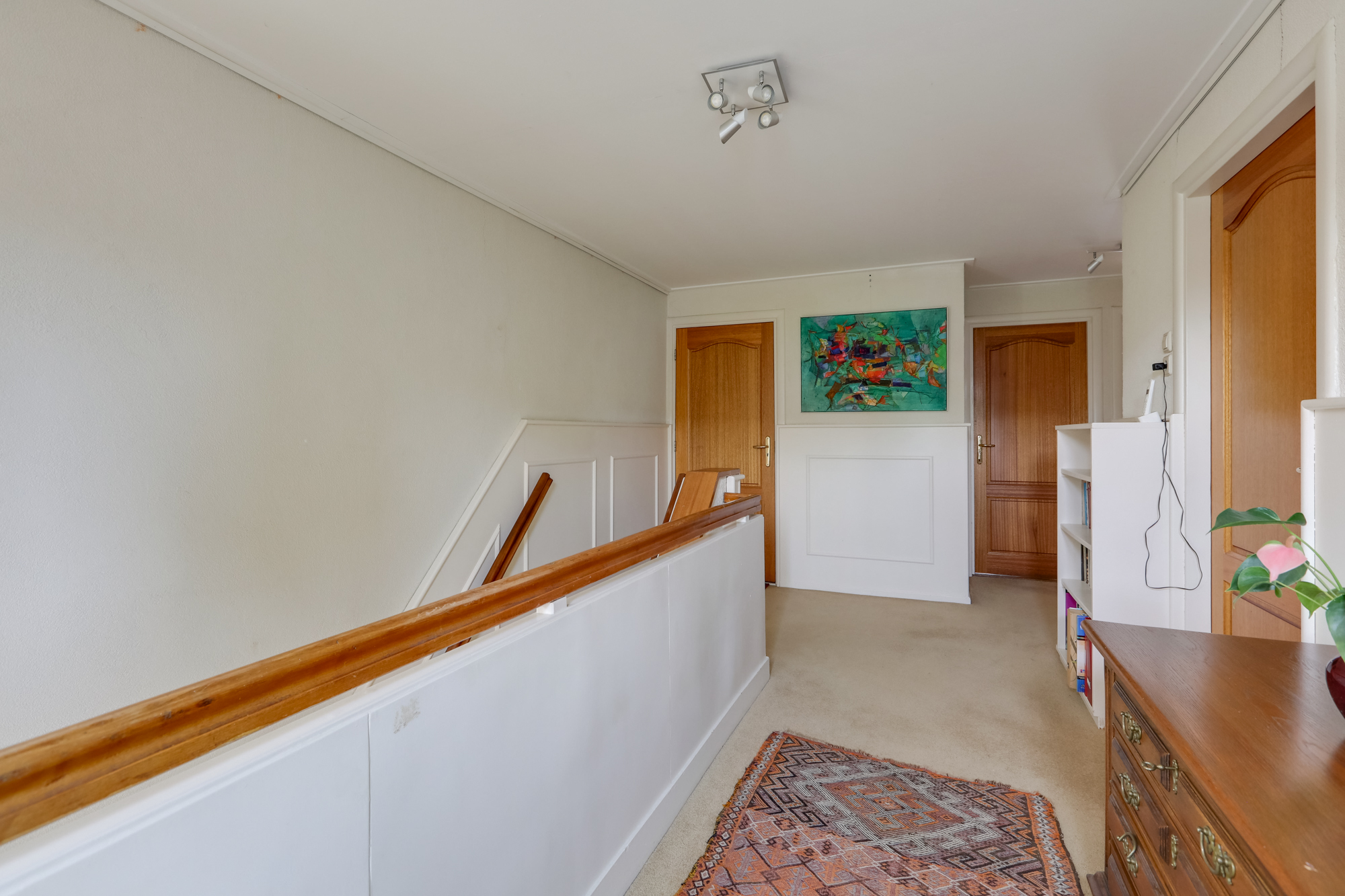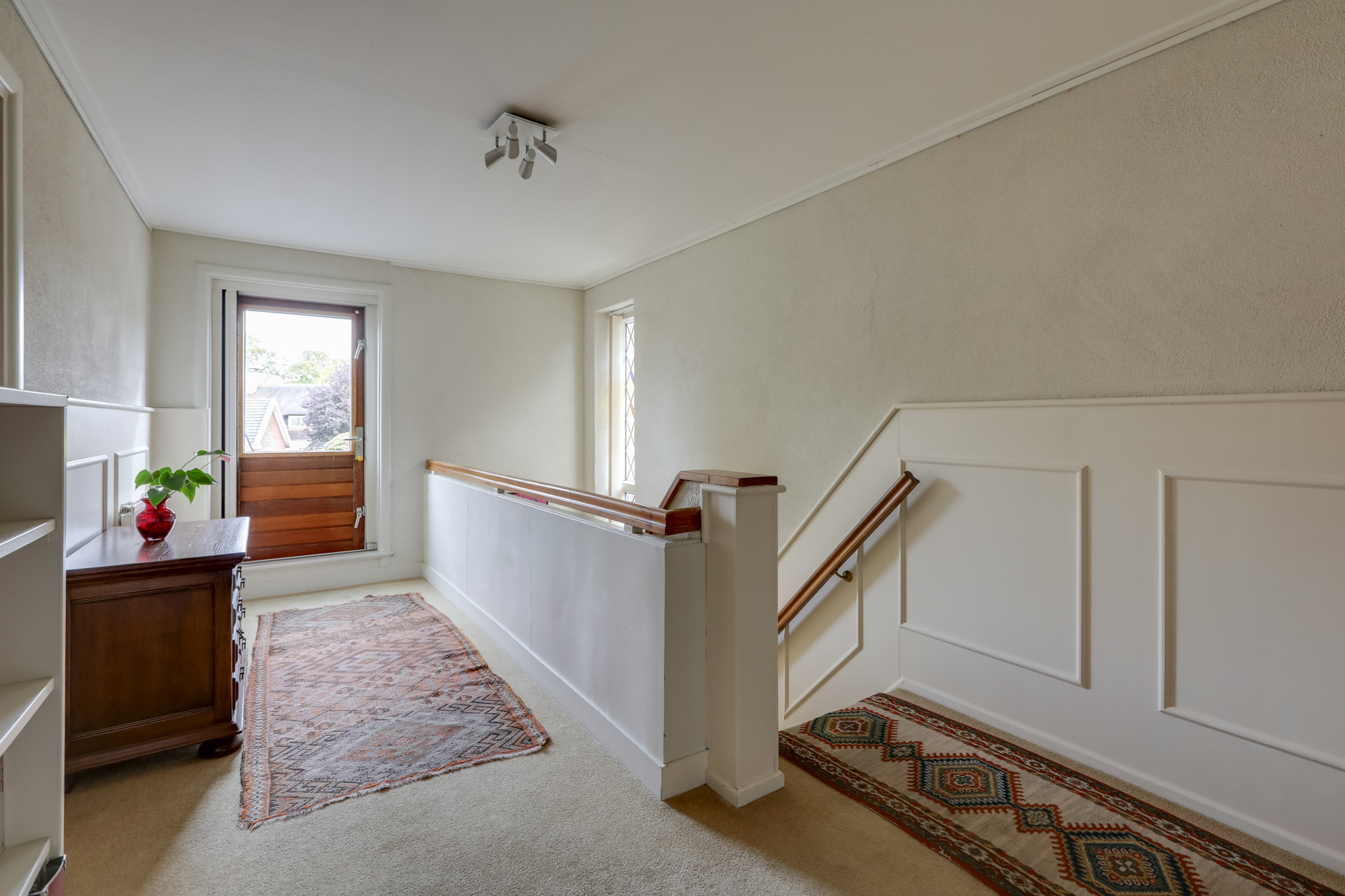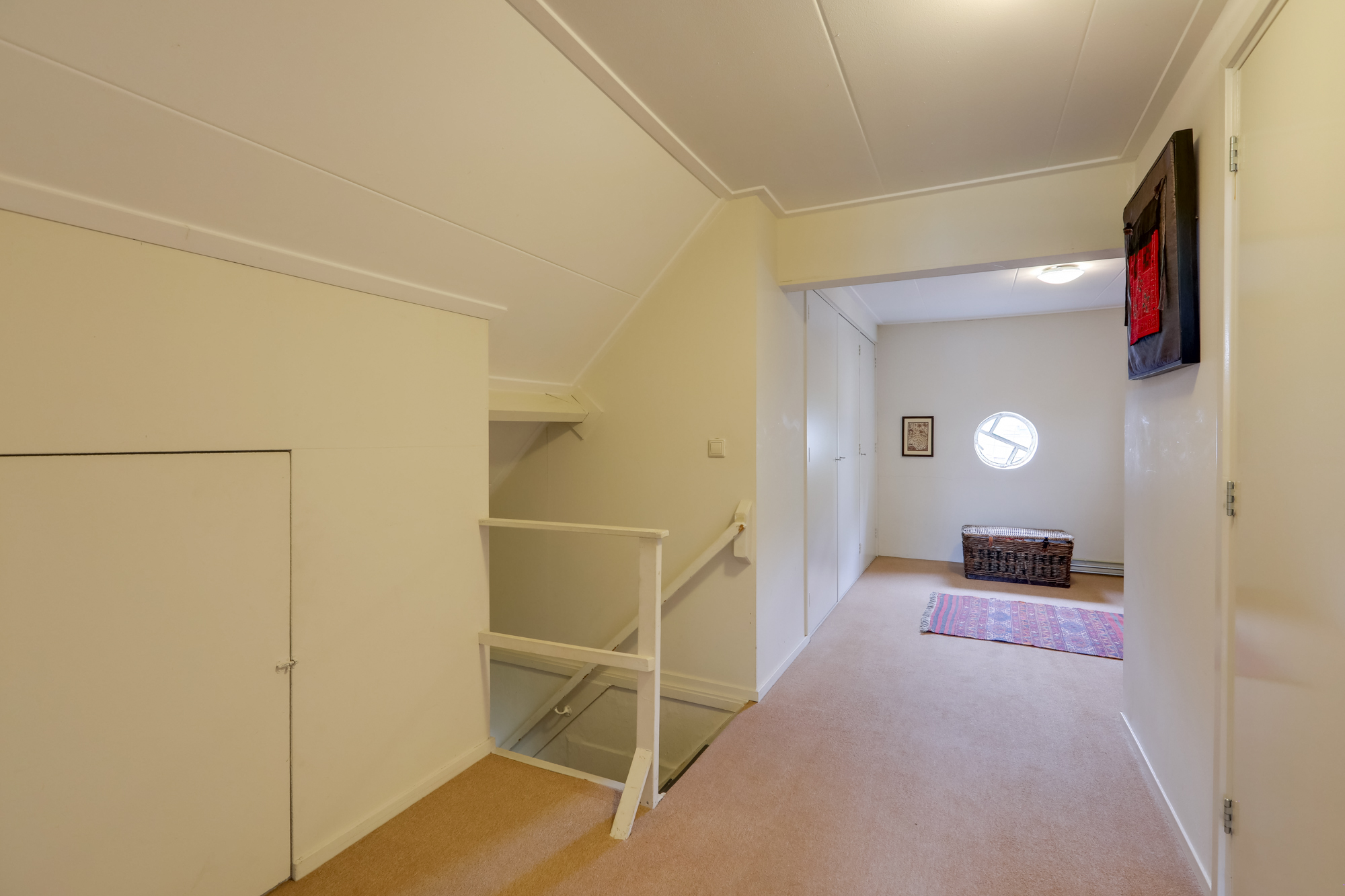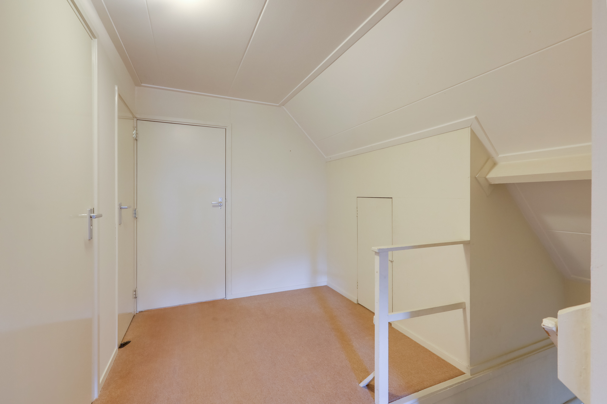 1e VERDIEPING: overloop met trapopgang naar 2e verdieping, toegang tot 3 goed bemeten slaapkamers met ruime inbouw kasten, waarvan één met een nieuwe schuifpui t.b.v. een mogelijk dakterras.