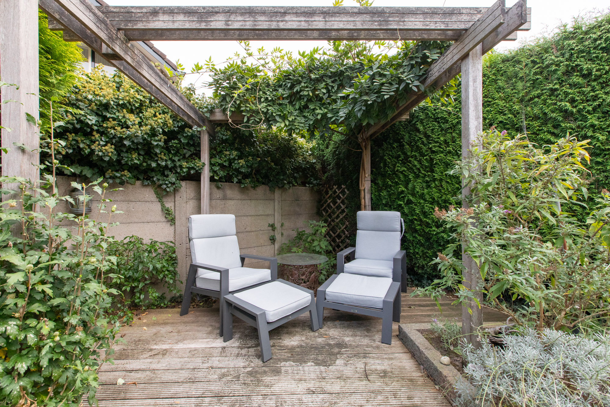 - Achtertuin 80 m2 (10 meter diep en 8 meter breed)
