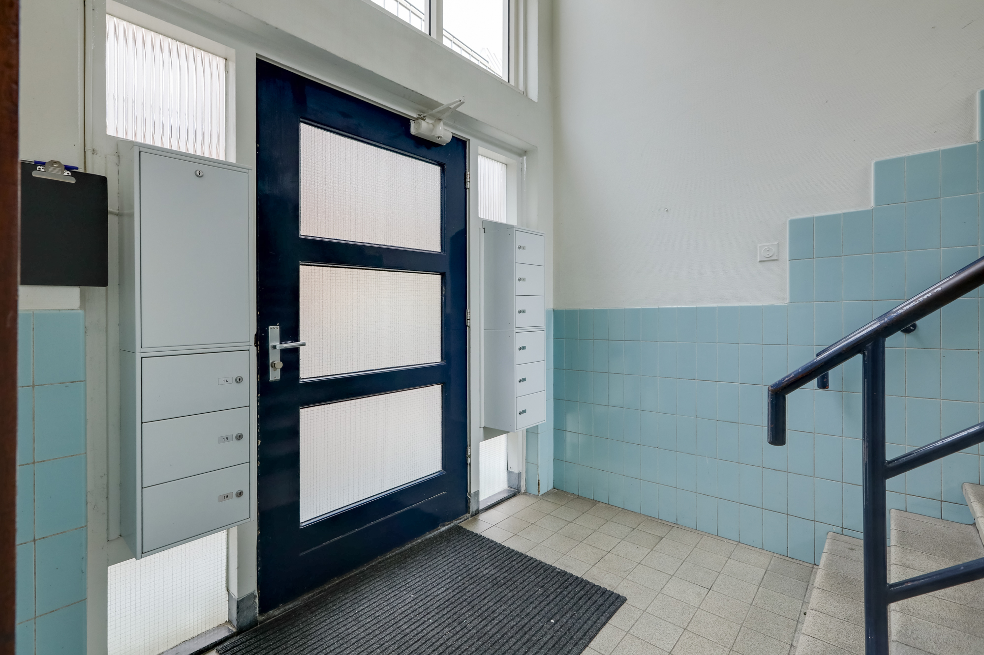 Beveiligde entree brievenbussen en beltableau met intercominstallatie, trappenhuis met trappartij naar de verdiepingen en de kelderbergingen. In de kelder bevindt zich een privé berging ter grootte van ca. 6 m².
