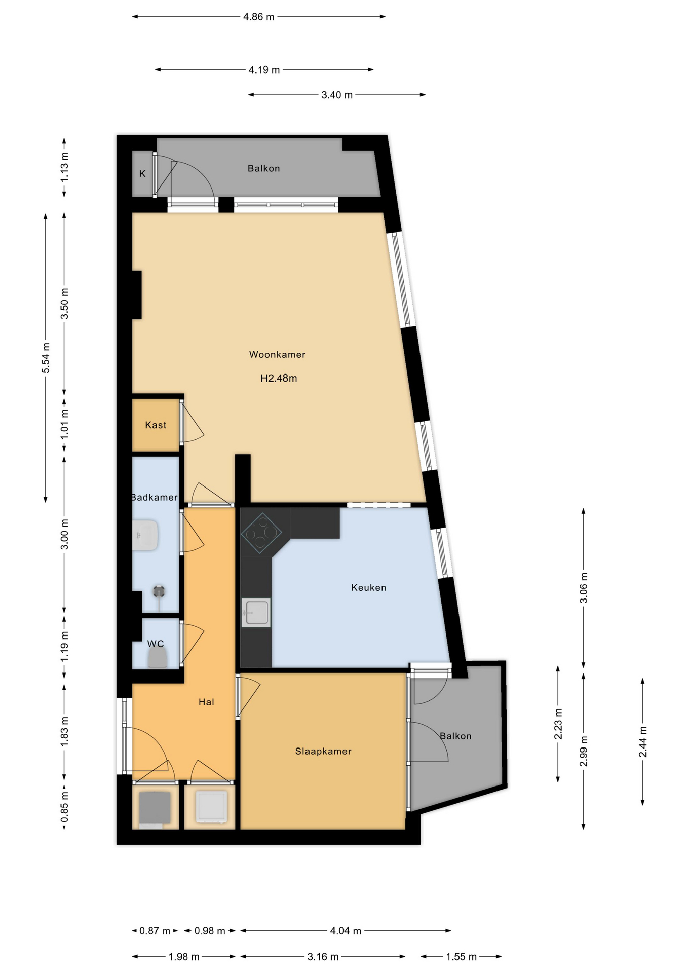 - Totaal kamers 2 kamers (1 slaapkamer)