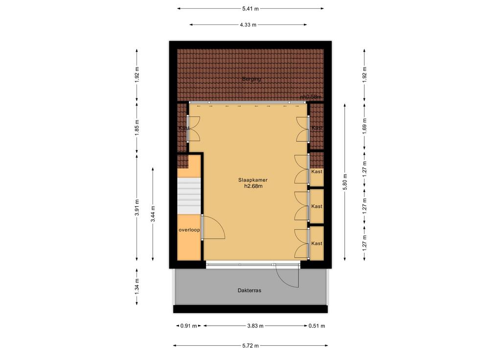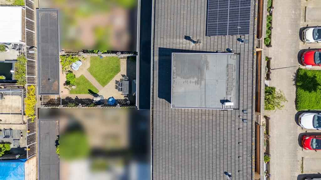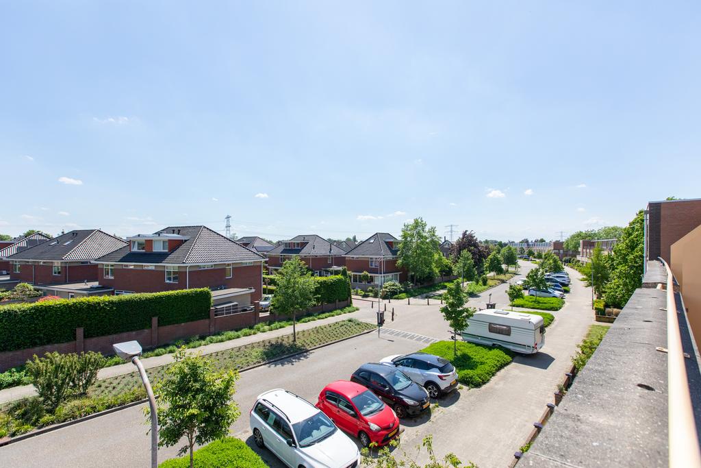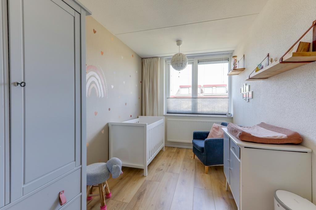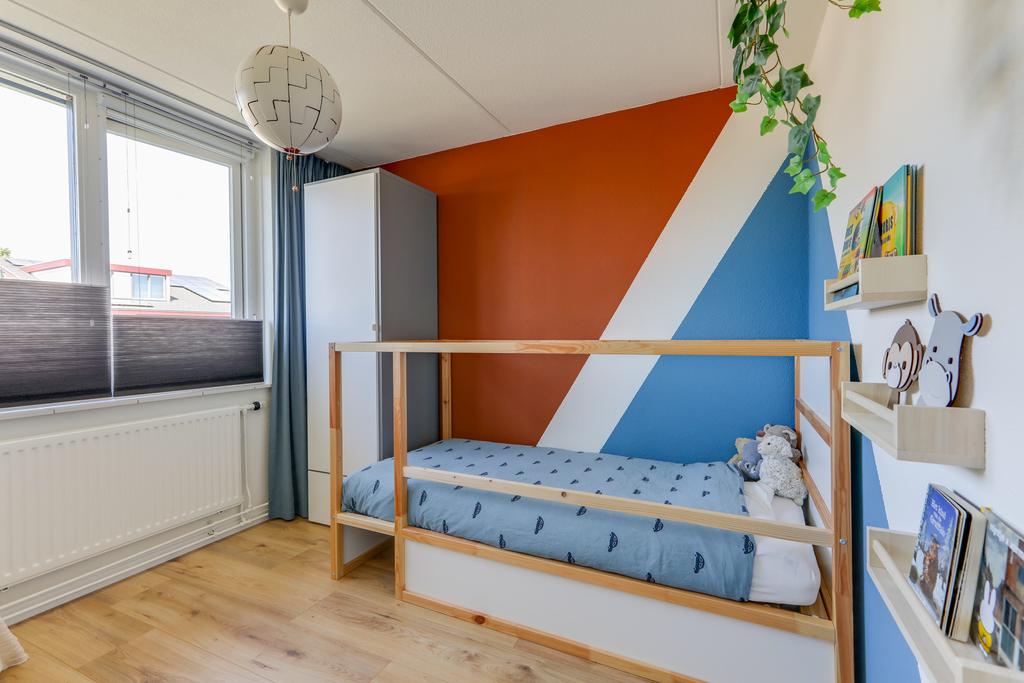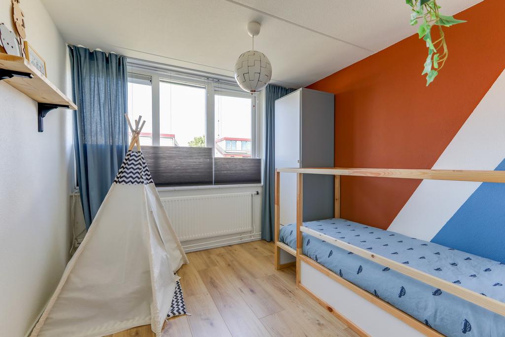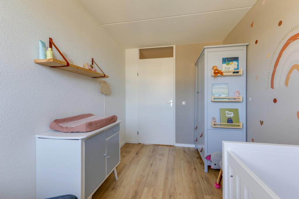 Grote 4e slaapkamer (werkkamer of hobbykamer, zelfs opsplitsen is mogelijk) doordat er in 2018 een dakkapel (in kunststof uitgevoerd, draai-/kiepramen met dubbele beglazing HR++, elektrische rolluiken en vlieghorren) is geplaatst. Deze grote en prettige ruimte heeft een vaste kastenwand, laminaatvloer en spotjes in het plafond. De zolder is extra aangenaam door de airco die is geplaatst in 2022. Vanuit deze slaapkamer is het balkon/dakterras van 7.7 m2 aan de voorzijde te bereiken.
