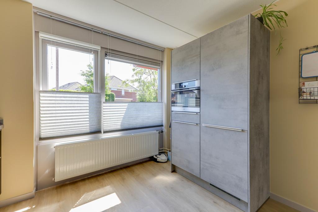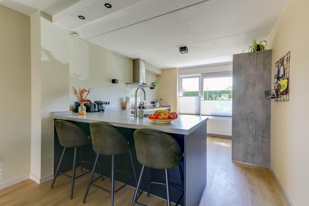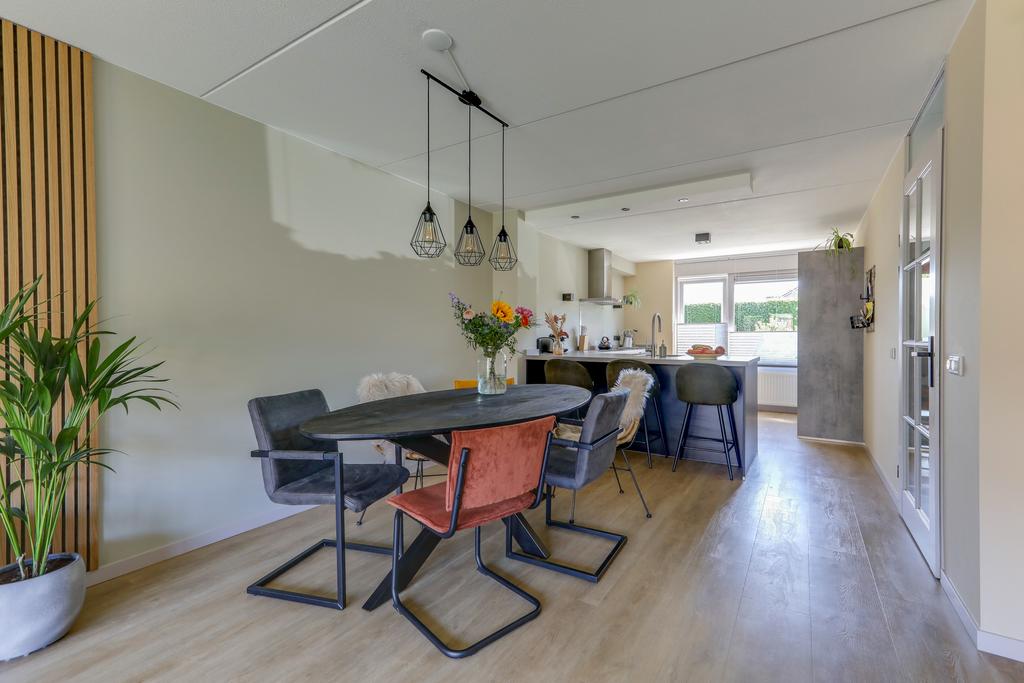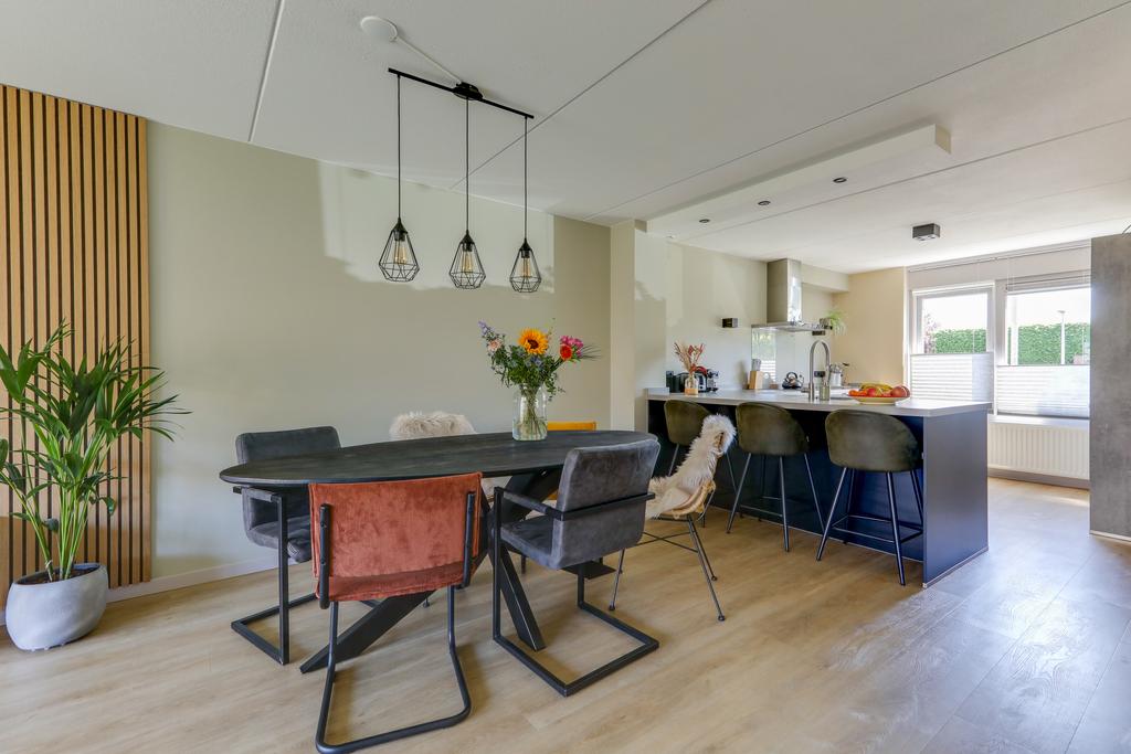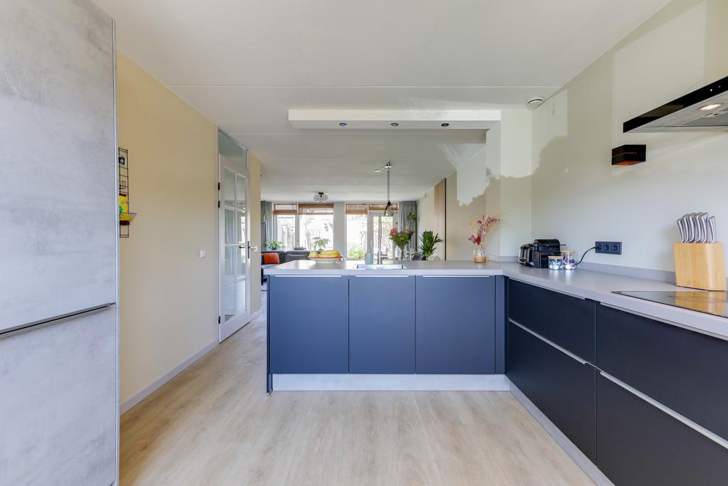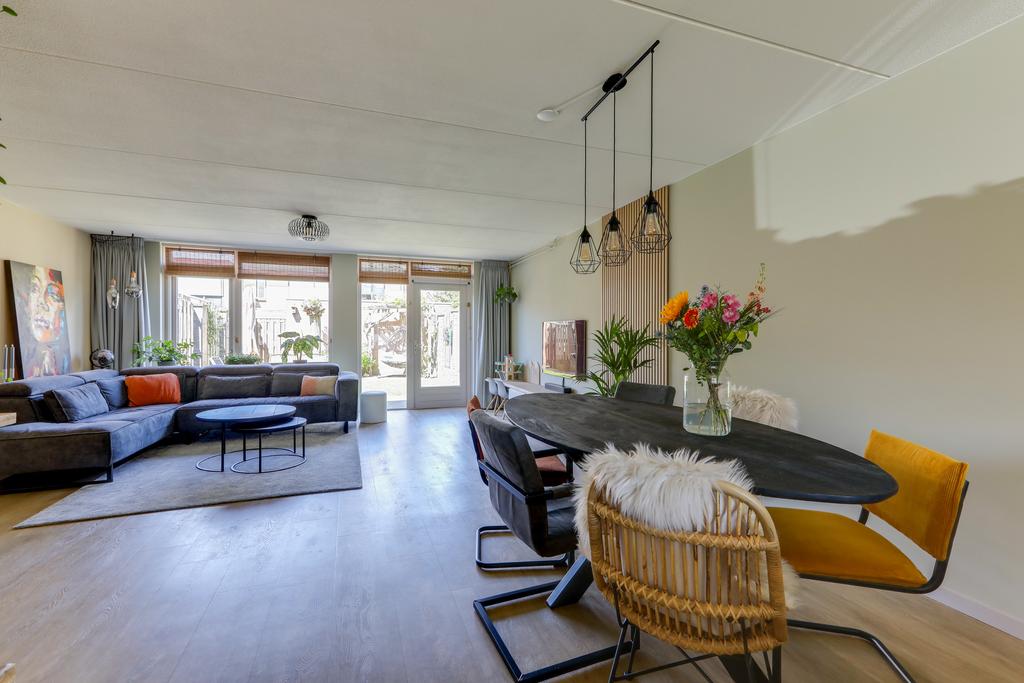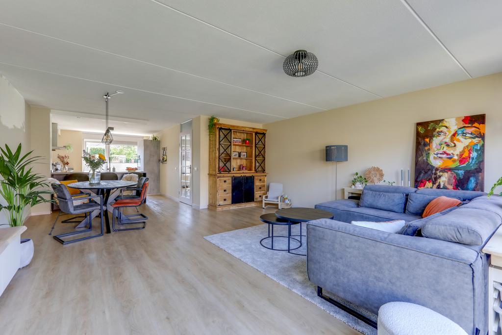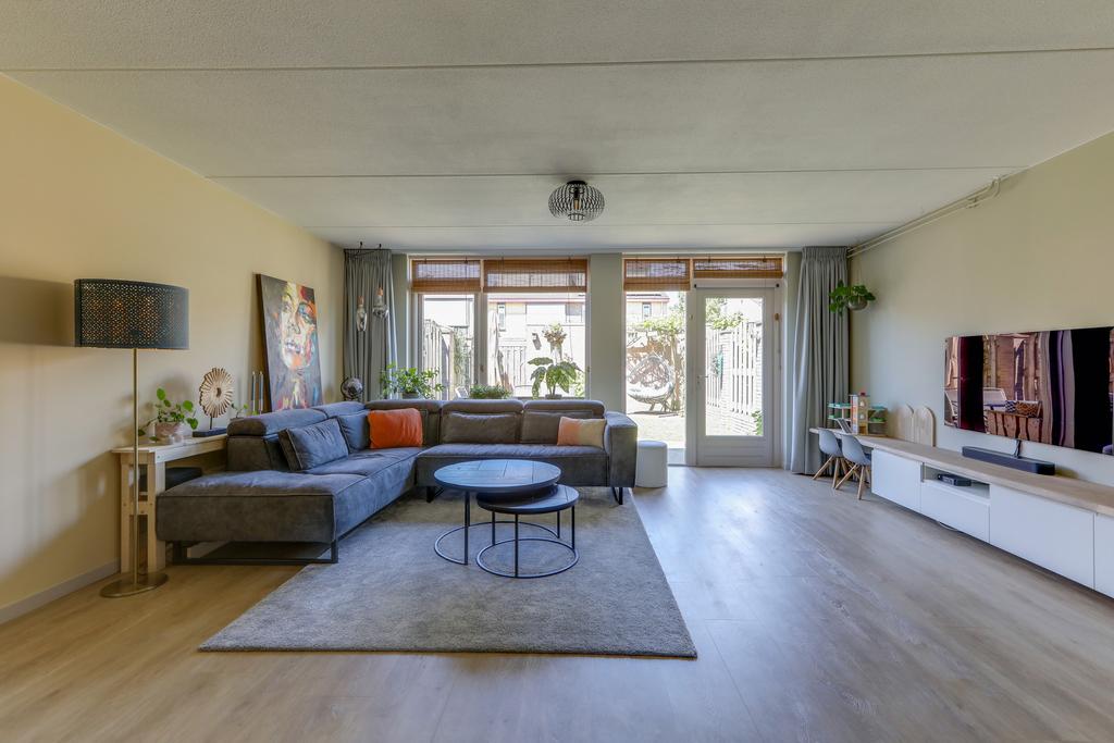 De ruime uitgebouwde woonkamer biedt uitzicht op de achtertuin en is voorzien van een nieuwe PVC vloer (2020) met vloerverwarming. De wanden zijn einde 2023 gestuukt en in 2024 geschilderd. Omdat de woonkamer breder en dieper is dan standaard zijn er verschillende manieren om de begane grond in te delen. Zo is er ruimte genoeg om tv-meubel, zithoek en een grote eettafel te plaatsen.