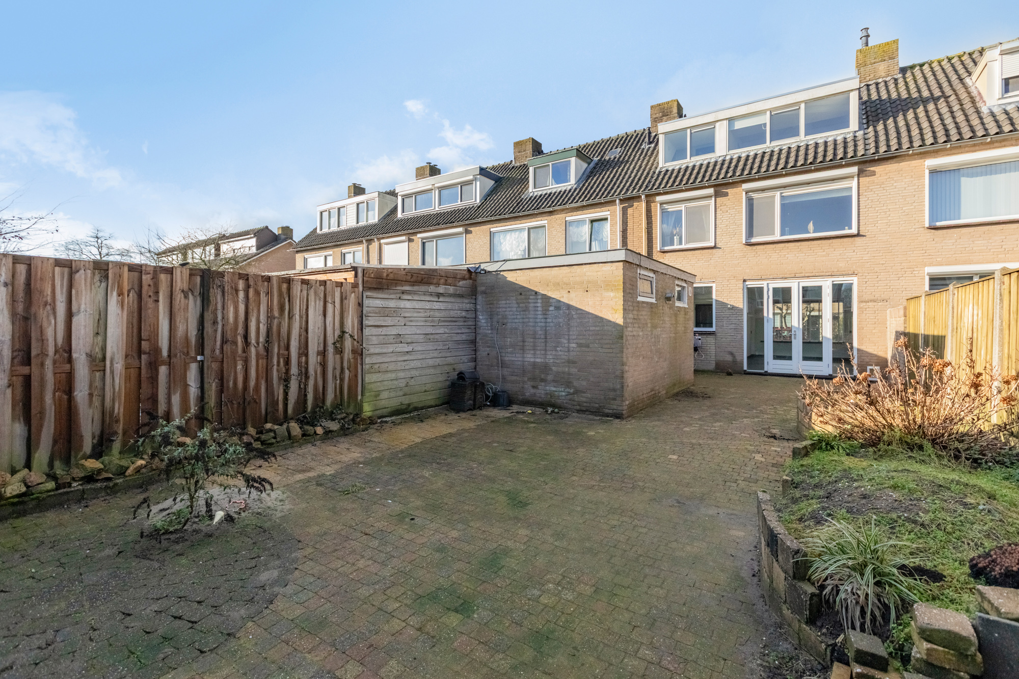 - Achtertuin 85 m2 (13 meter diep en 6.5 meter breed)