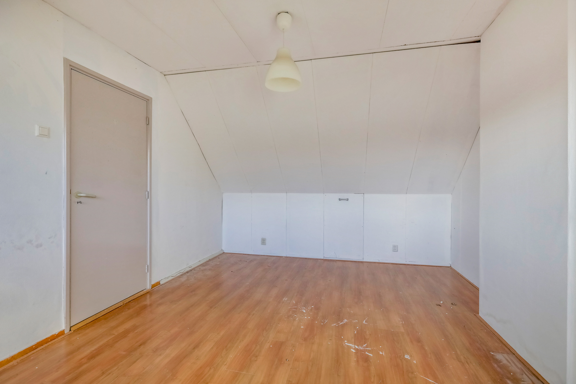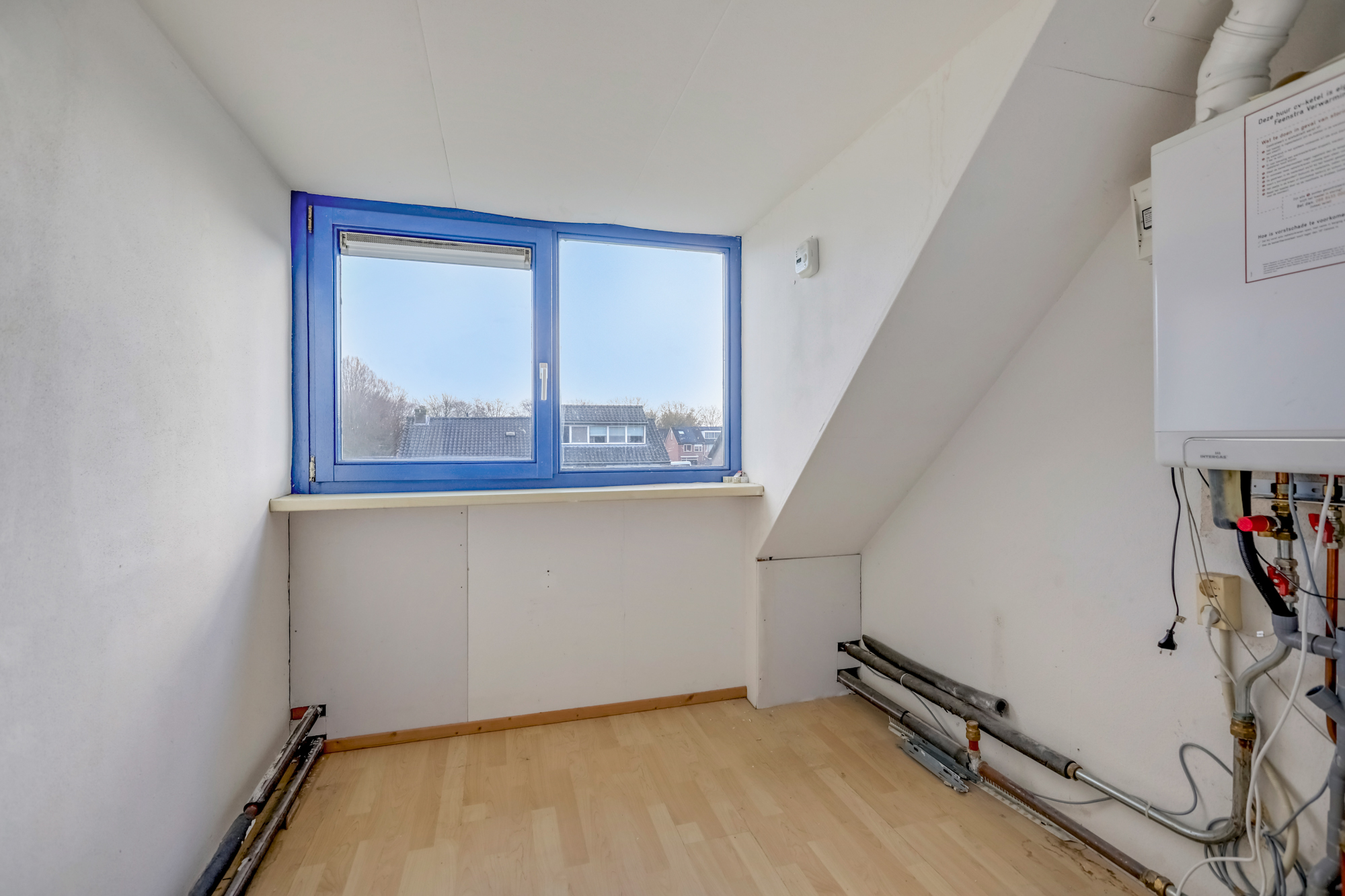 De tweede verdieping is bereikbaar via een vaste trap en biedt dankzij de nokverhoging ruimte aan een vierde slaapkamer, wasruimte en extra bergruimte achter knieschotten. Daarnaast de opstelling voor CV ketel hier.