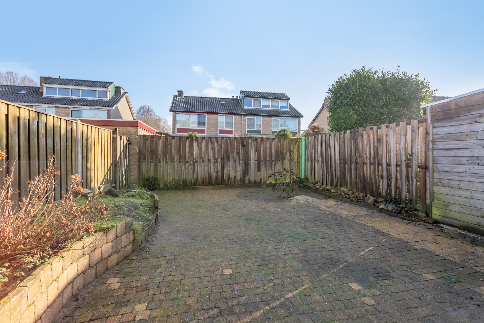 • Zonnige diepe achtertuin