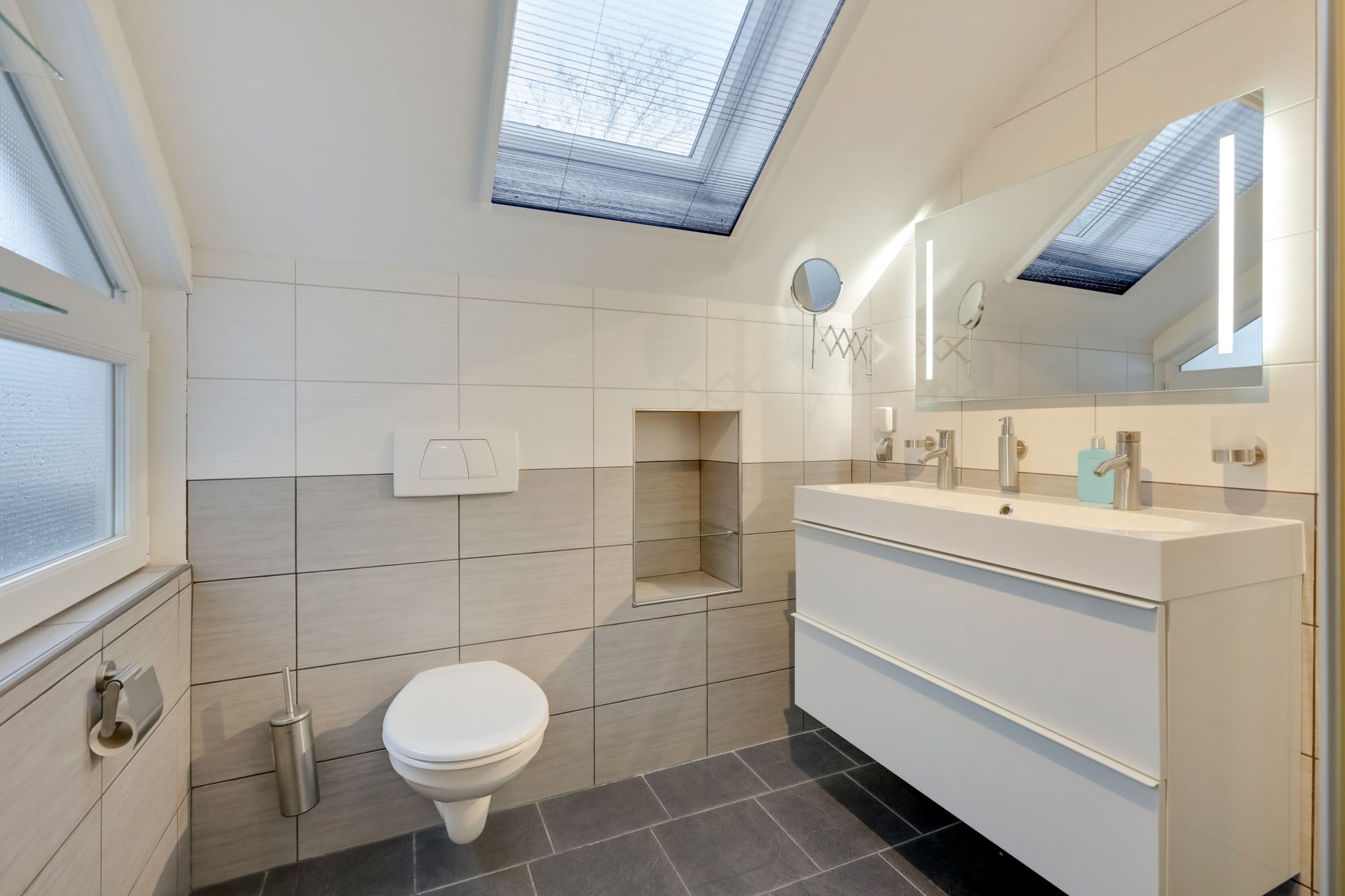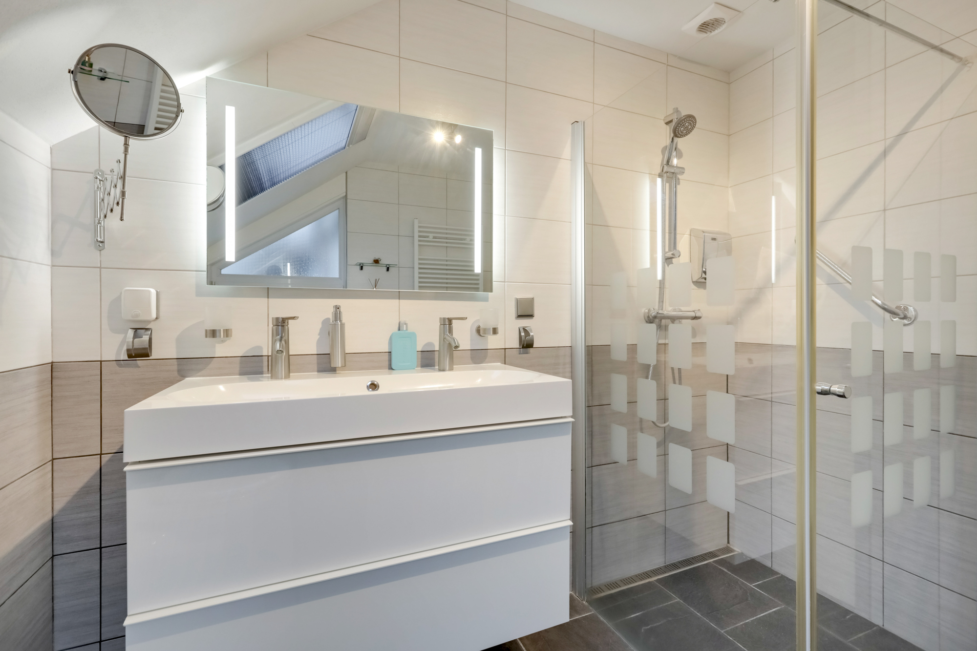 - Badkamervoorzieningen Toilet, Dubbele wastafel, Inloopdouche