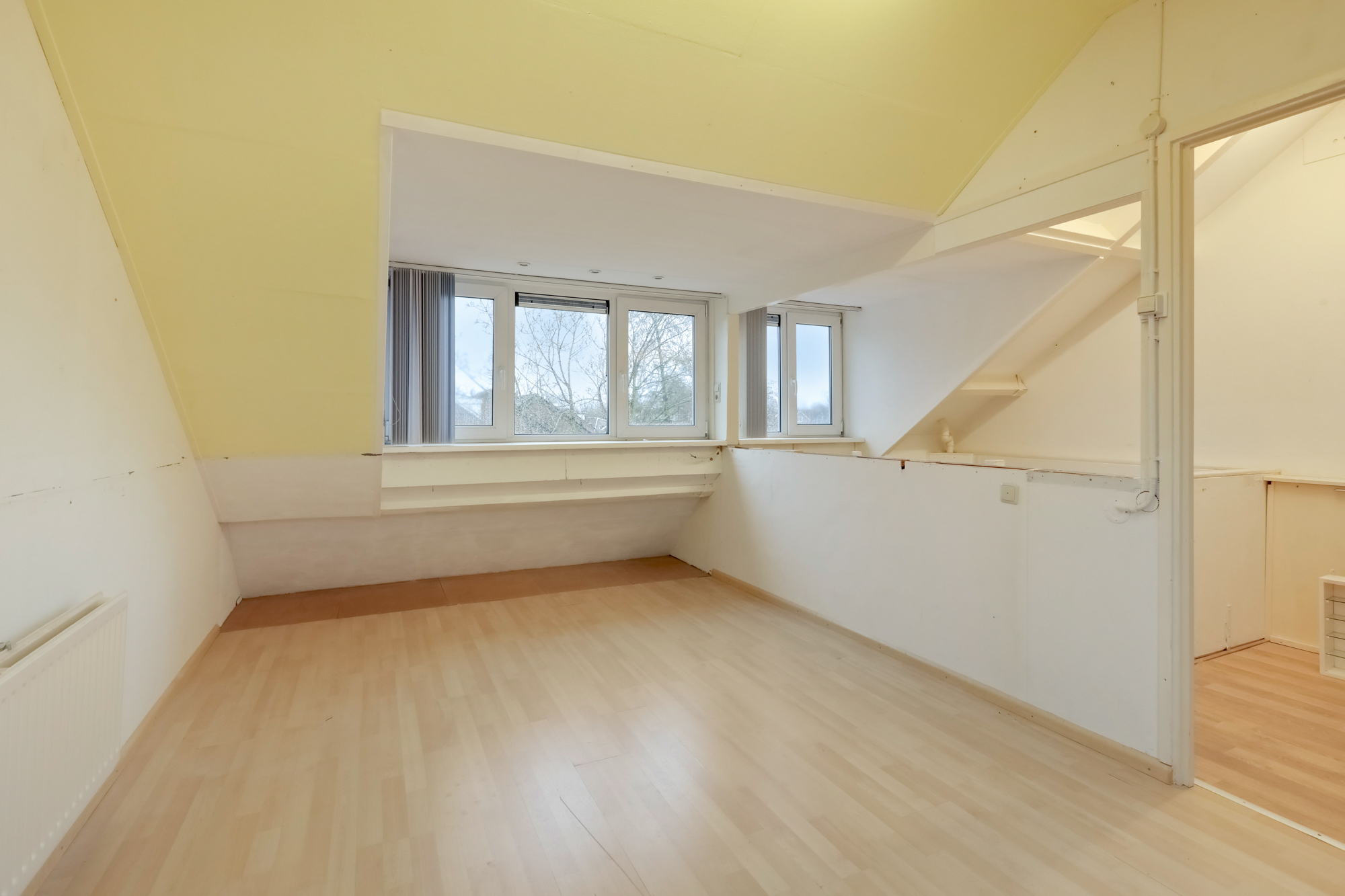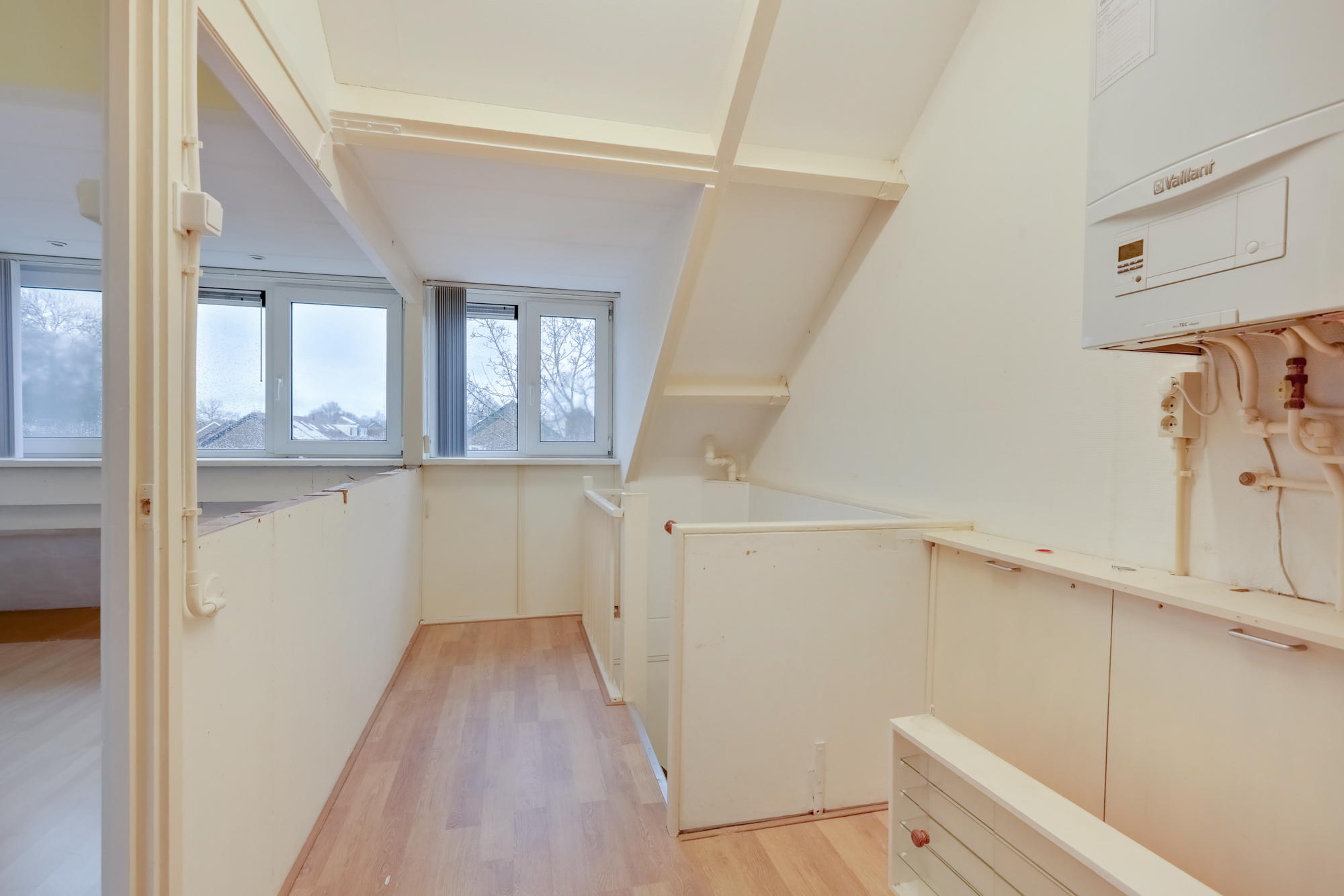 Ruime zolderverdieping met voorzolder, ideaal voor wasmachine/droger opstelling. Daarnaast opstelling van de HR combiketel (eigendom 2019). Mogelijkheid voor vierde grote slaapkamer, aan de voorzijde van de zolder is er een brede dakkapel die doorloopt in de voorzolder, aan de achterzijde heeft de slaapkamer een kunststof dakraam. Aanzienlijke bergruimte onder het schuine dak.