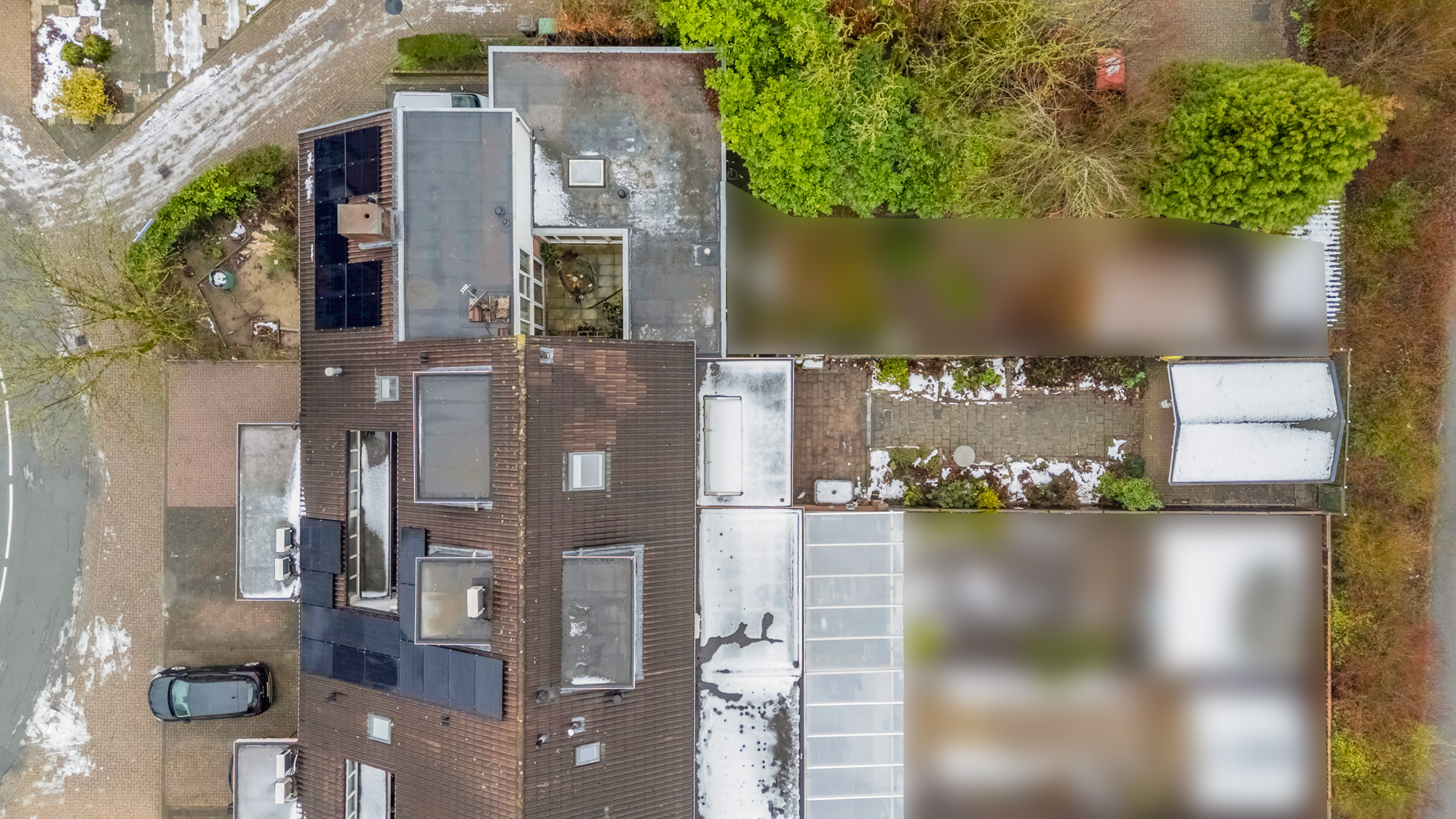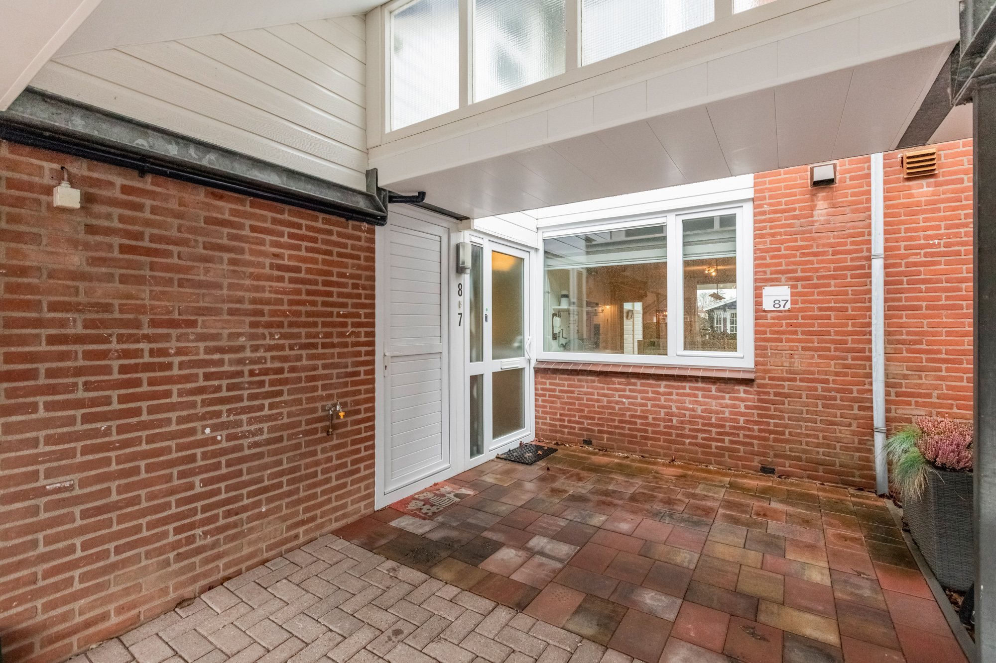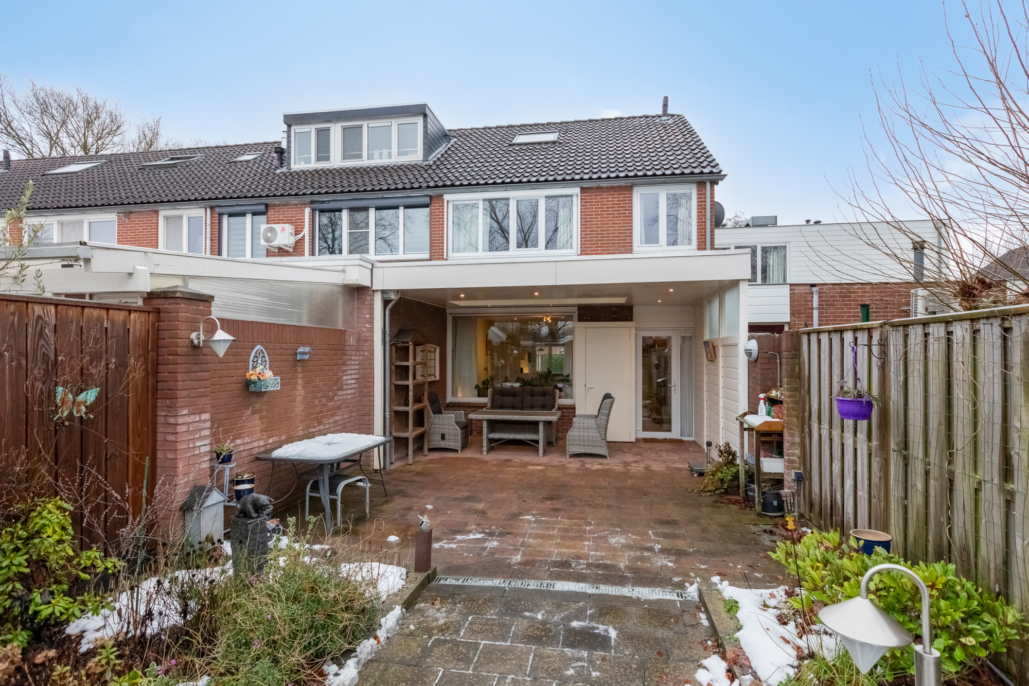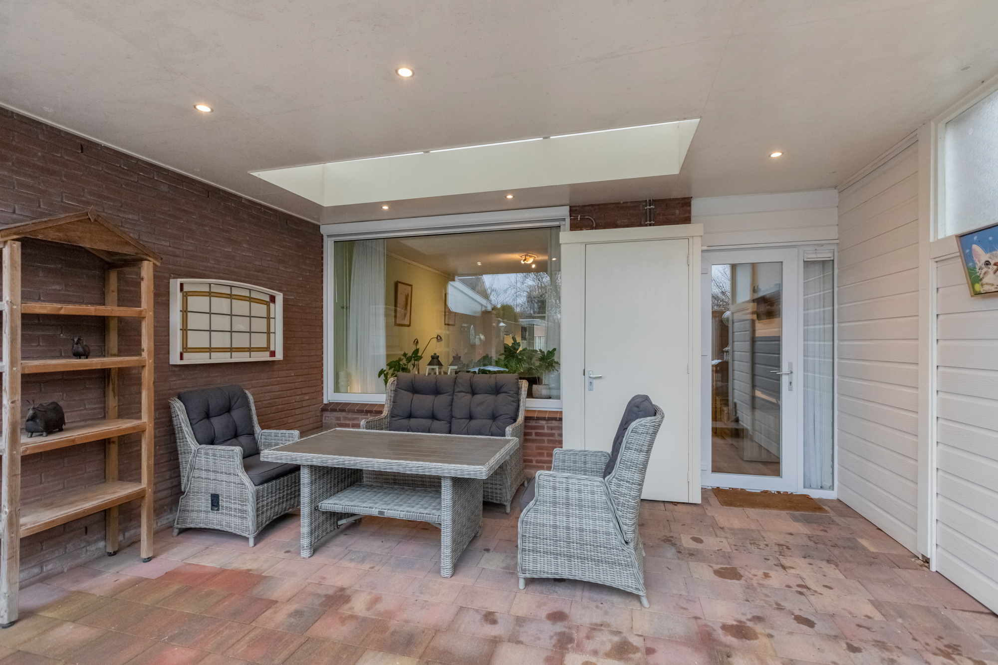 Grote overkapping met lichtstraat aan de achterzijde van de woning.