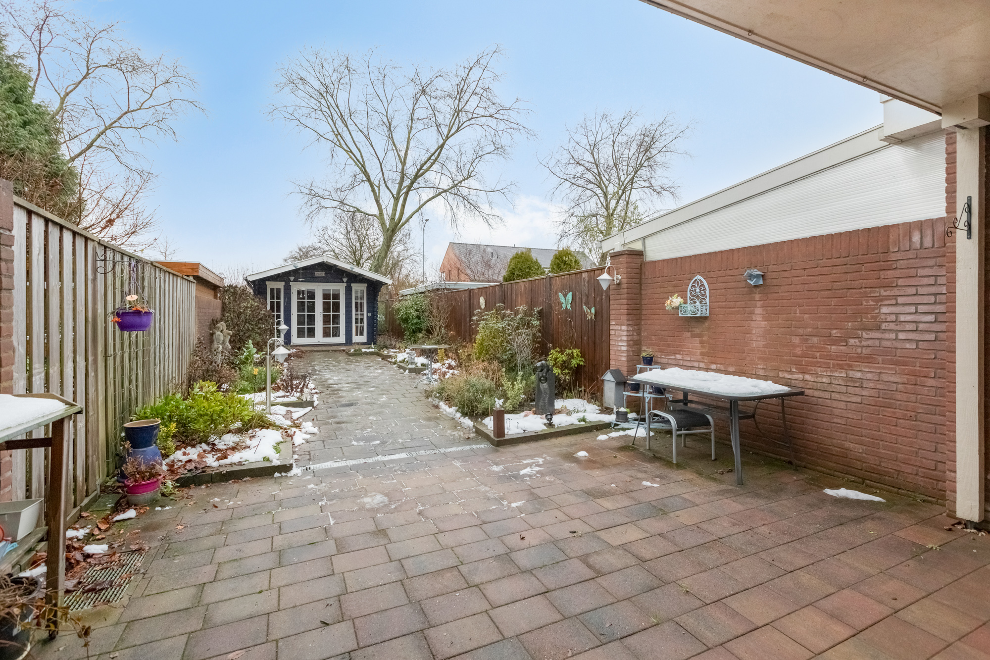 - Achtertuin 111 m2 (21 meter diep en 5.3 meter breed)