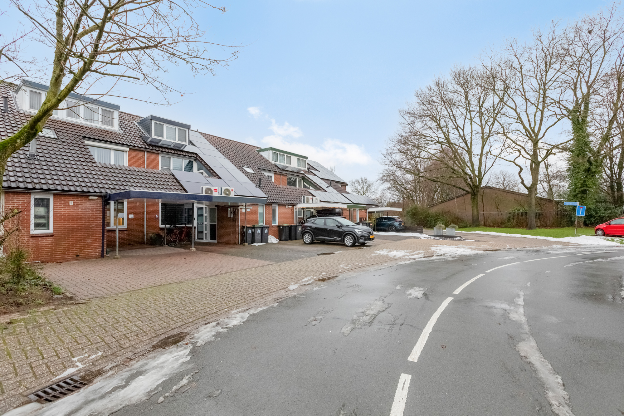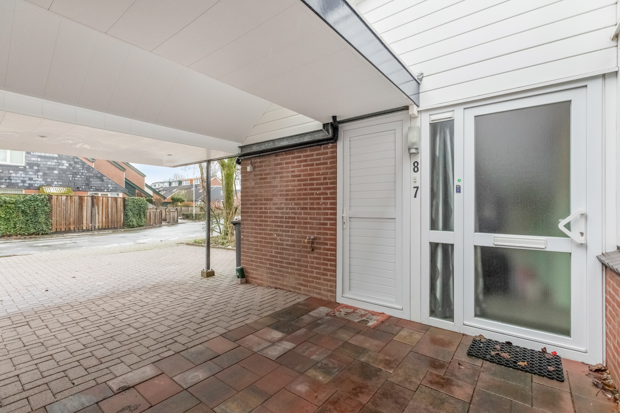 Via de eigen oprit met carport toegang naar de woning via de voordeur of via de berging aan de voorzijde. Deze berging is ook voorzien van kunststof kozijnen, heeft een bergzolder en binnendoor naar de entree/hal, die is voorzien van plavuizenvloer, garderobe, meterkast (automatenkast) en nette toiletruimte (vernieuwd in 2021 met zwevend toilet en fontein).