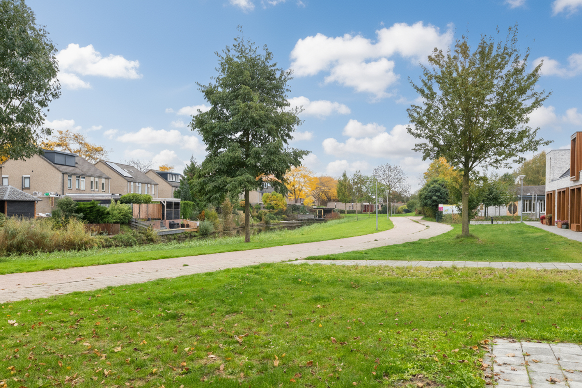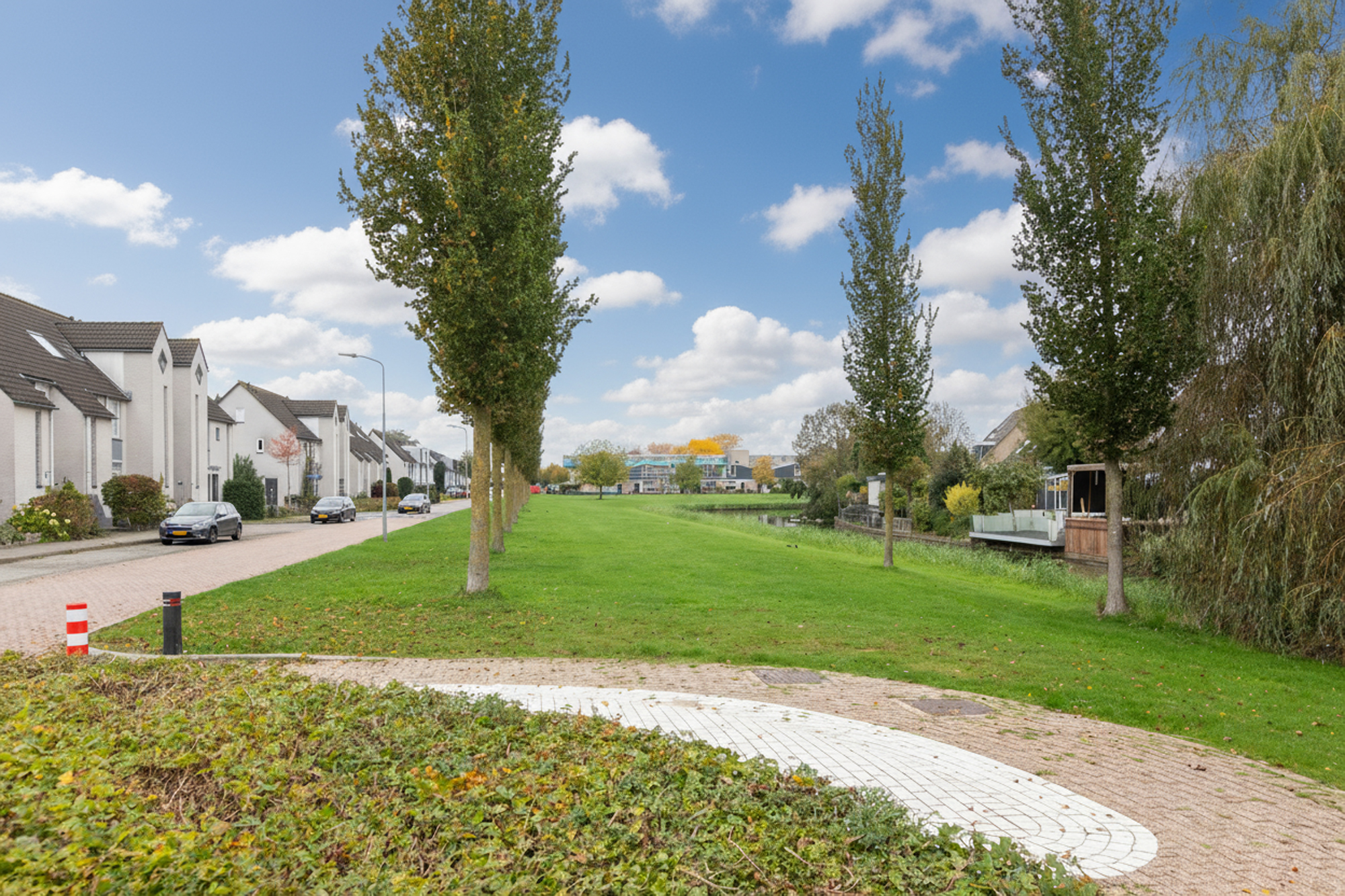 De woning is aan de voorzijde vrij gelegen aan een fietspad, met een fraai uitzicht over de vijversloot. Dit biedt rust, ruimte en een prettige lichtinval, terwijl alle voorzieningen van Duiven en omgeving binnen handbereik zijn. Winkelcentrum ’t Eilandplein en het NS trein & busstation zijn op loopafstand te bereiken.
