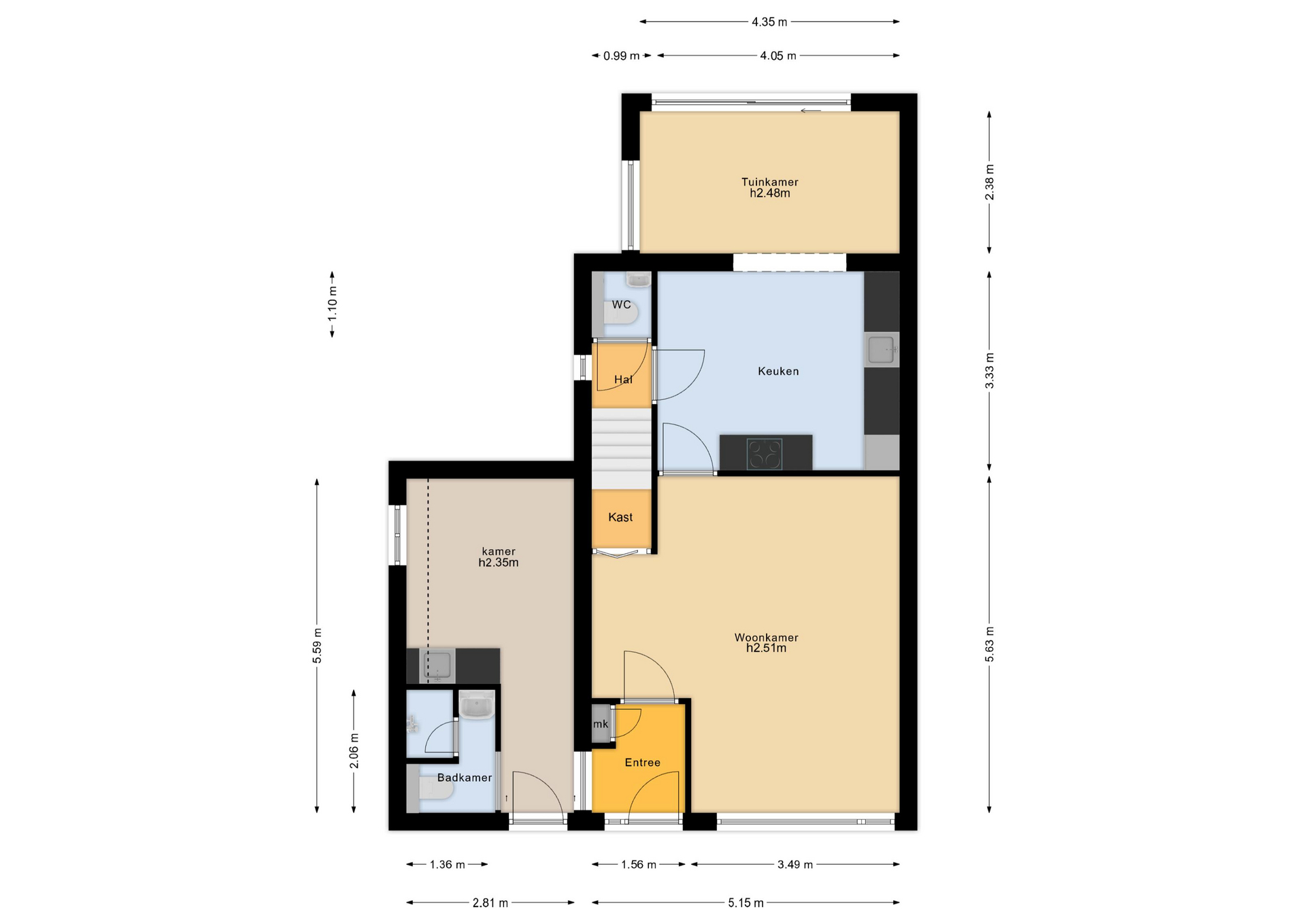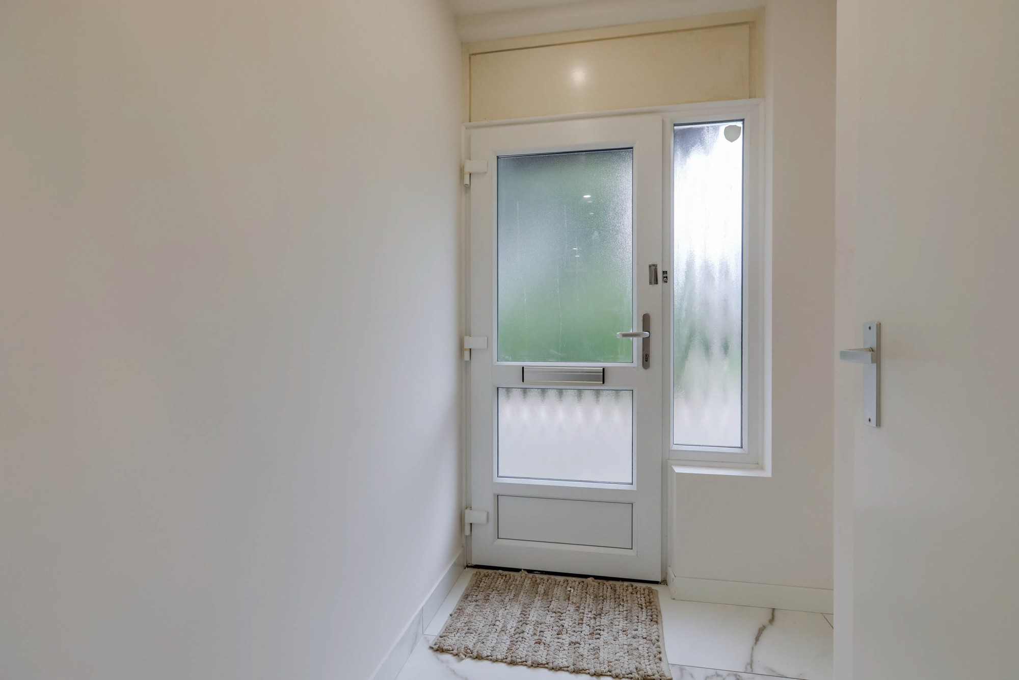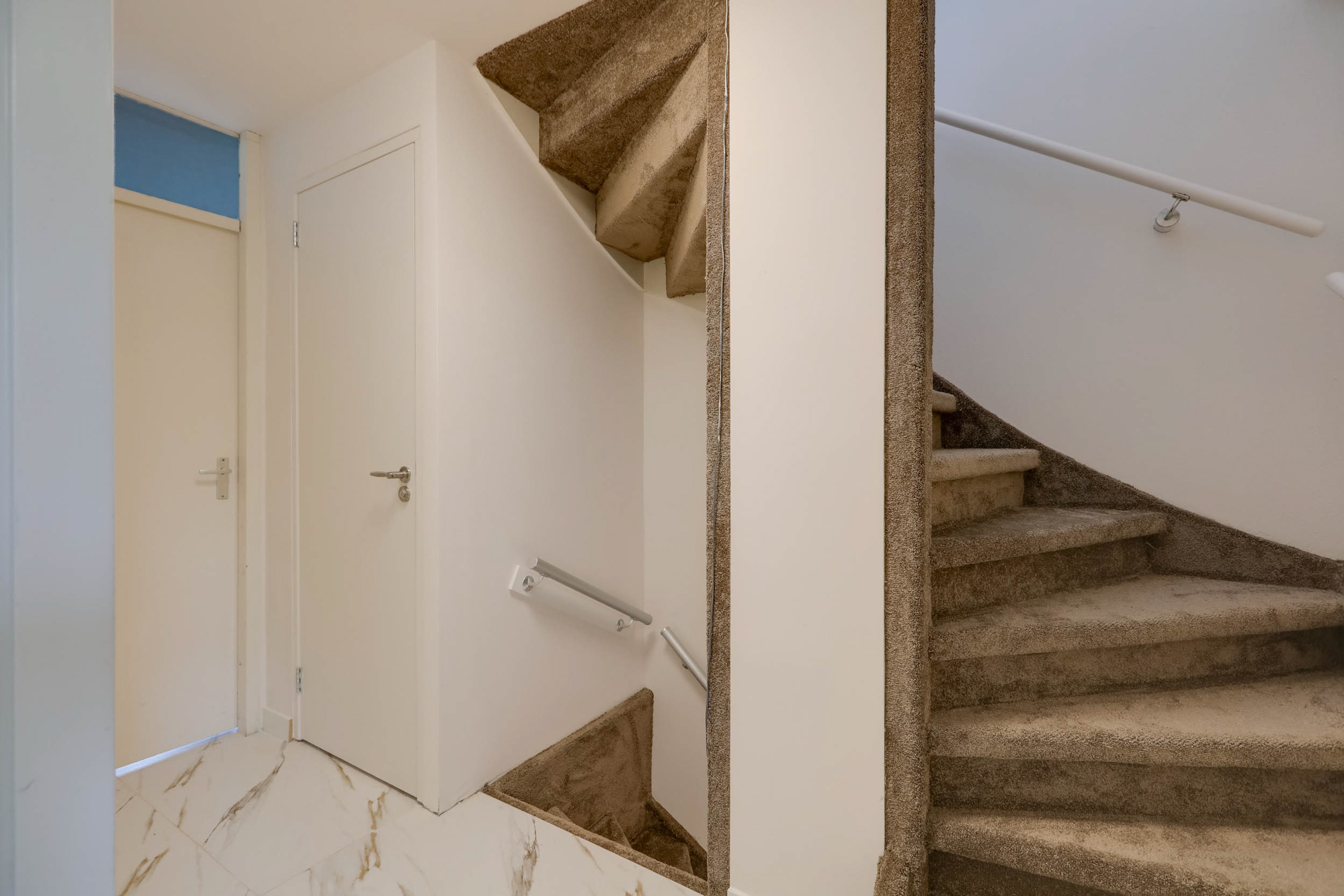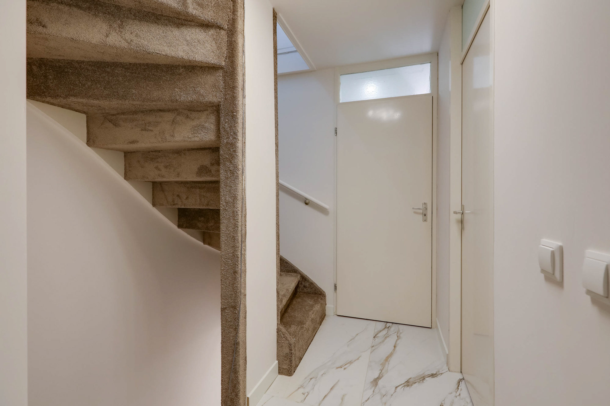 Entree met meterkast, hal met trapopgang en toilet. Vanuit de hal toegang tot de ruime en lichte woonkamer met vloerverwarming en aansluitend de keuken. De keuken staat in verbinding met de tuinkamer, die uitkijkt op de achtertuin. Via de schuifpui bereik je de achtertuin.