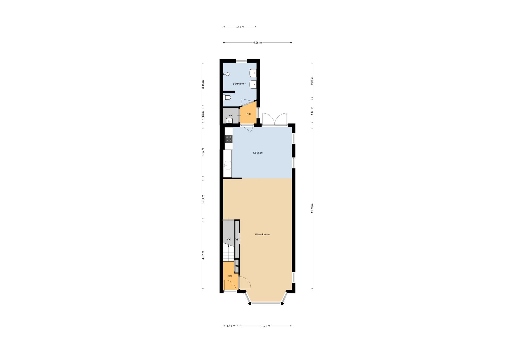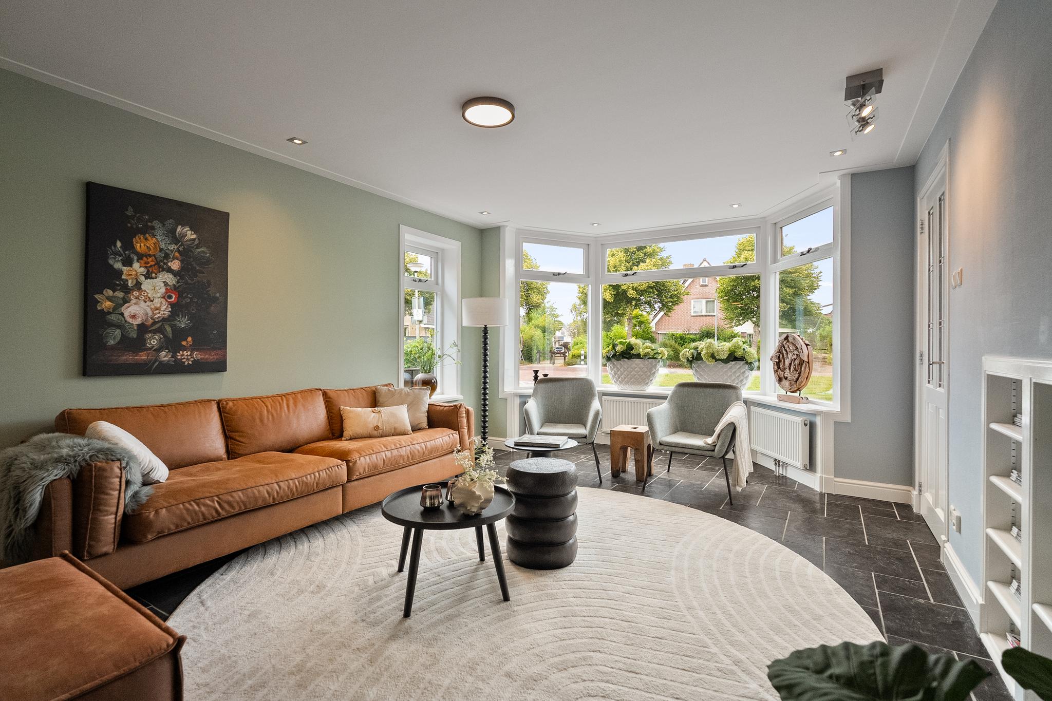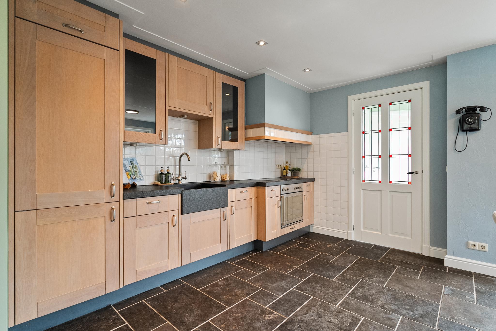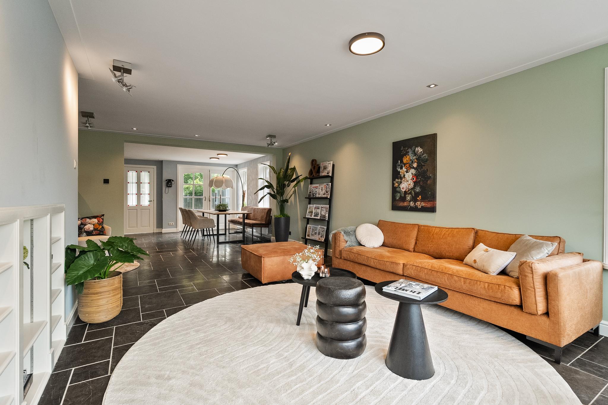 Voorentree naar de hal met meterkast en trapopgang. U loopt door naar de lichte en ruime uitgebouwde woonkamer met sfeervolle erker aan de voorzijde en grote raampartijen. De woonkamer heeft een plavuizen vloer met vloerverwarming, gestuukte wanden en plafonds en open keuken. Open keuken aan de achterzijde met openslaande tuindeuren en plek voor een grote eettafel. Achter de keuken treft u een hal met plek voor de wasmachine en -droger. Betegelde en ruime badkamer met dubbele wastafel, hangend closet en grote douche.