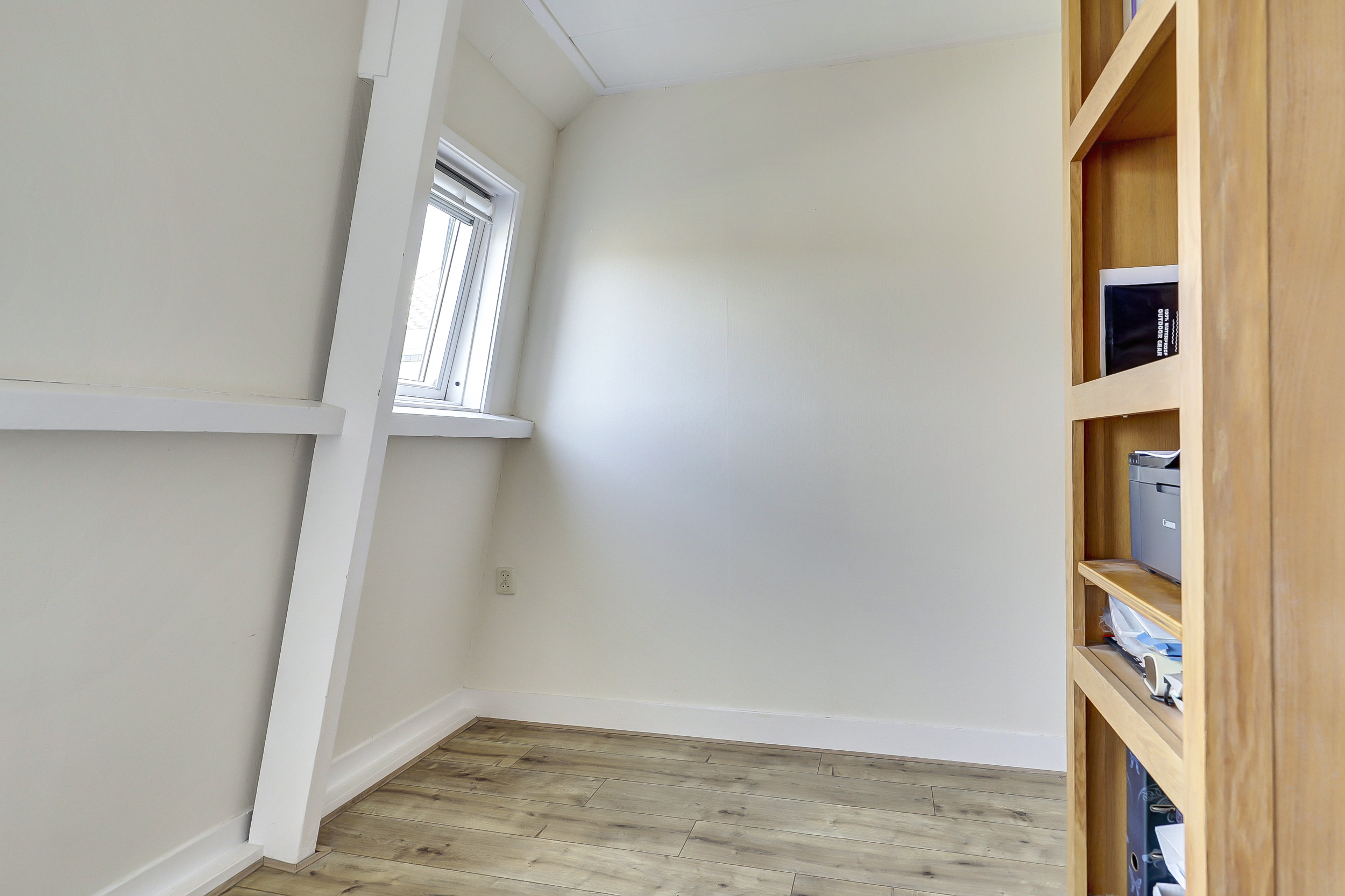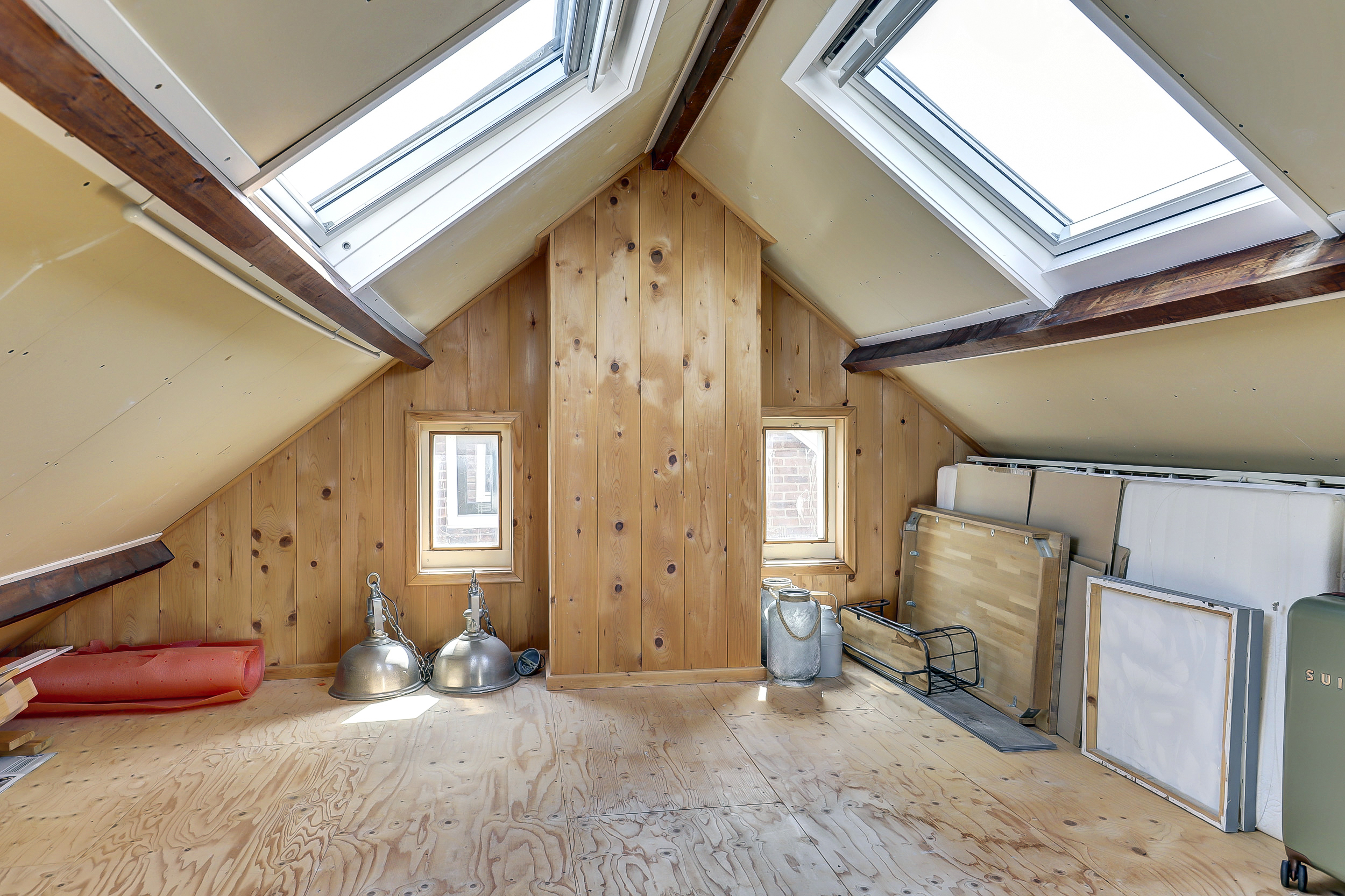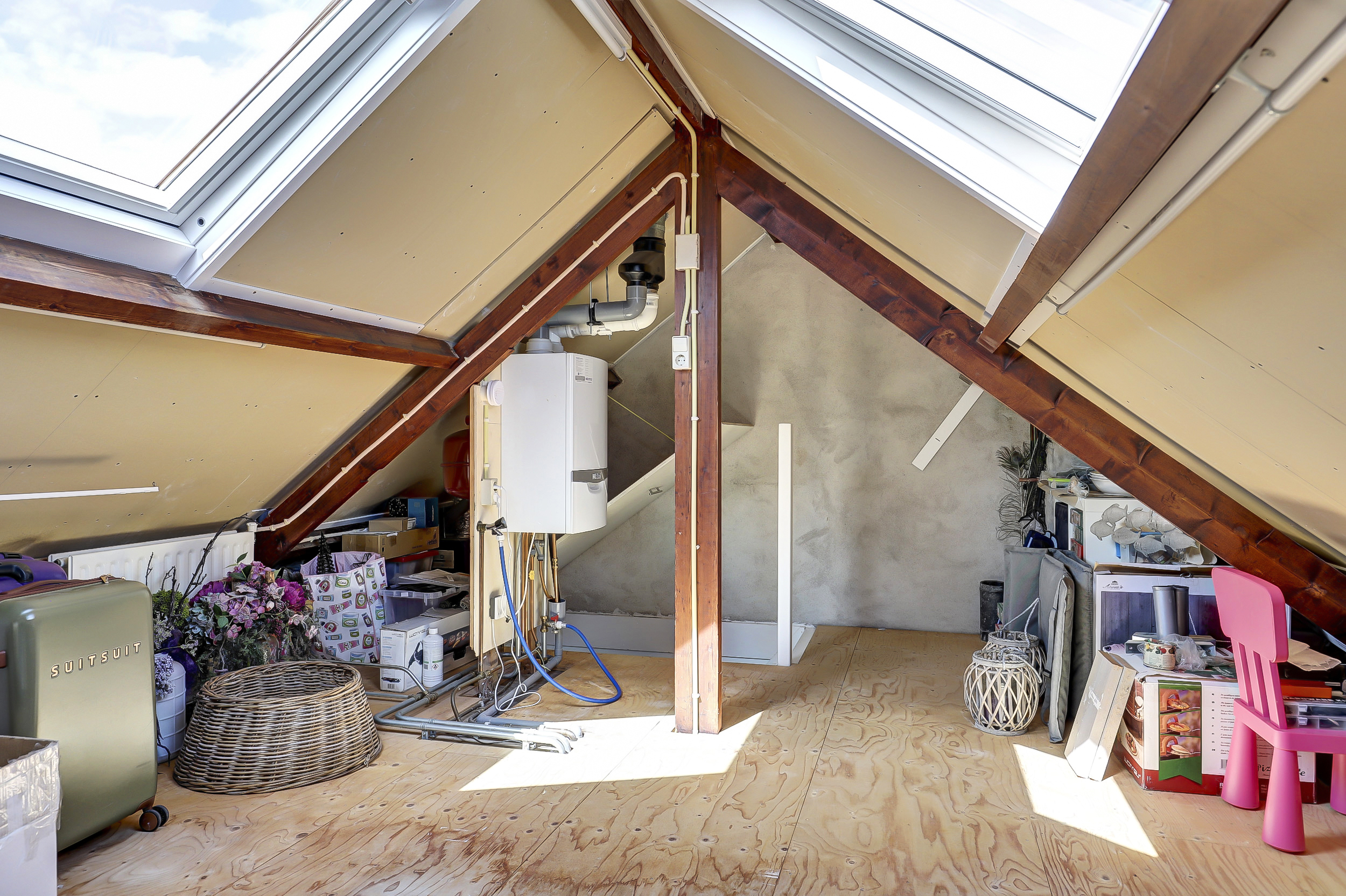 De zolder is bereikbaar via een vaste trap en biedt volop mogelijkheden. Momenteel in gebruik als extra bergruimte, maar eenvoudig te gebruiken als logeerkamer, kantoor of hobbyruimte. Dankzij de dakramen is er ook hier voldoende daglicht aanwezig.