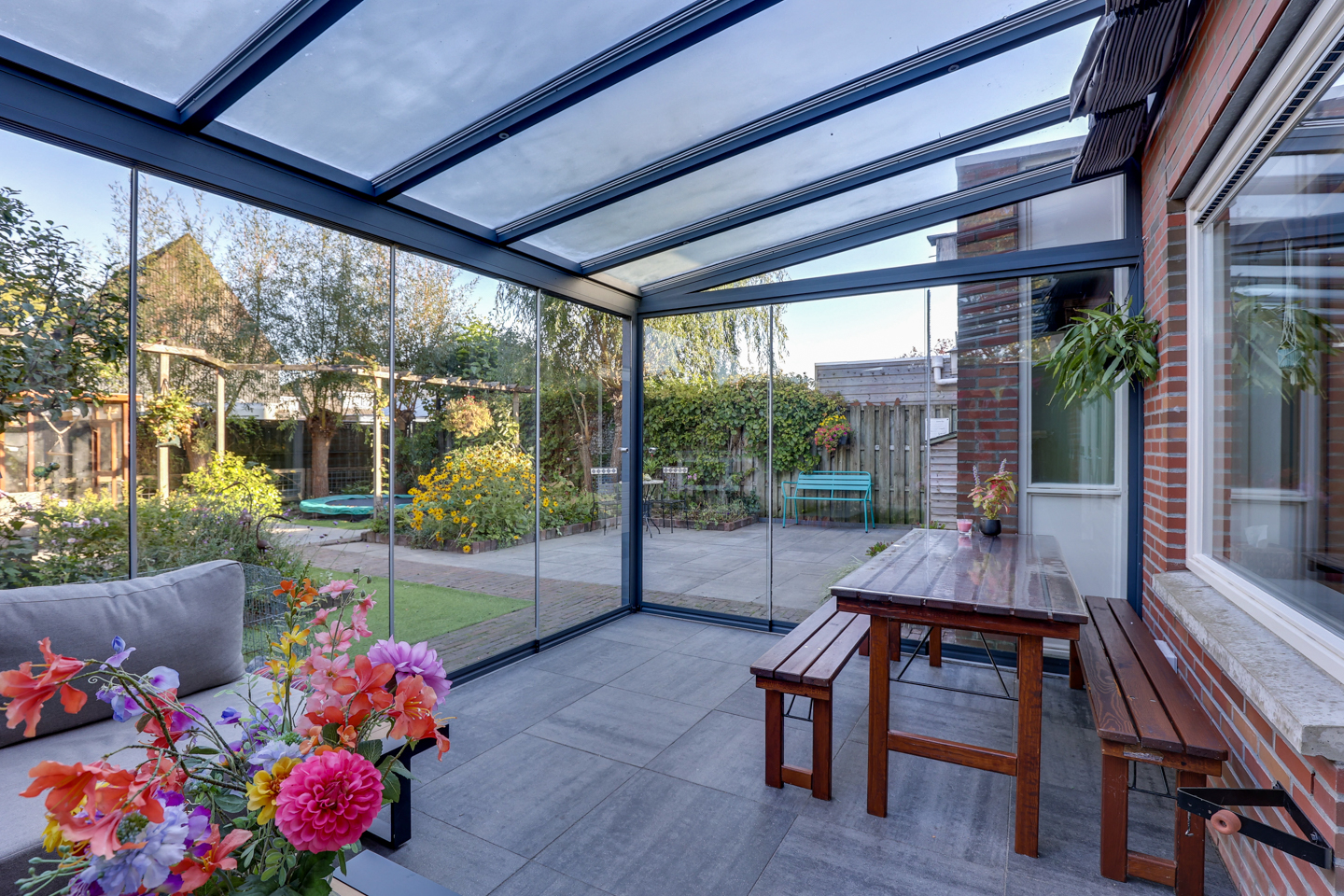 – Tuinkamer met glazen schuifdeuren