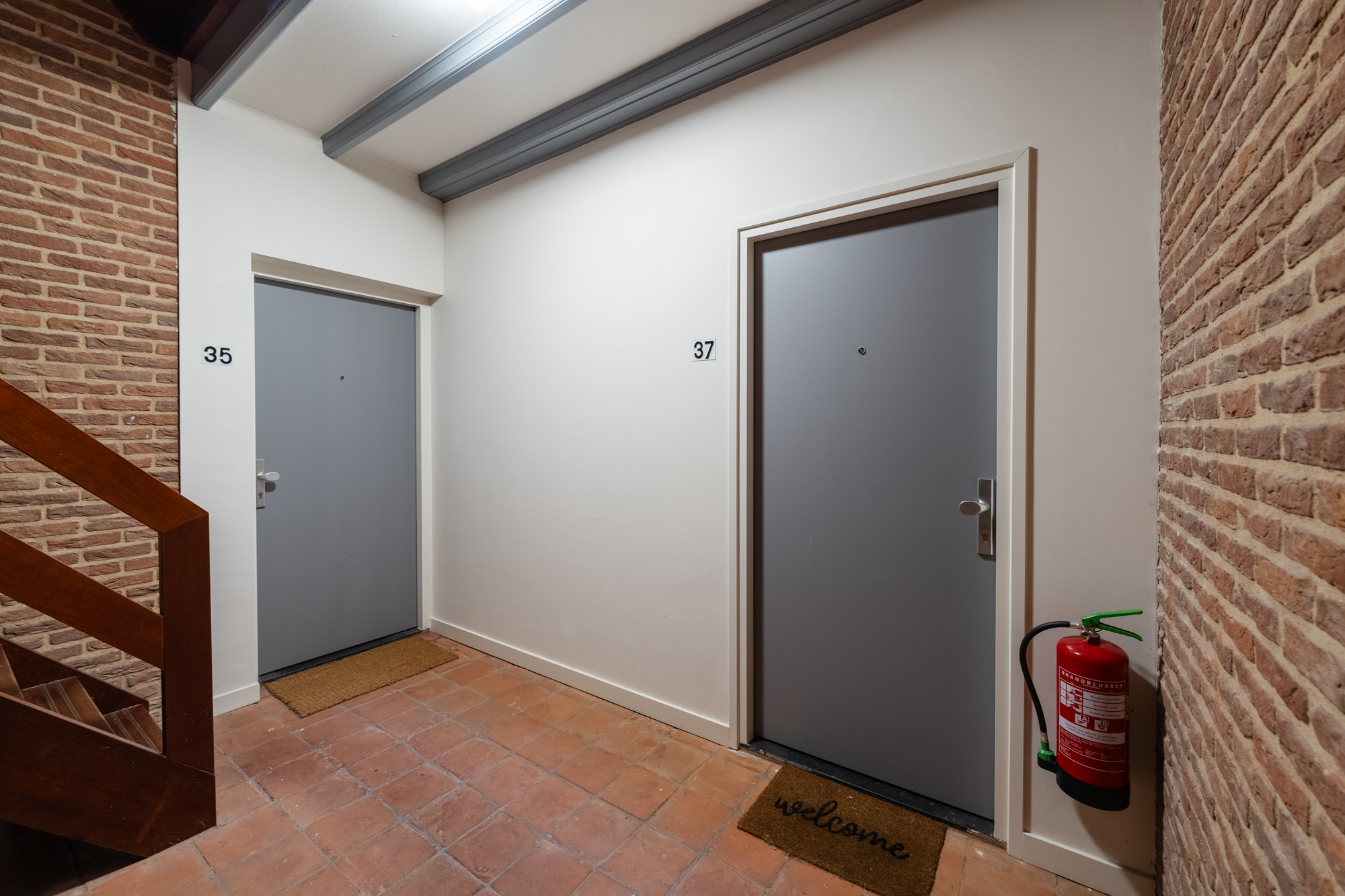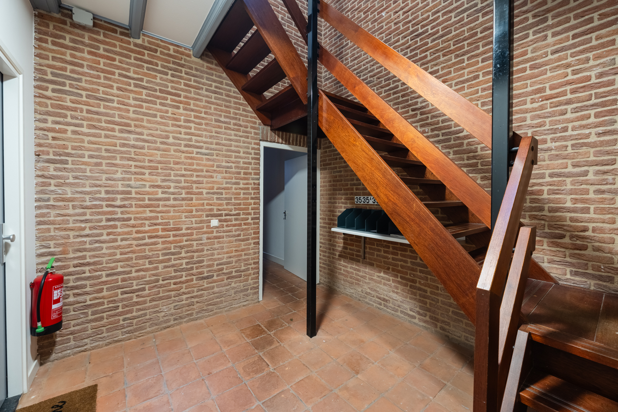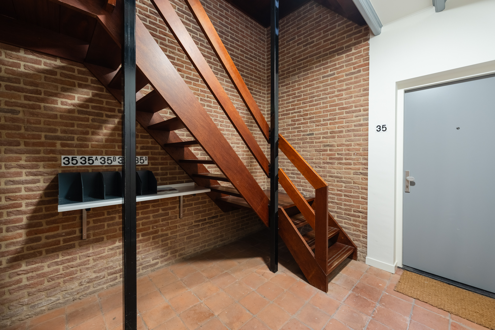Gezamenlijke entree met meterkast en trapopgang naar de boven-appartementen.