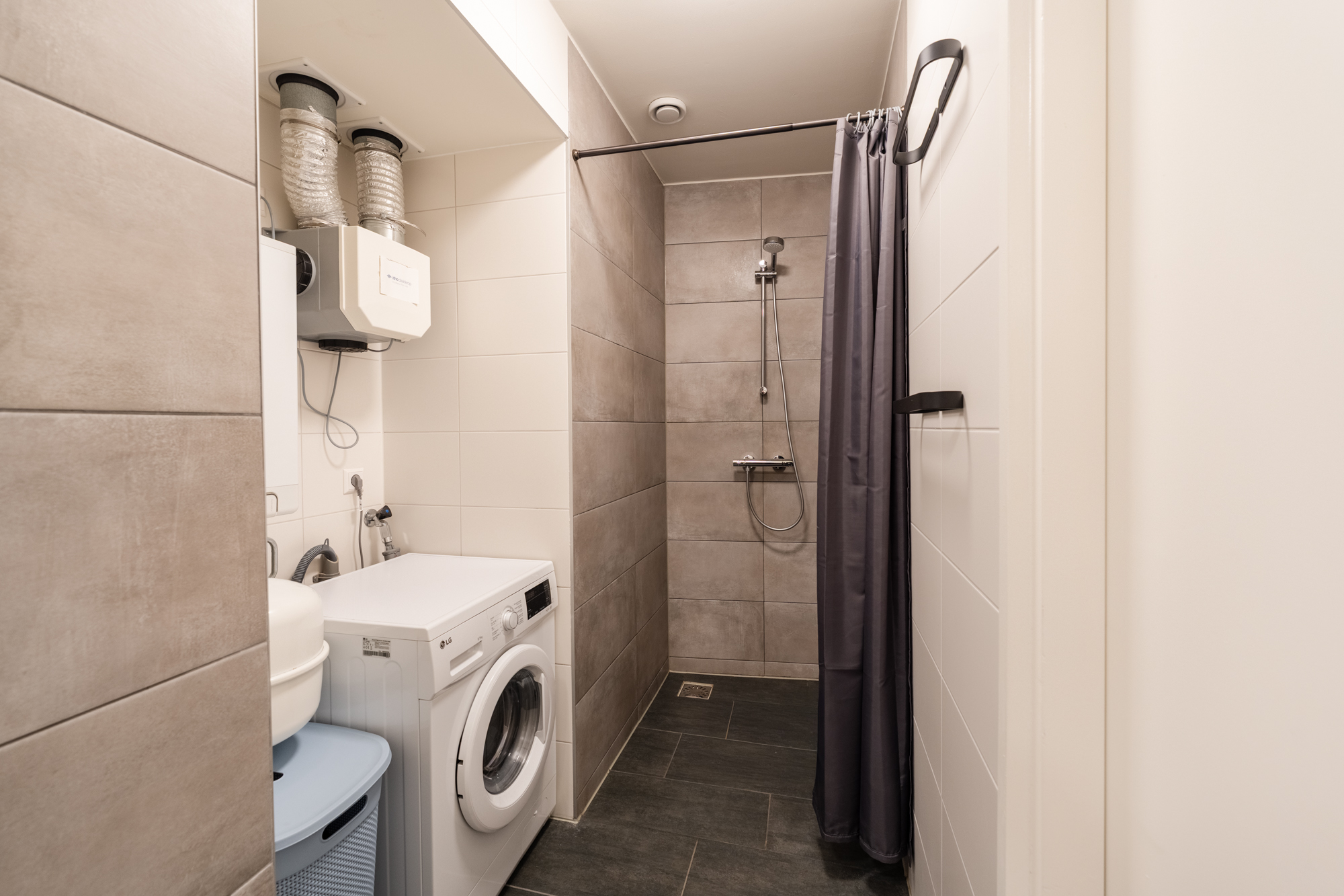 - Badkamervoorzieningen Toilet, Wastafel, Inloopdouche, Wasmachineaansluiting