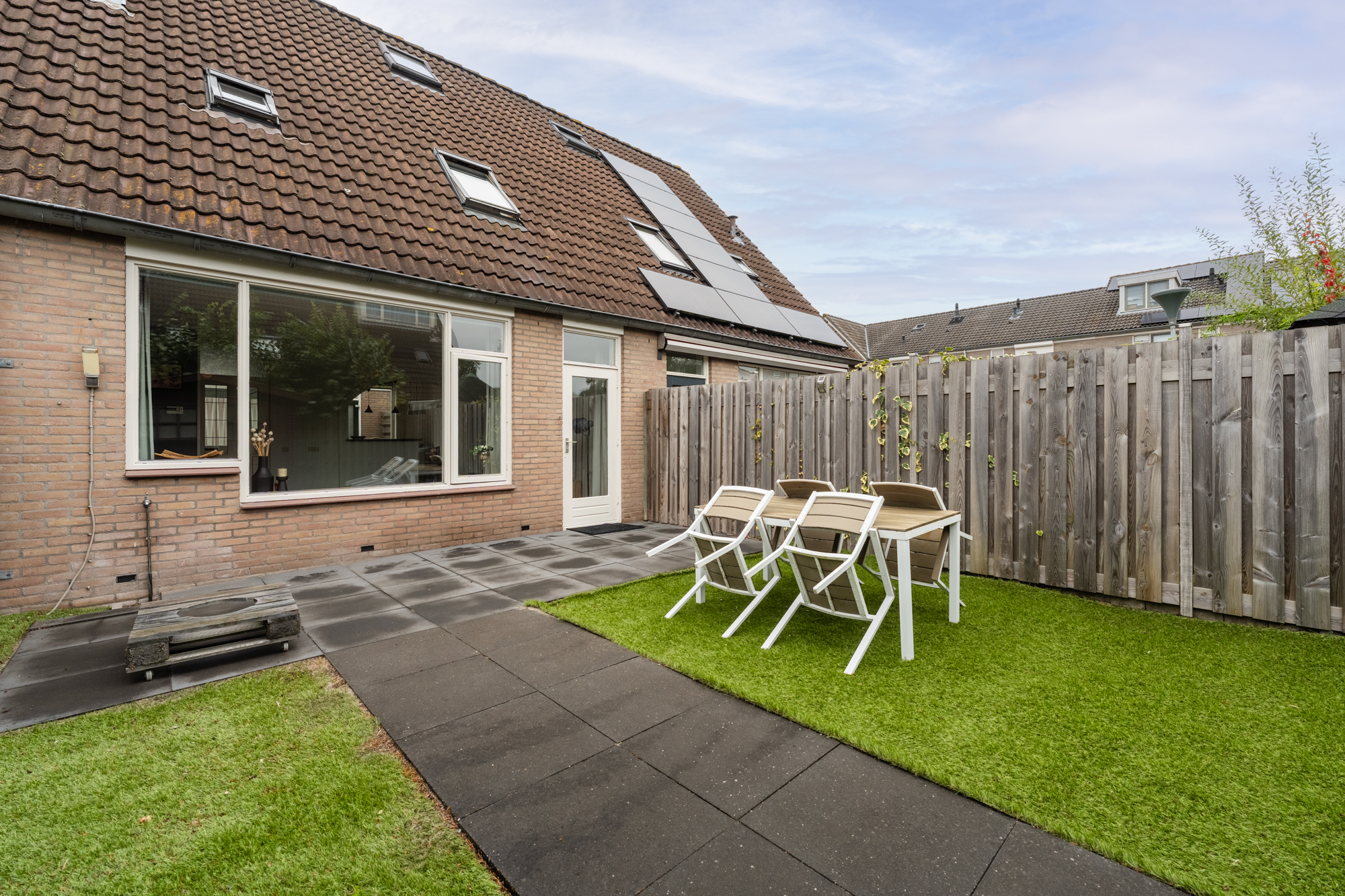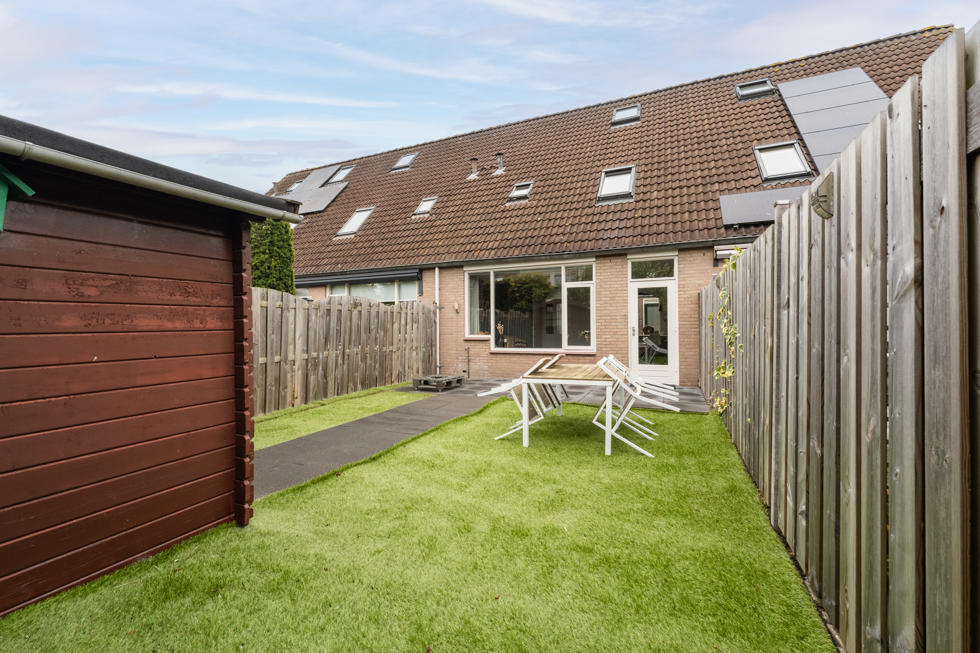 – Zonnige tuin op het zuidoosten met terras en kunstgras
