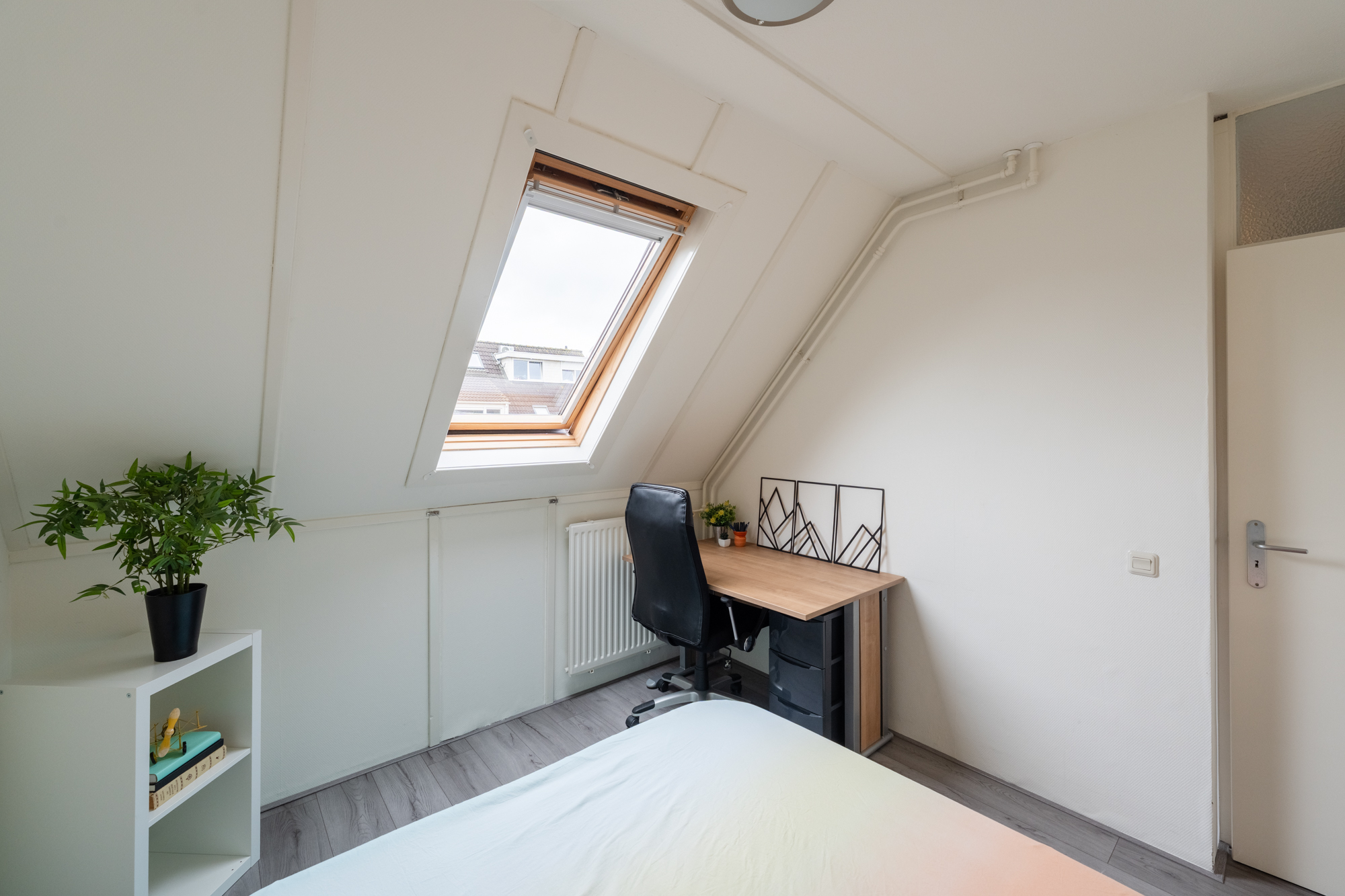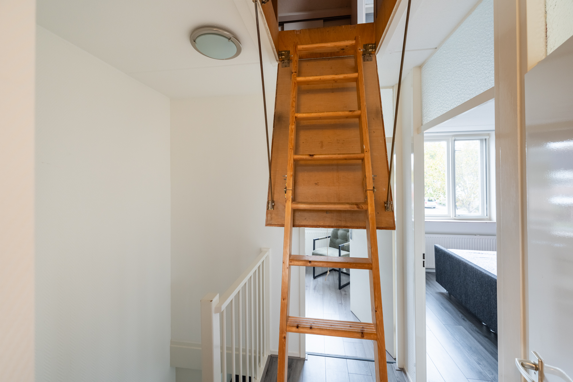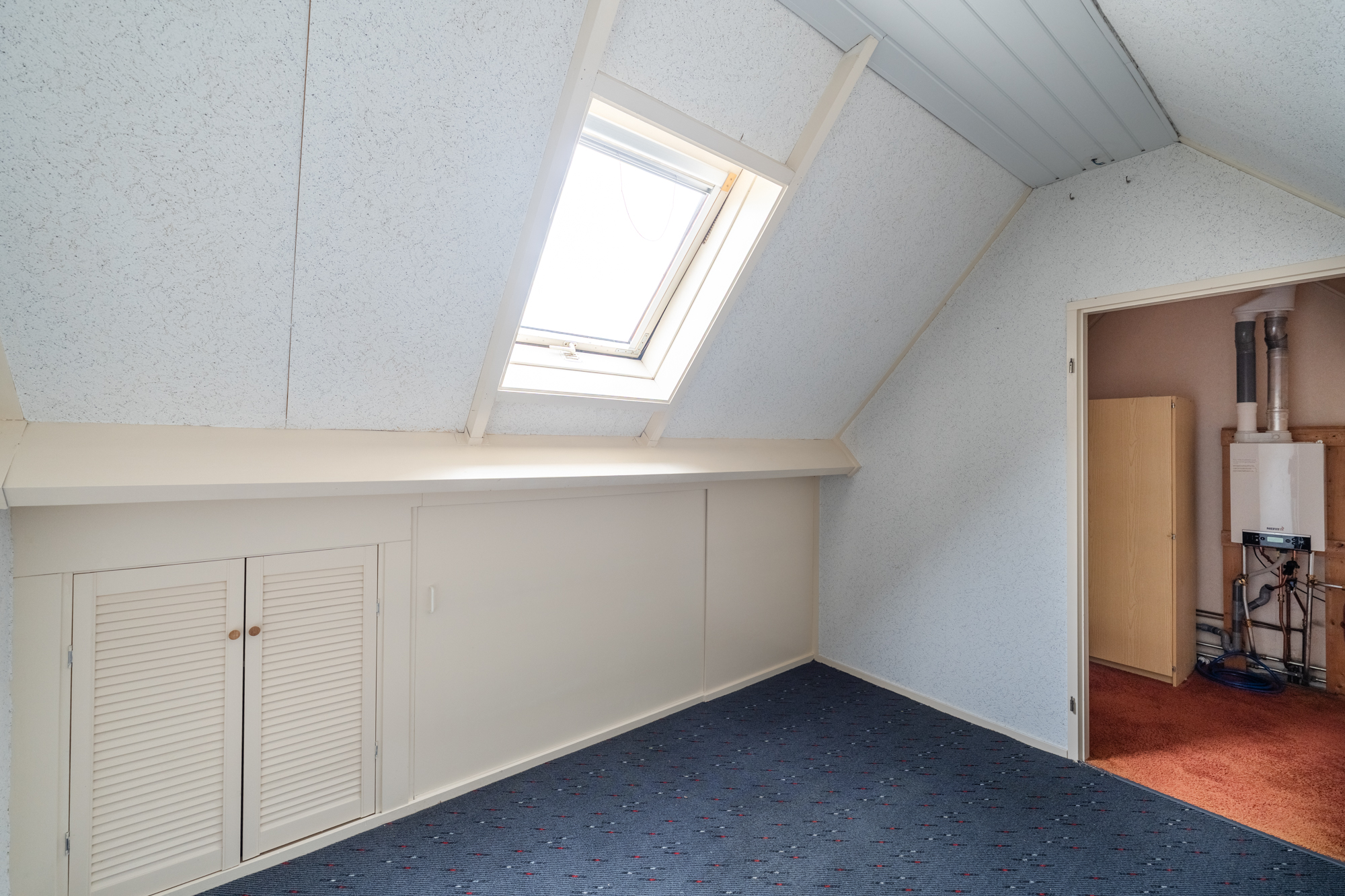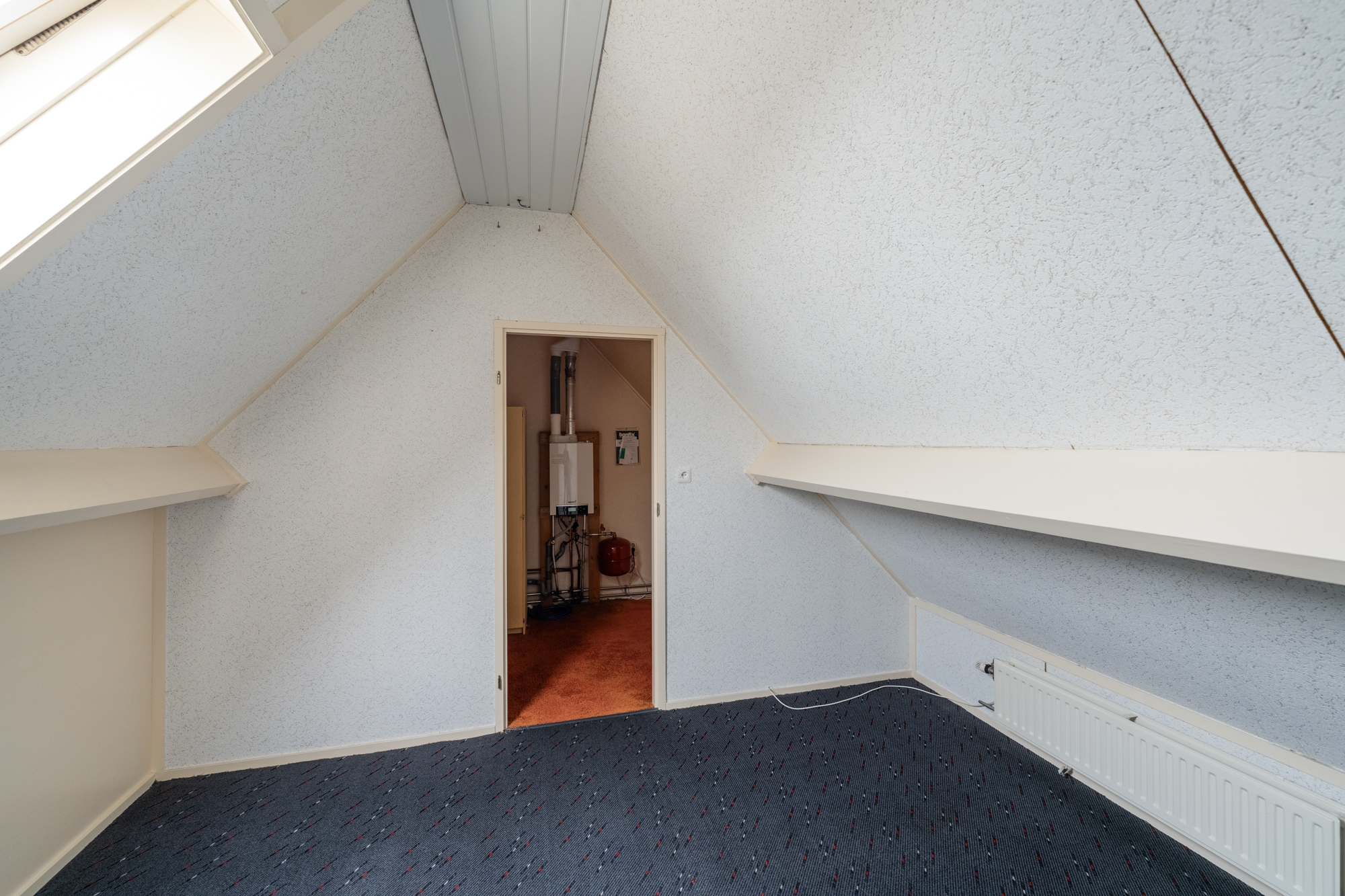 Via een vlizotrap bereik je de zolder met CV-ketel (Nefit 2022) en een dakraam. Met een vaste trap kan hier eenvoudig een vierde slaapkamer worden gecreëerd.