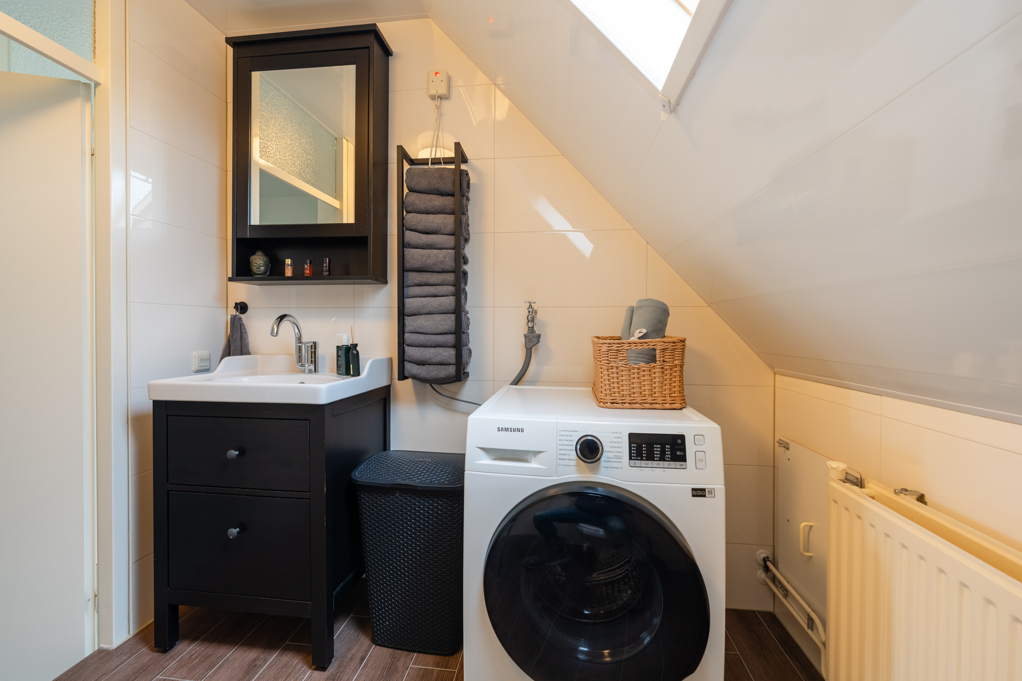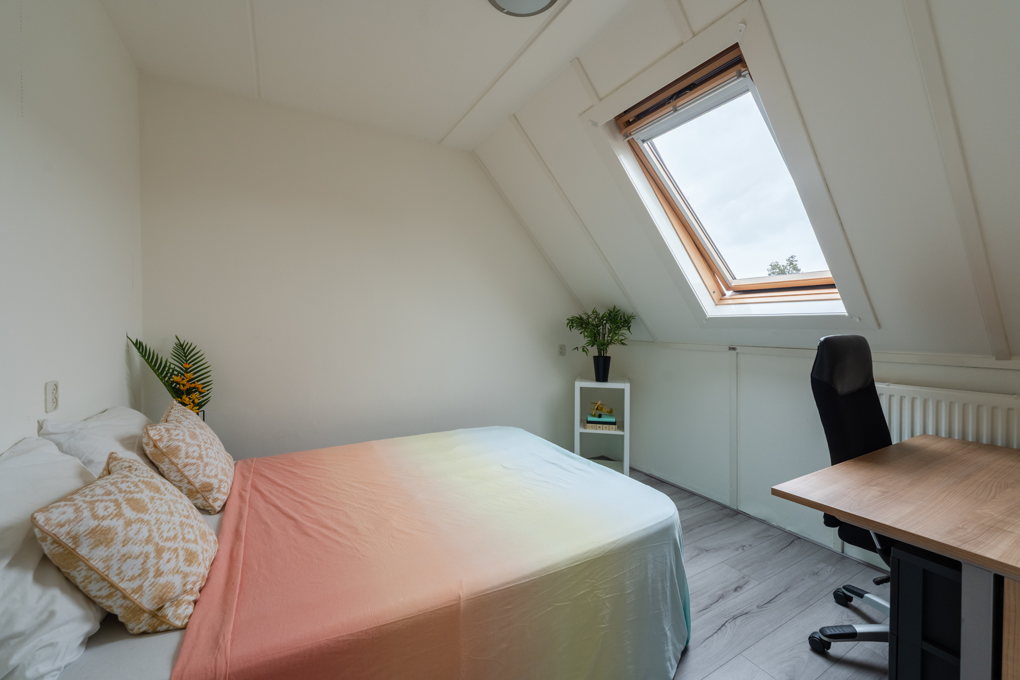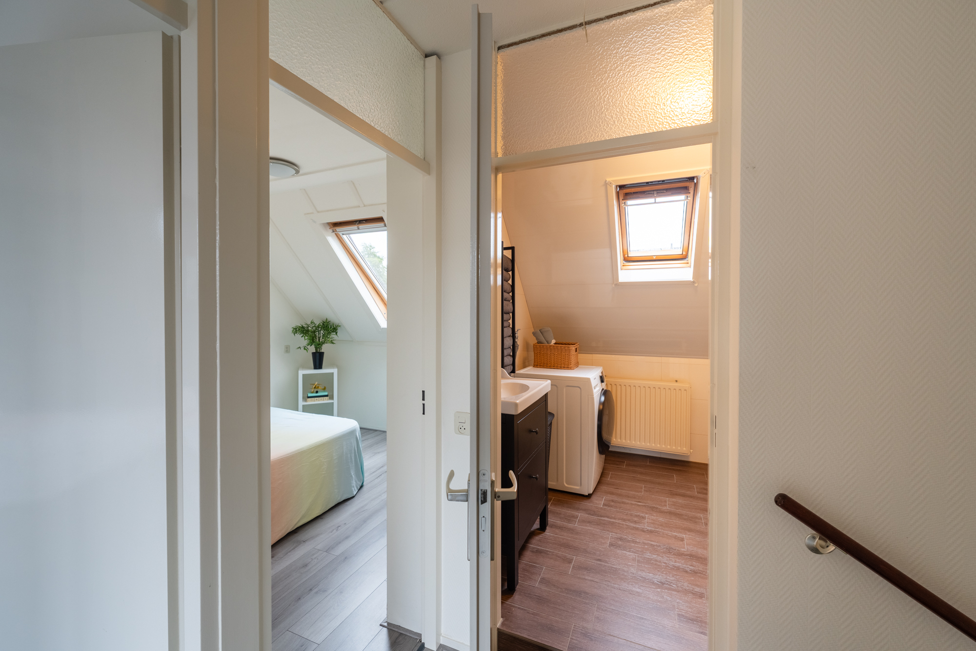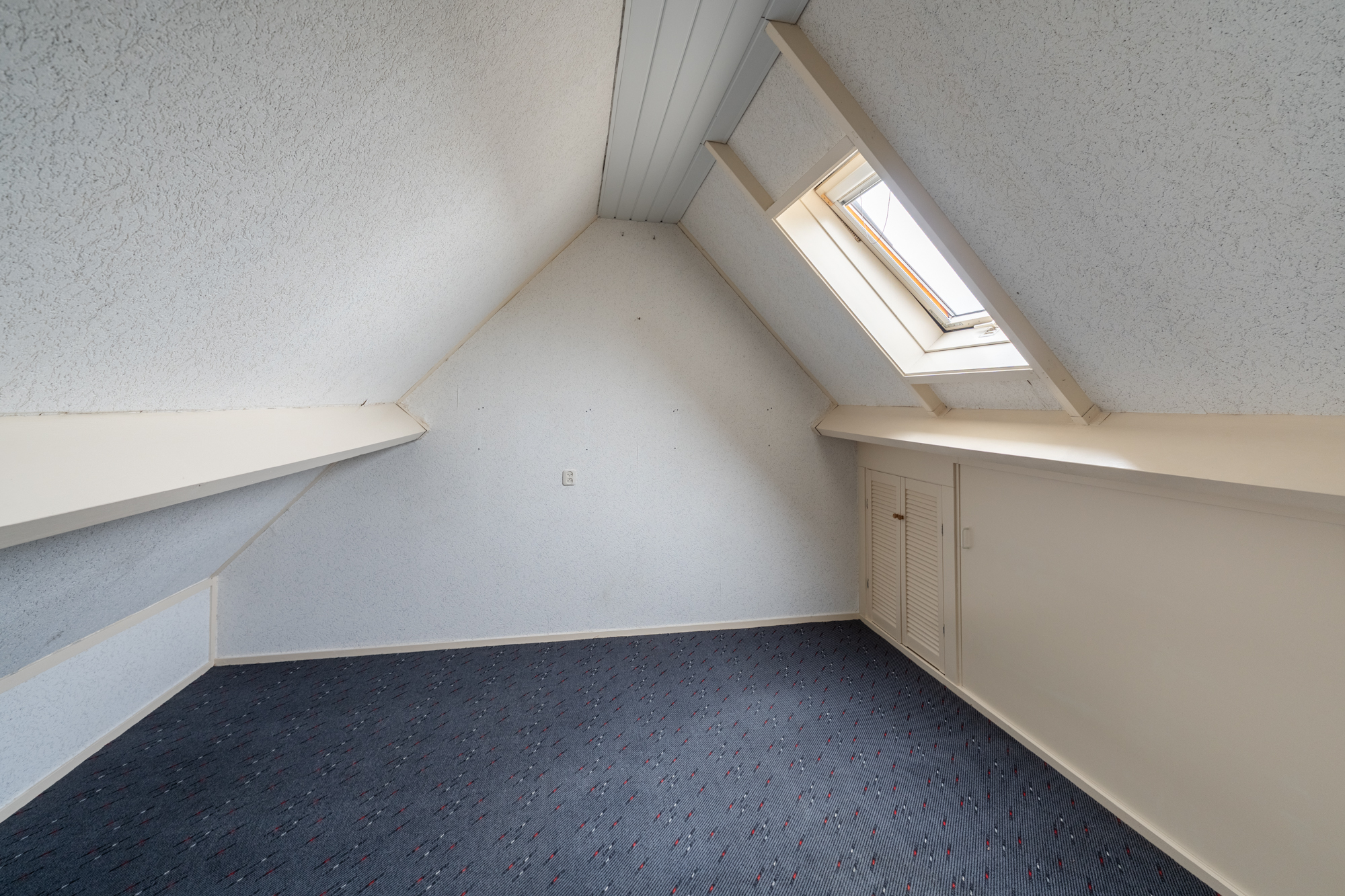 Via een vlizotrap bereik je de zolder met CV-ketel (Nefit 2022) en een dakraam. Met een vaste trap kan hier eenvoudig een vierde slaapkamer worden gecreëerd.