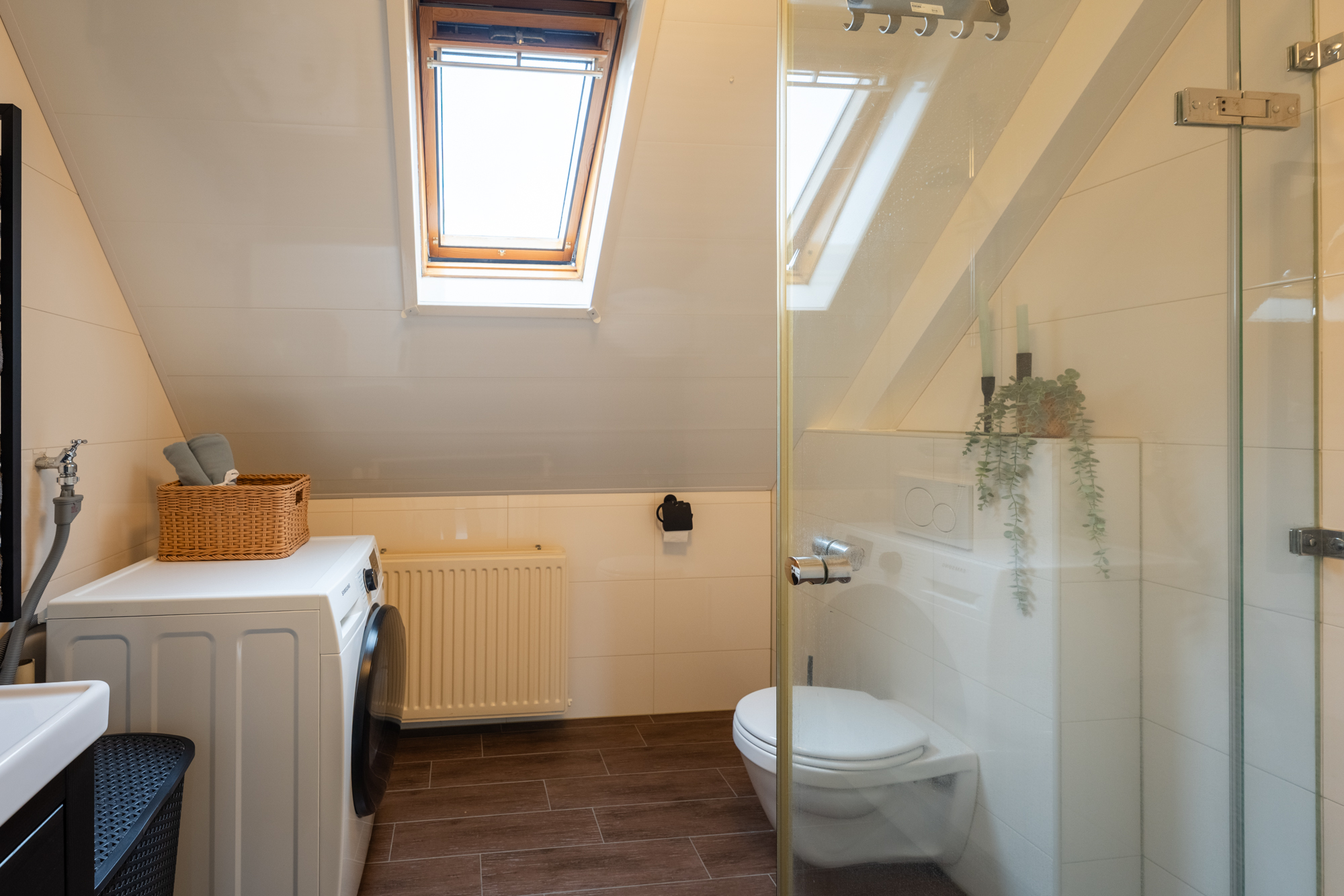 - Badkamervoorzieningen Toilet, Wastafelmeubel, Inloopdouche, Wasmachineaansluiting