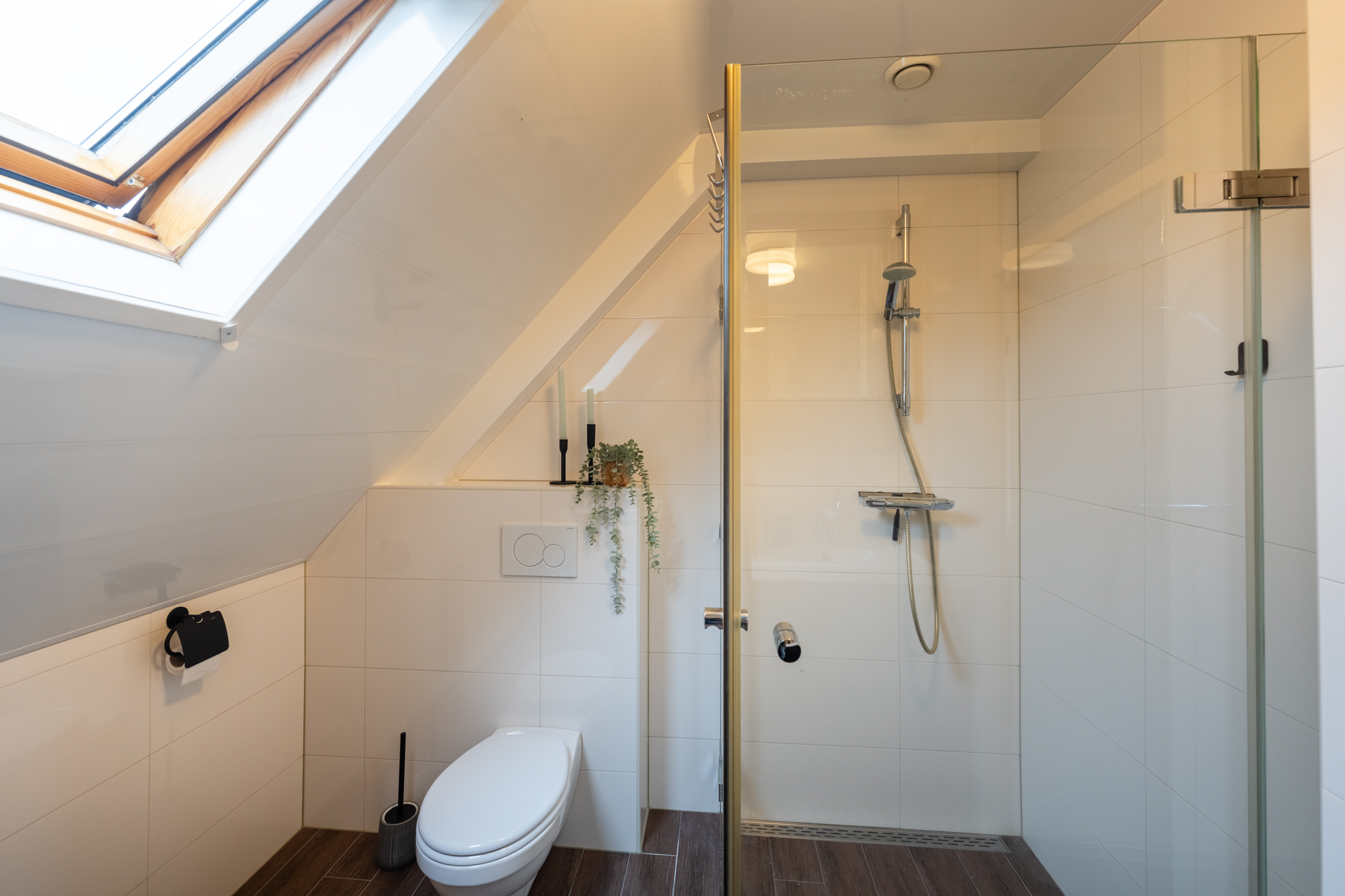 – Badkamer met inloopdouche, toilet en wastafelmeubel