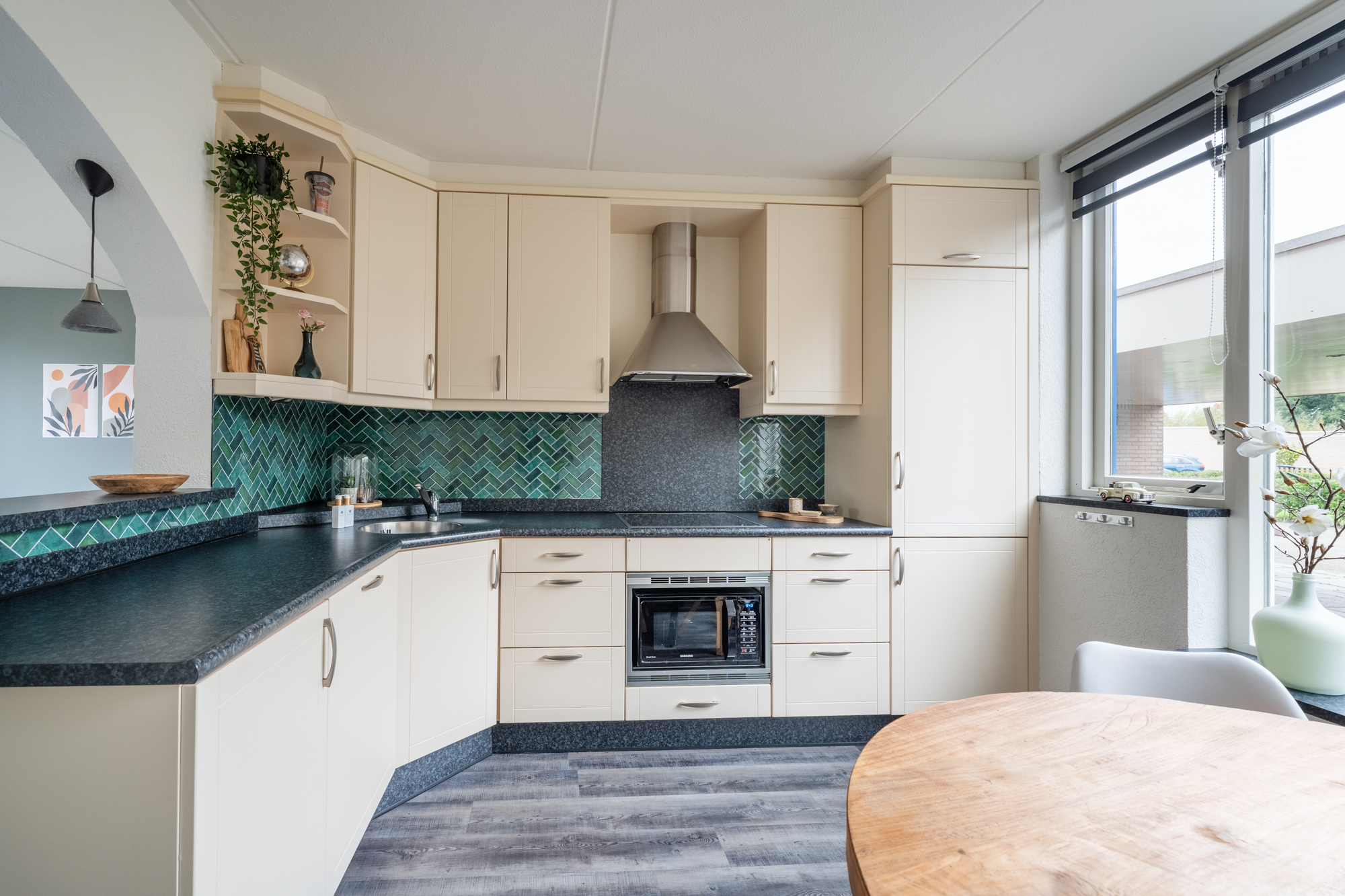 – Moderne halfopen keuken met complete inbouwapparatuur