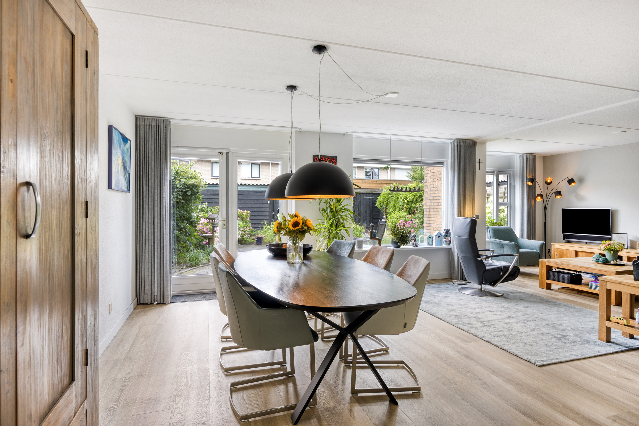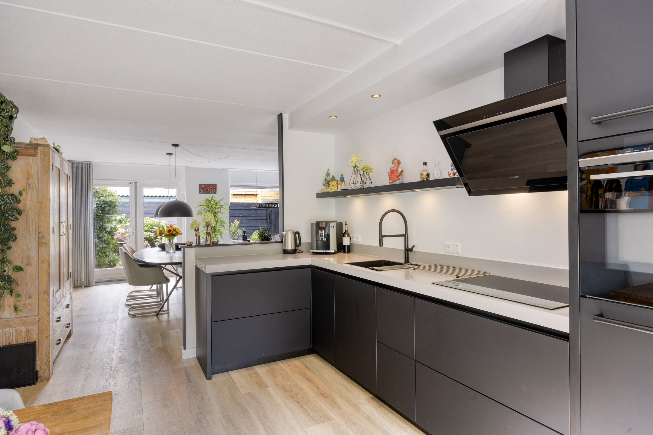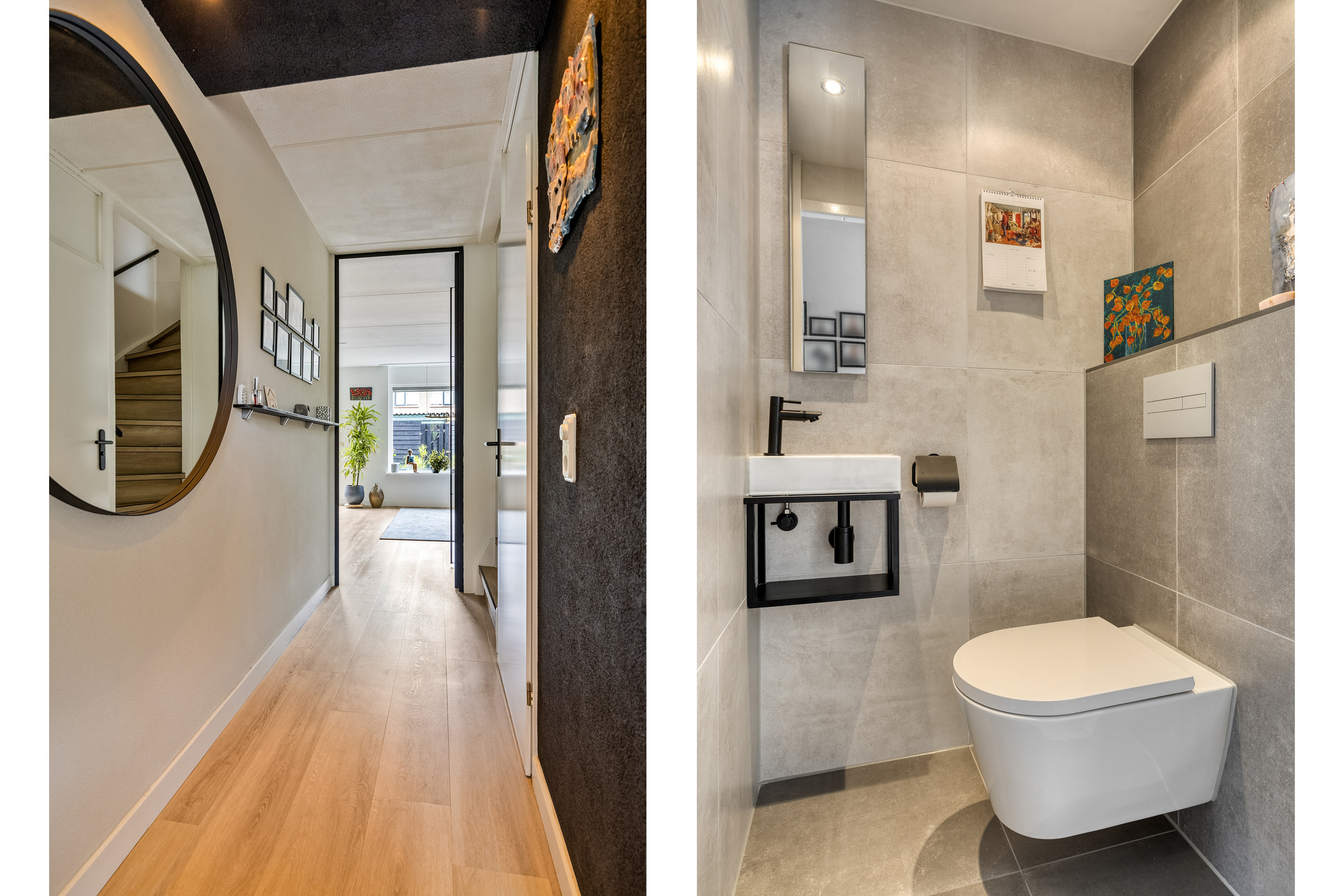 Bij binnenkomst valt de verzorgde afwerking direct op. De hal is voorzien van meterkast, separaat toilet (2022), trapopgang en toegang tot de inpandige garage. De tuingerichte woonkamer is licht en ruim, beschikt over vloerverwarming met nieuwe pvc-vloer en openslaande deuren naar de achtertuin. Aan de voorzijde bevindt zich de moderne open keuken (2022), compleet uitgerust met inbouwapparatuur: vaatwasser, koel-vriescombinatie, combi-oven/magnetron, afzuigkap en inductie kookplaat.