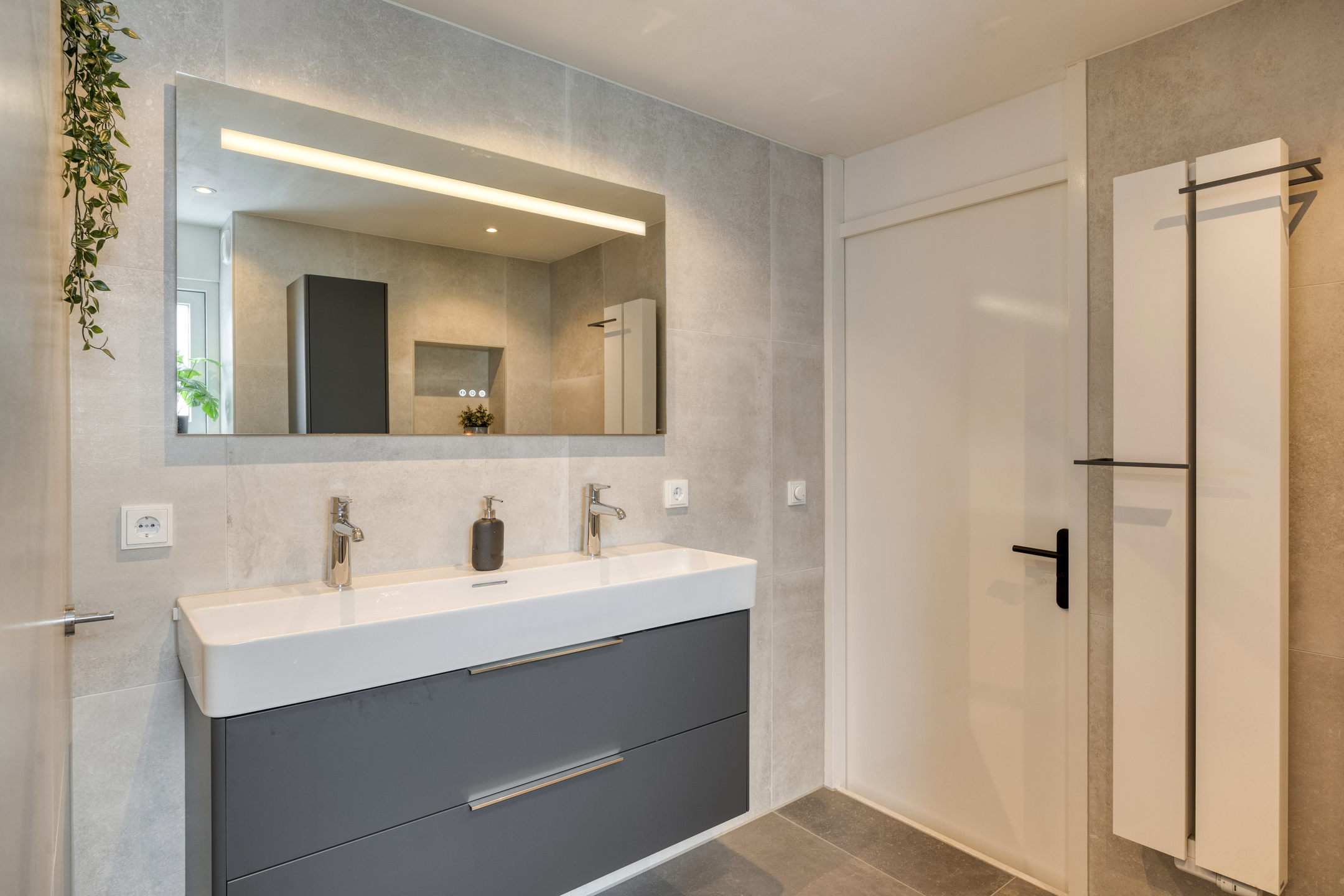 De overloop biedt toegang tot twee ruime slaapkamers en dat kunnen er met gemak ook weer 3 worden, want de slaapkamer aan de achterzijde is eenvoudig terug te brengen naar 2 slaapkamers. De moderne badkamer (2022) is stijlvol afgewerkt en voorzien van een inloopdouche, tweede toilet en wastafelmeubel.