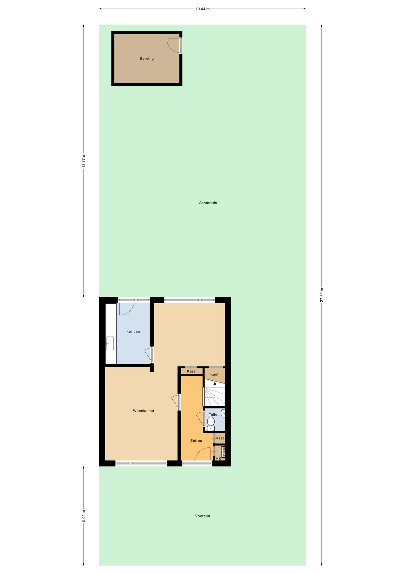 • Achtertuin 144 m2 (13.77 meter diep en 10.44 meter breed)