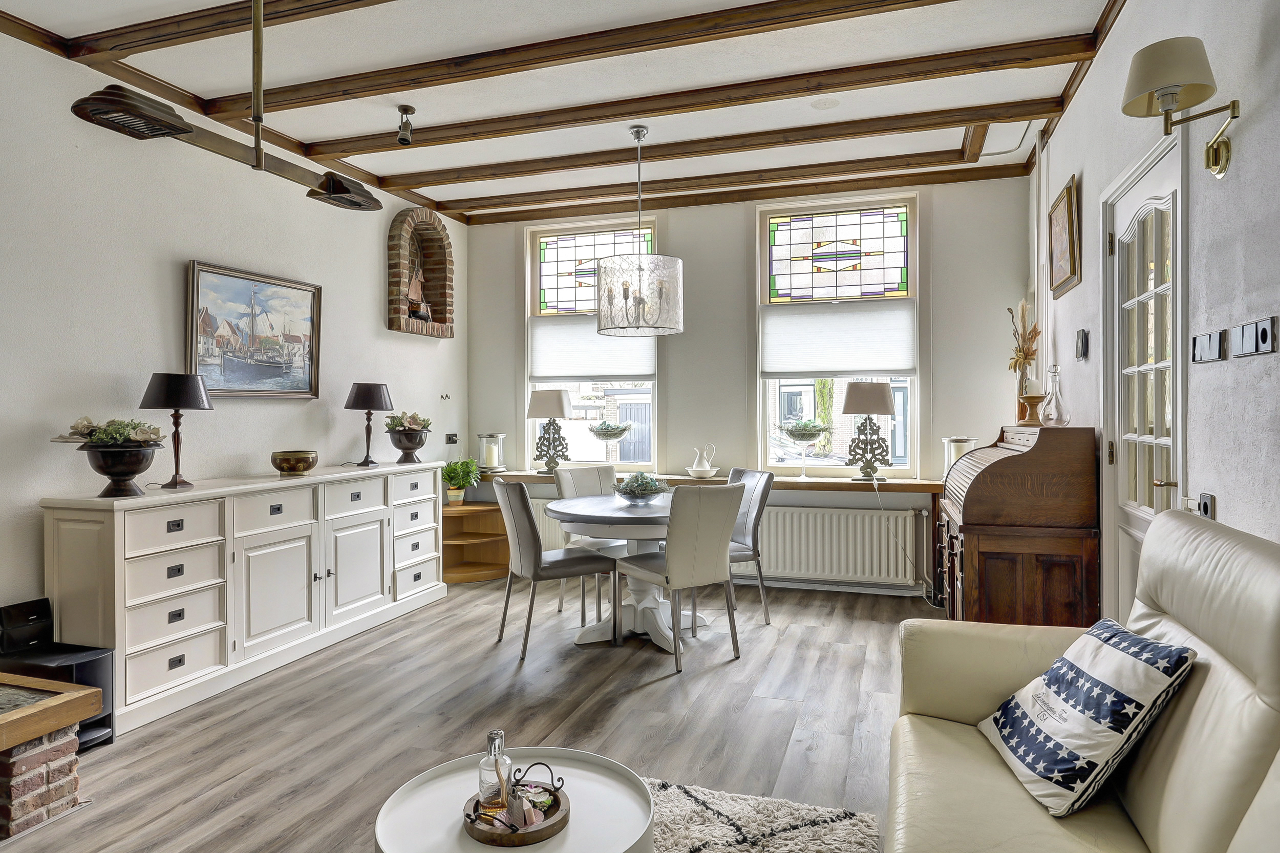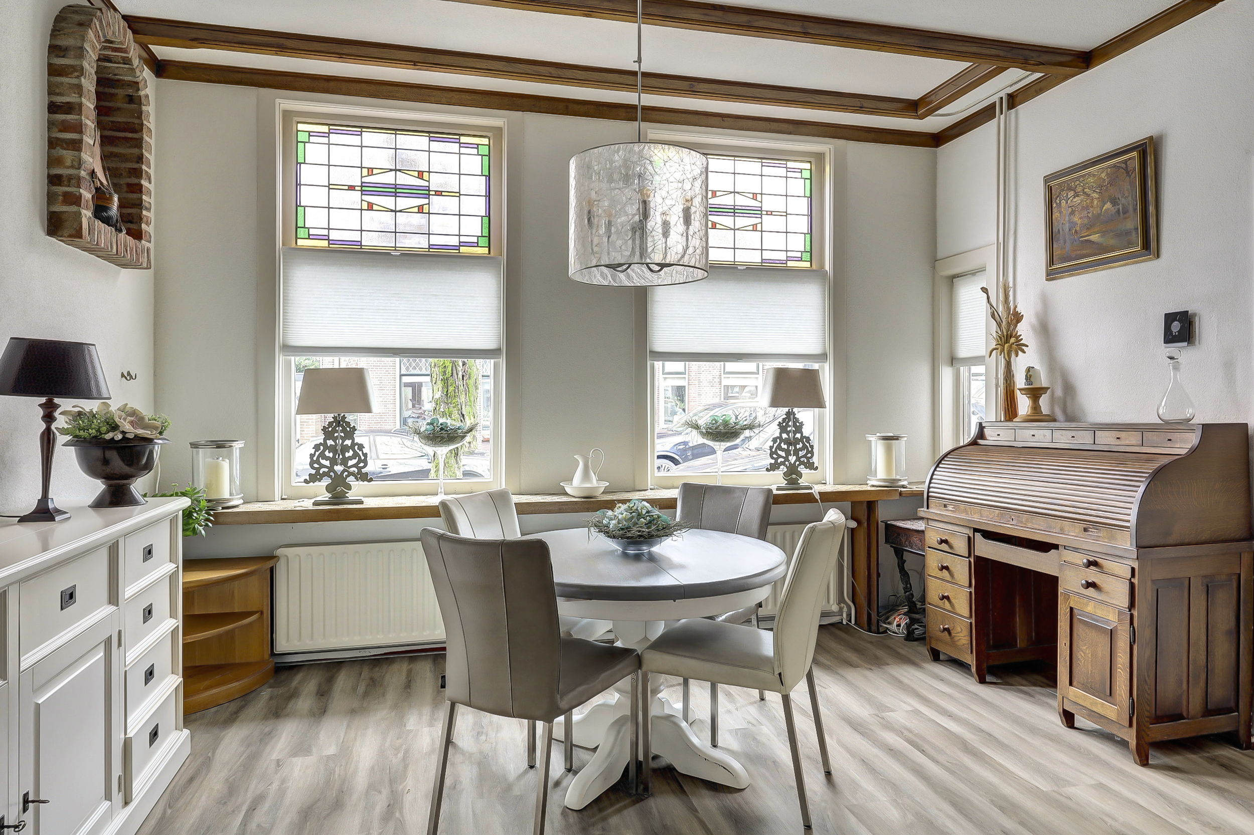 Authentieke details zoals glas-in-loodramen en een charmante gevel worden hier gecombineerd met hedendaags wooncomfort. Een ideale woning voor extra ruimte voor gezin, hobby of werken aan huis.