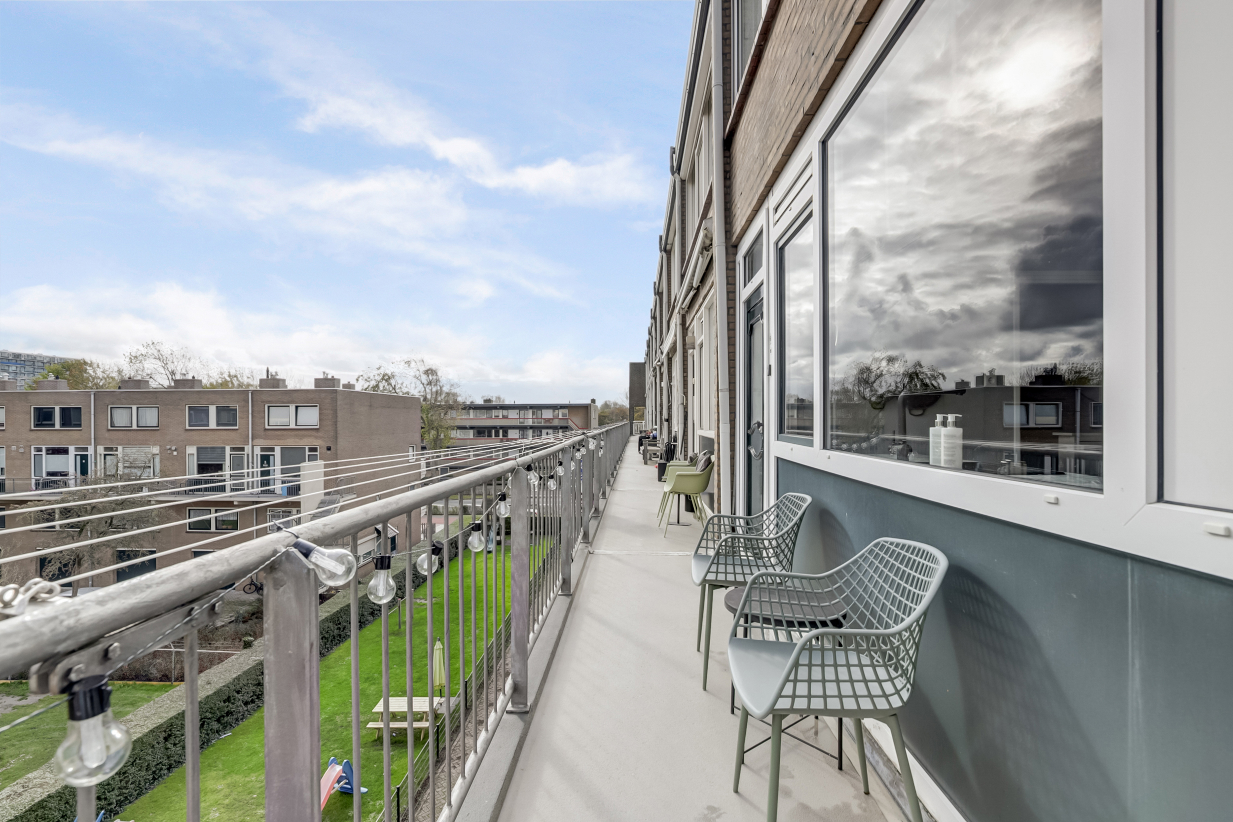 Aan de woonkamer grenst het balkon, dat voldoende ruimte biedt voor een zithoek of kleine eettafel. Dankzij de gunstige ligging geniet u hier van veel zonlicht en privacy. Het balkon is voorzien van een nette vloerafwerking en vormt een heerlijke plek om buiten te ontspannen.