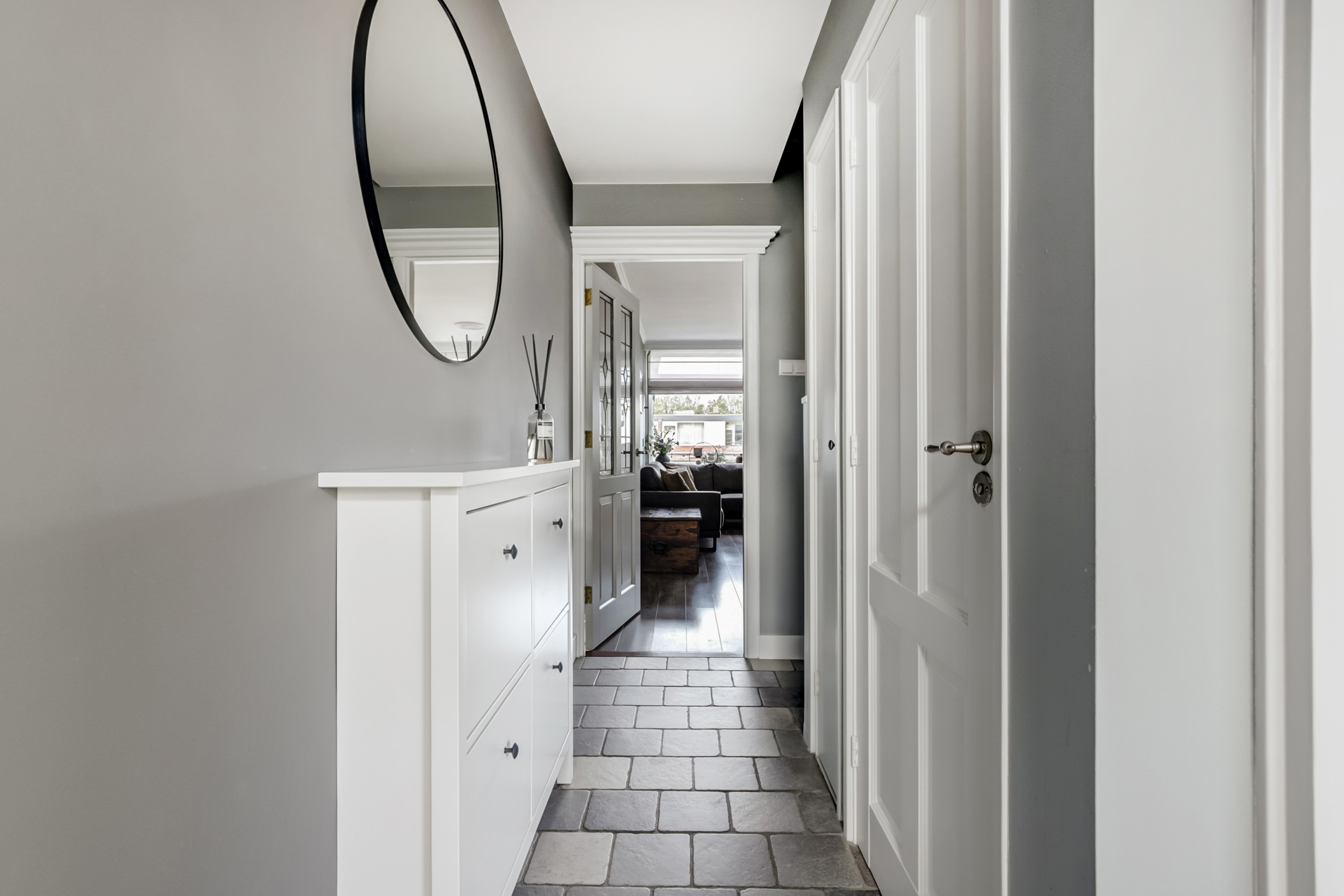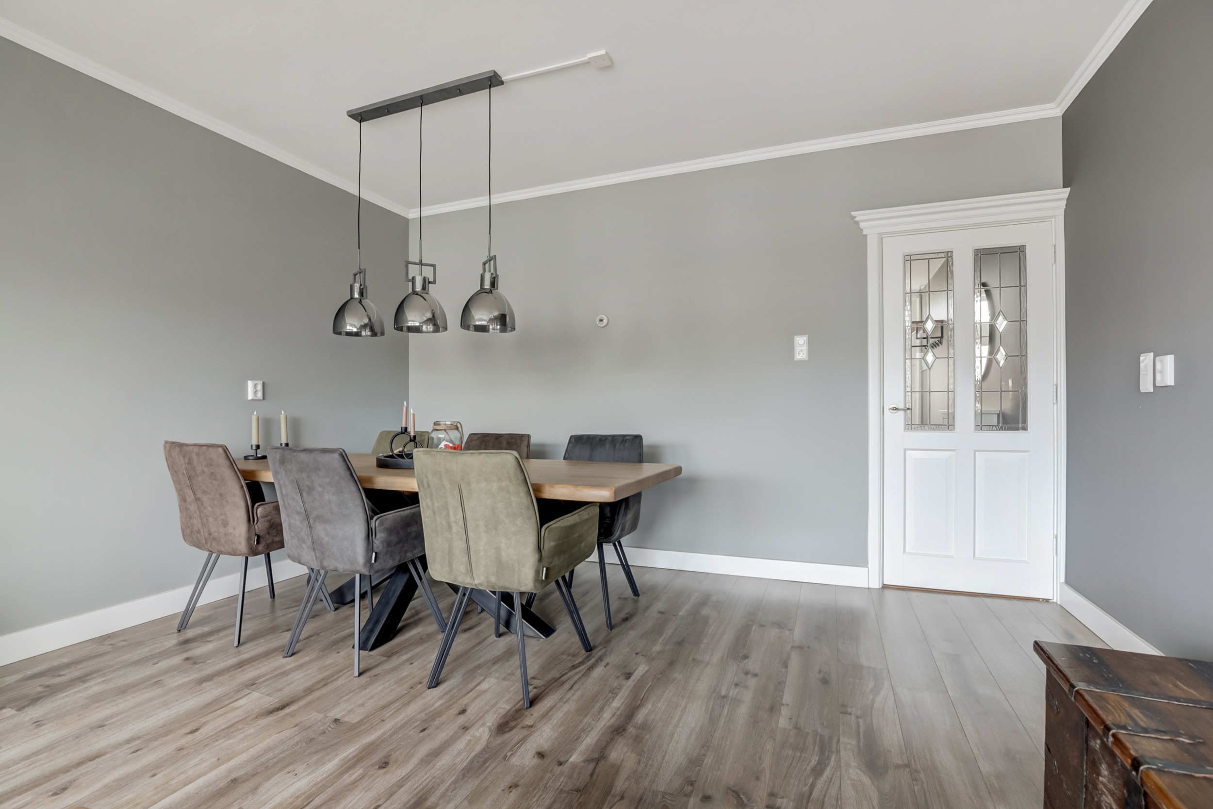 • Doorlopende lichte laminaatvloer en strak gestuukte wanden