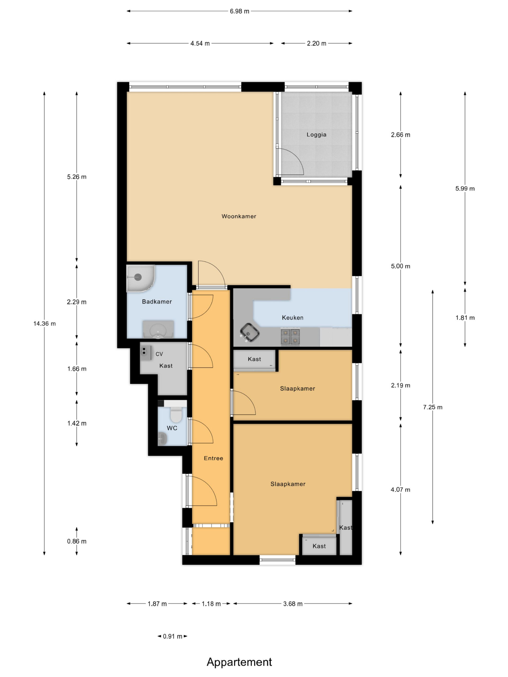 - Totaal kamers 3 kamers (2 slaapkamers)