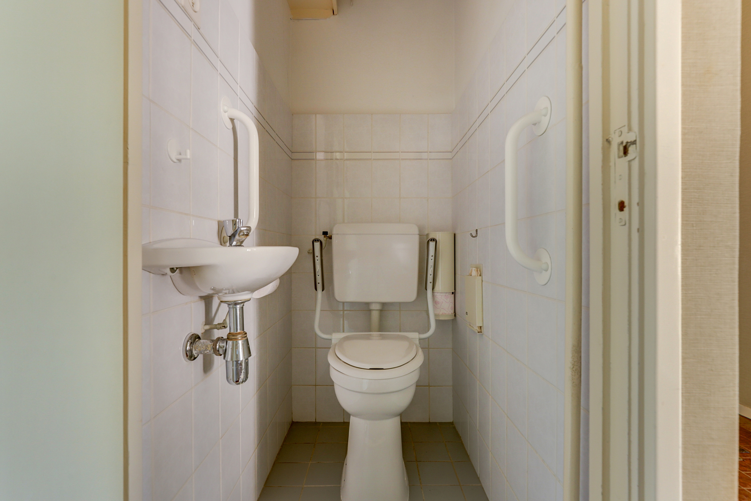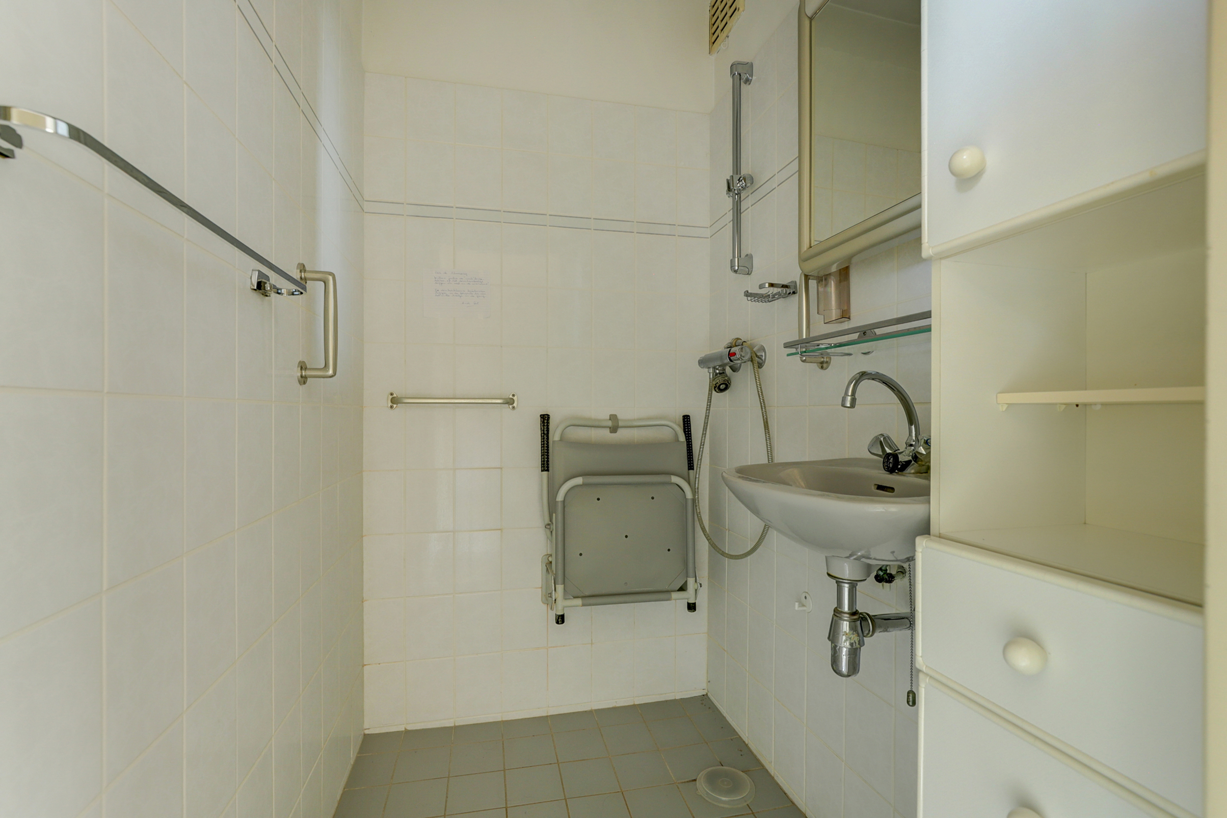 • Badkamer met praktische voorzieningen (opklapstoel en beugels) en separaat toilet.