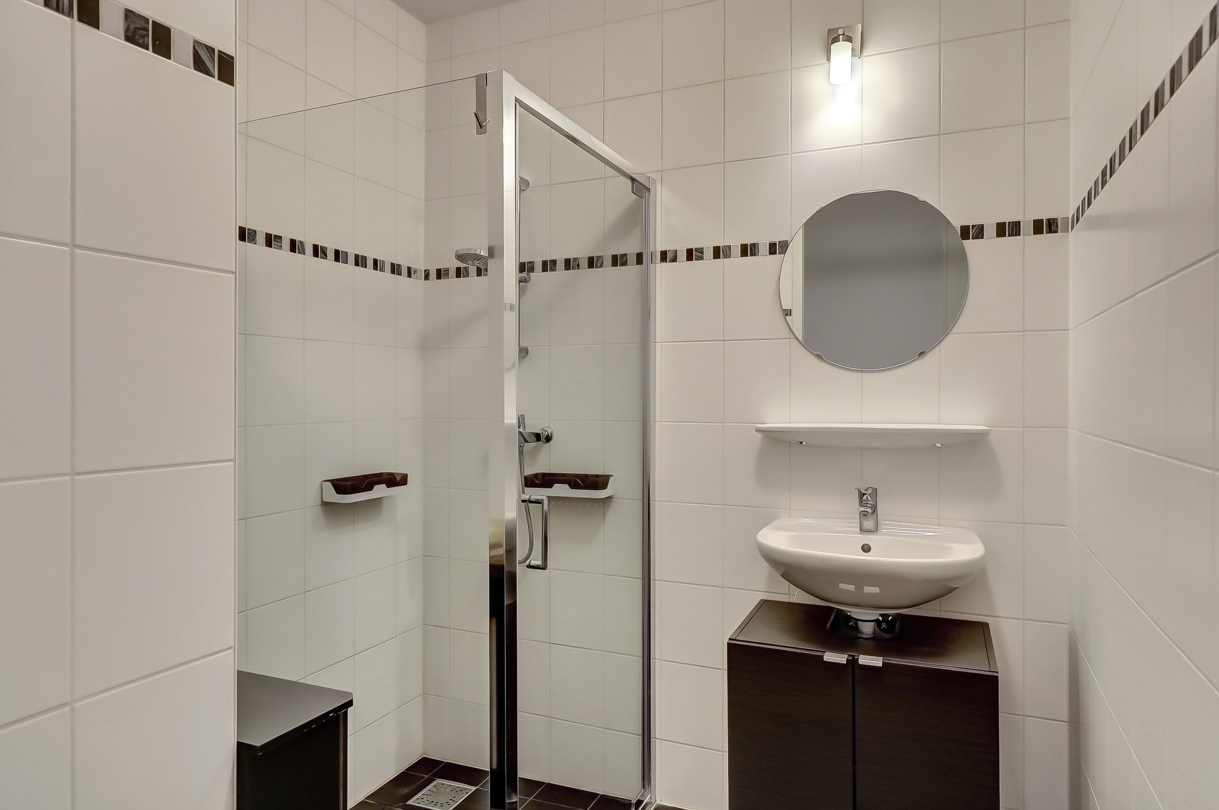 De badkamer is netjes en verzorgd uitgevoerd in lichte tinten en voorzien van een douche en wastafelmeubel. Daarnaast is er een separate toiletruimte, wat extra comfort biedt. In de woning is ook een praktische inpandige ruimte aanwezig voor de cv-installatie en extra bergruimte.