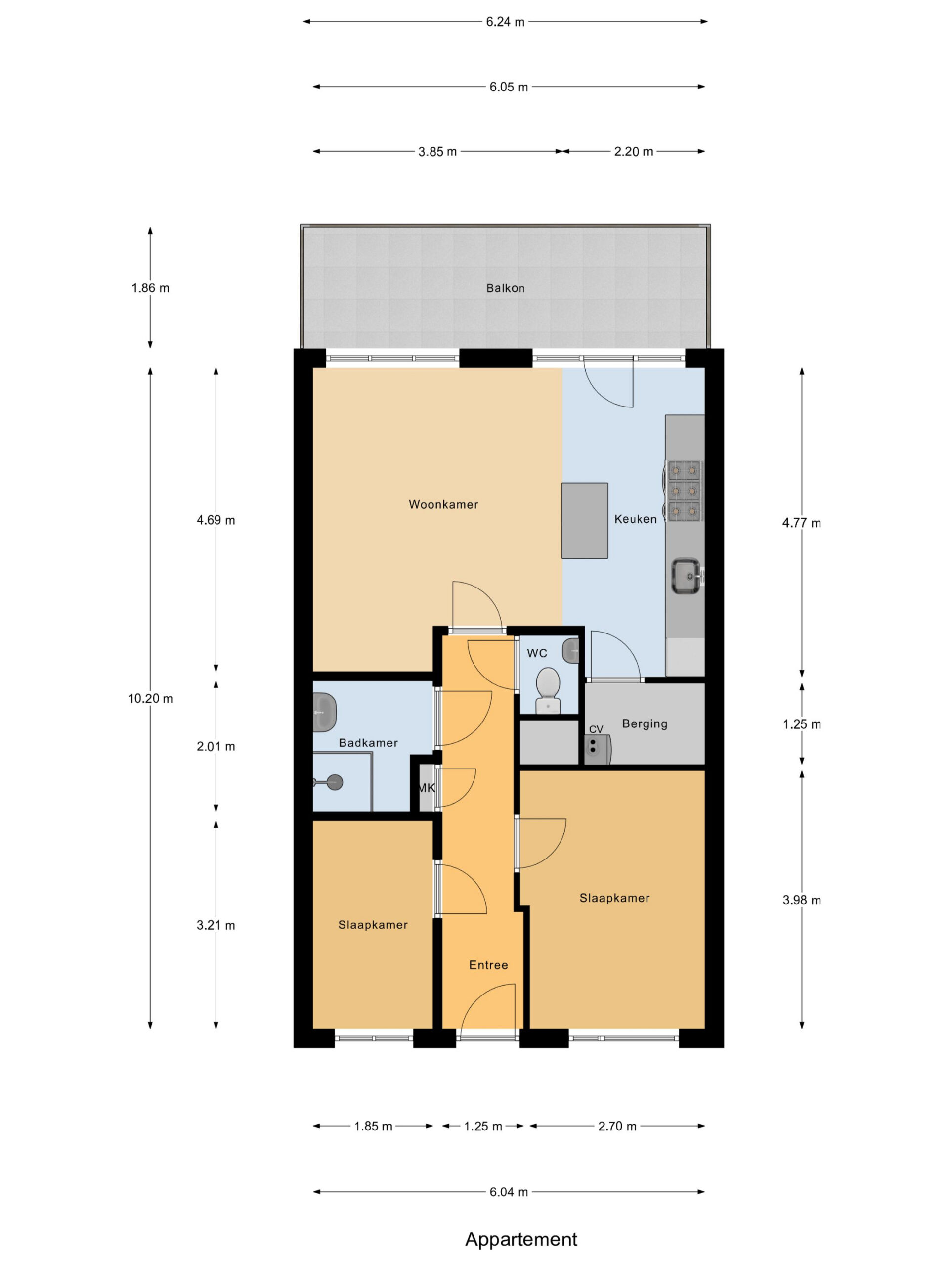 - Totaal kamers 3 kamers (2 slaapkamers)