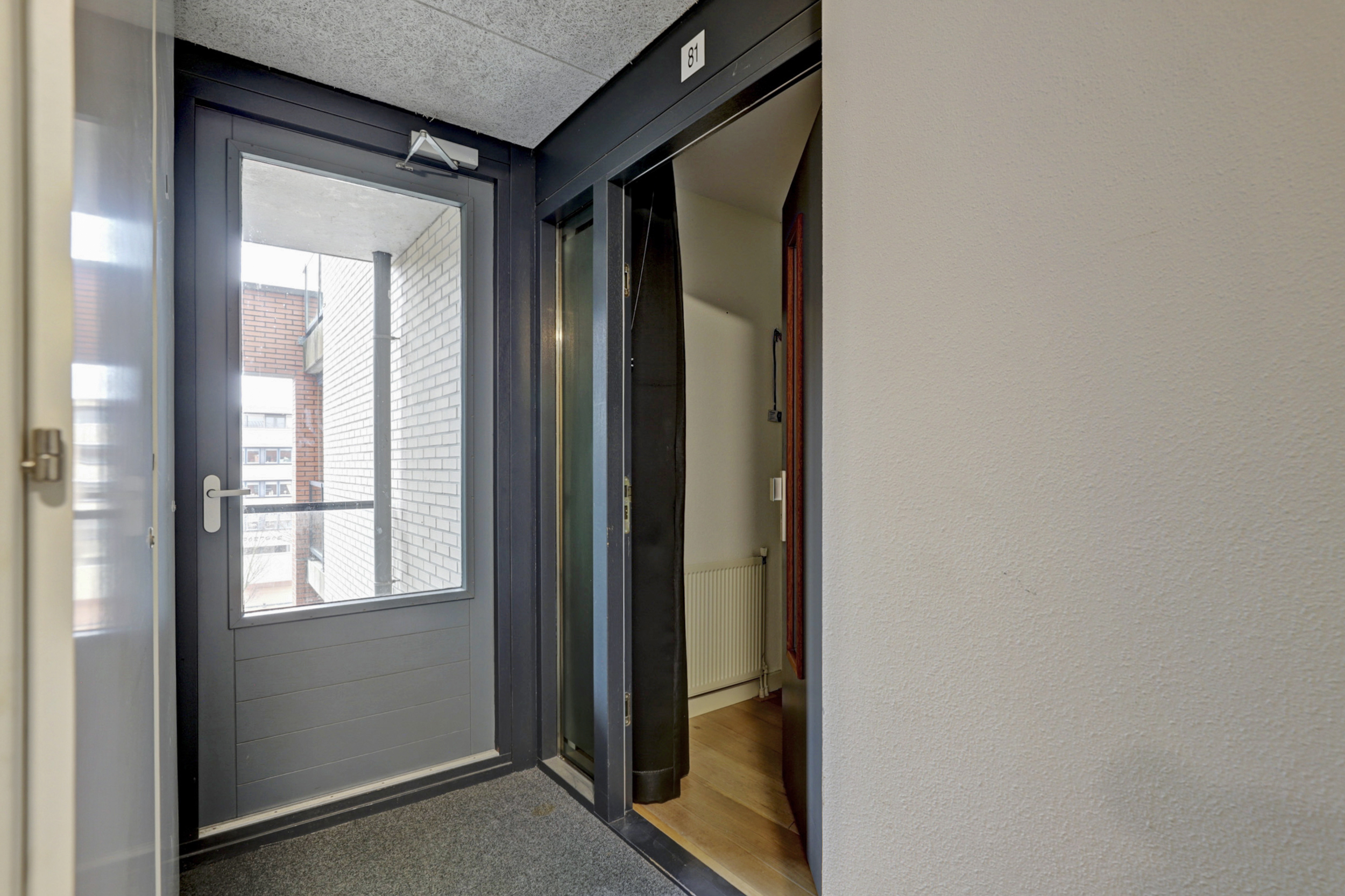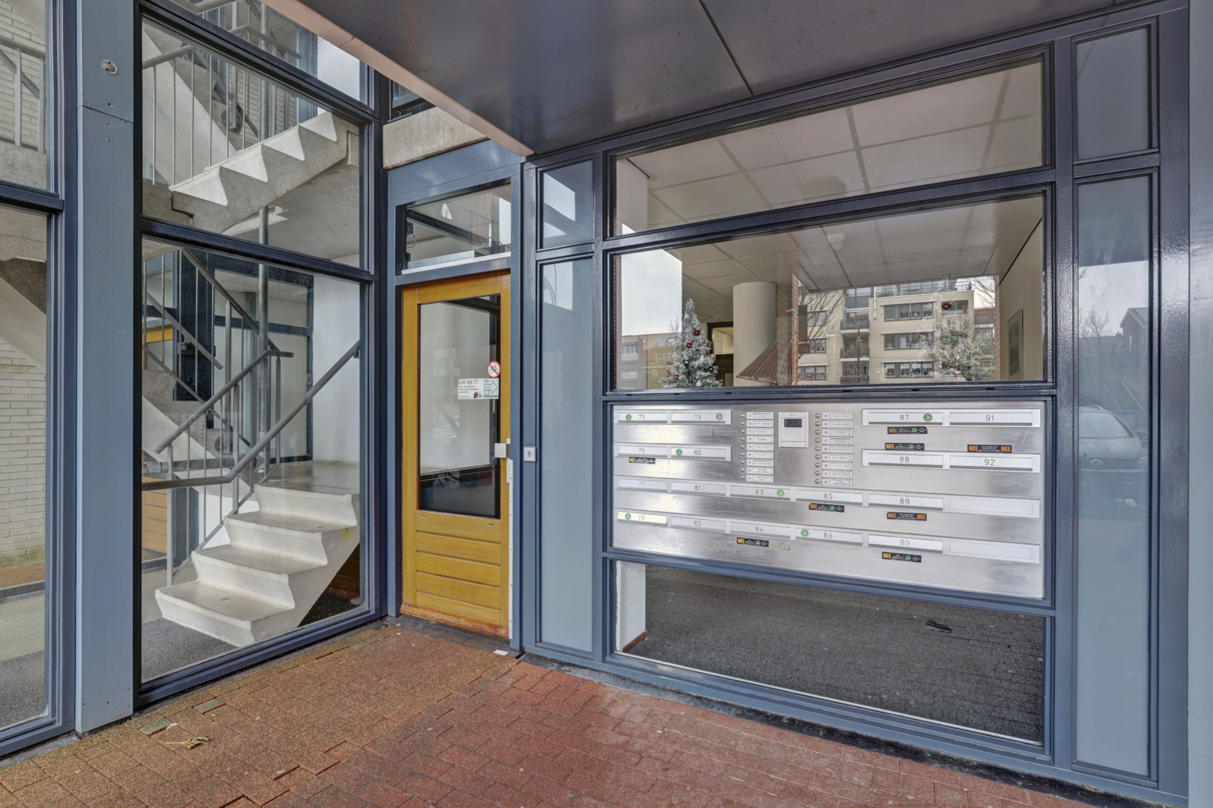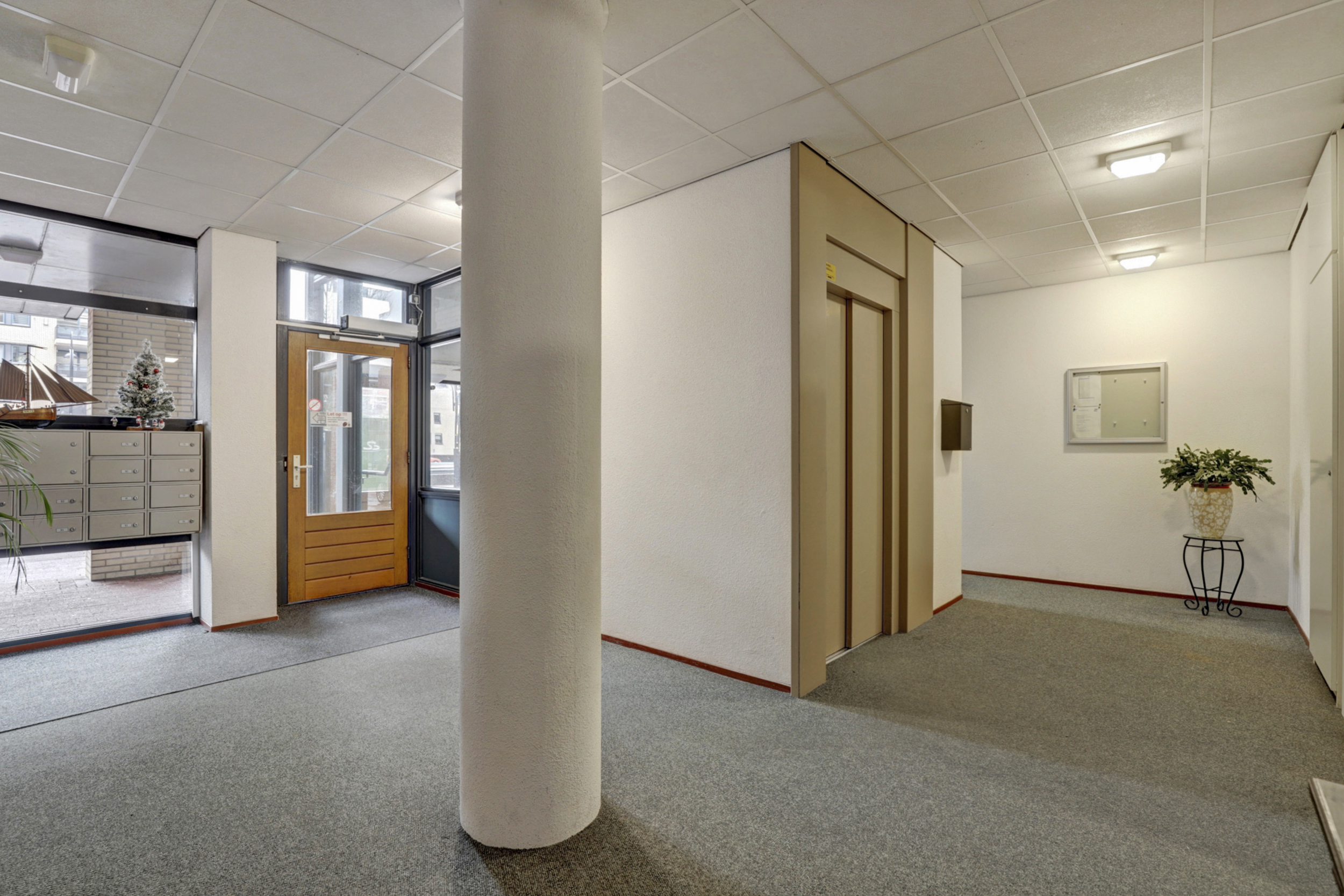 Via de centrale entree van het appartementencomplex bereikt u het appartement. U komt binnen in een ruime hal die toegang geeft tot alle vertrekken en zorgt voor een prettige en overzichtelijke binnenkomst.
